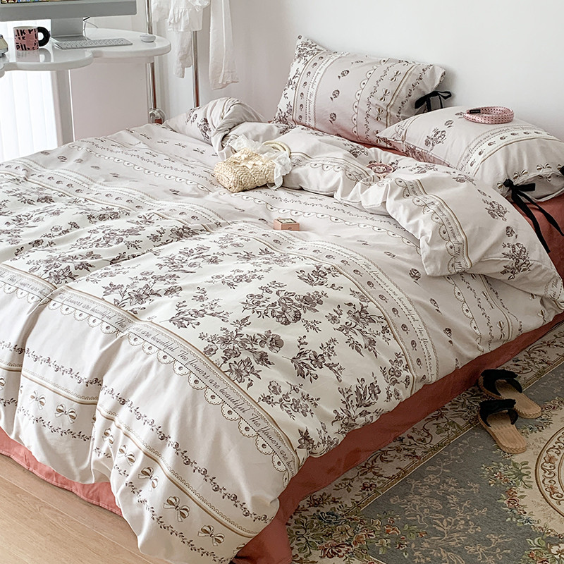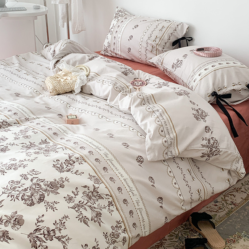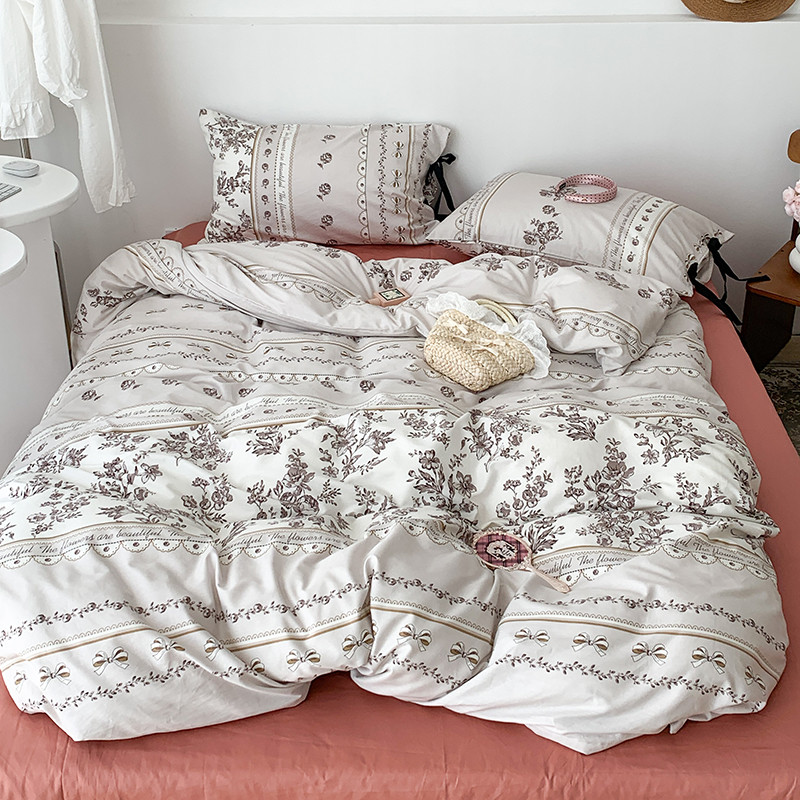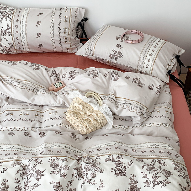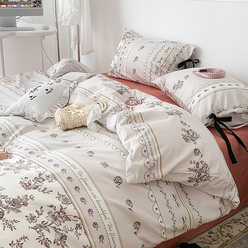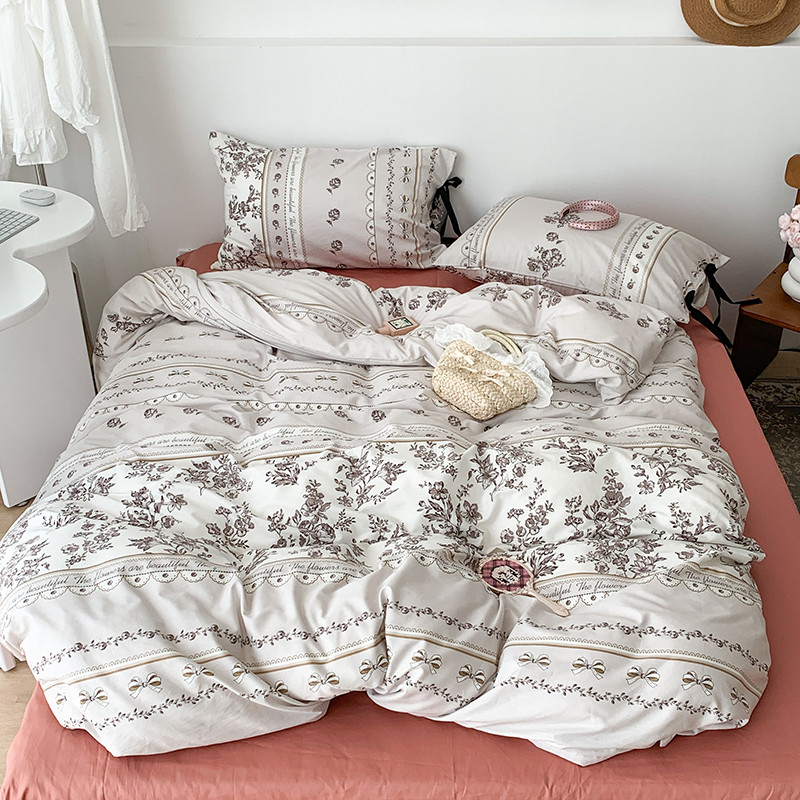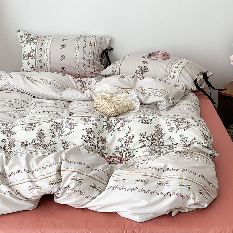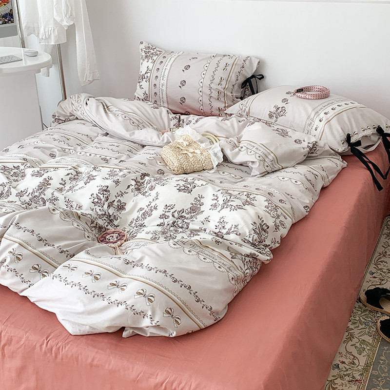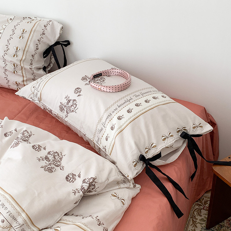 昔可家纺 2023新款全棉蝴蝶结枕套普通款四件套 午后清茶