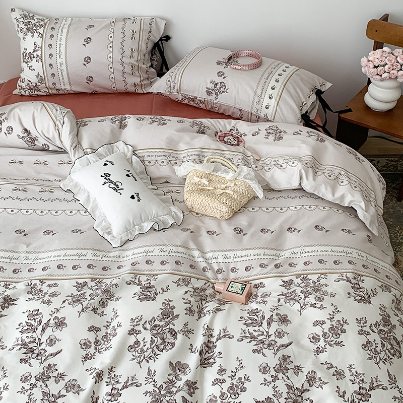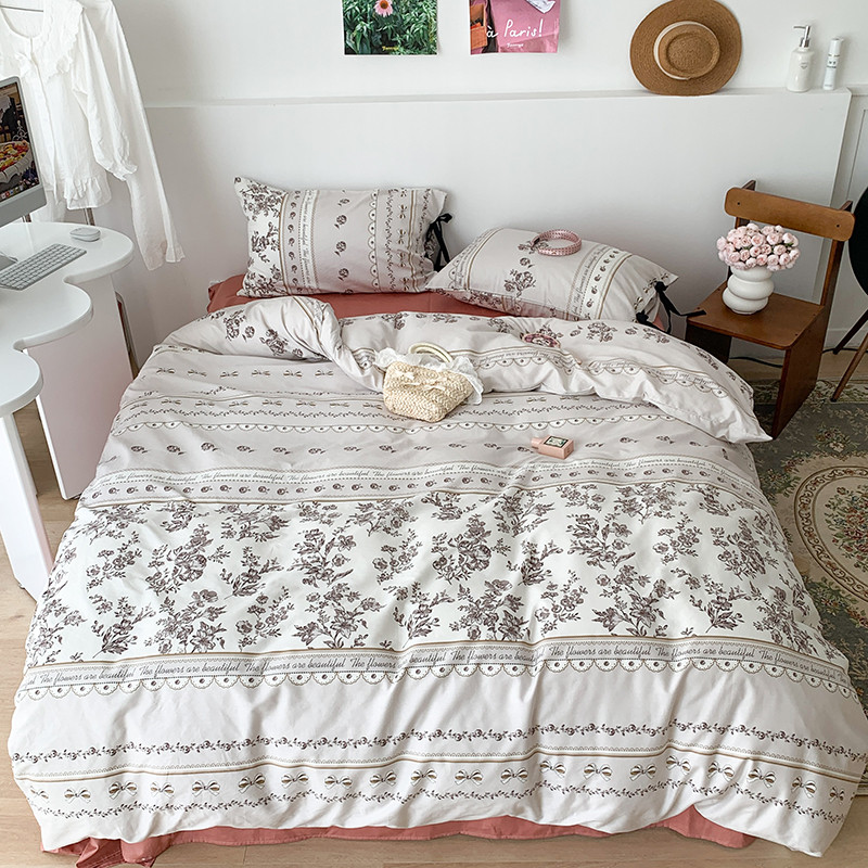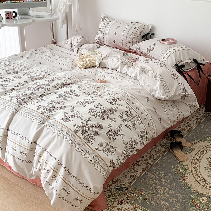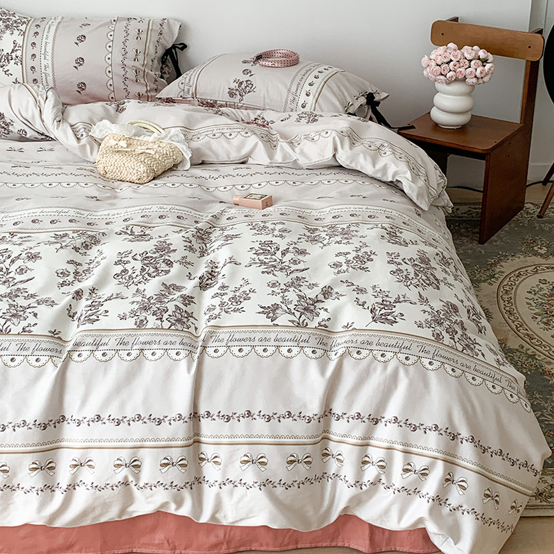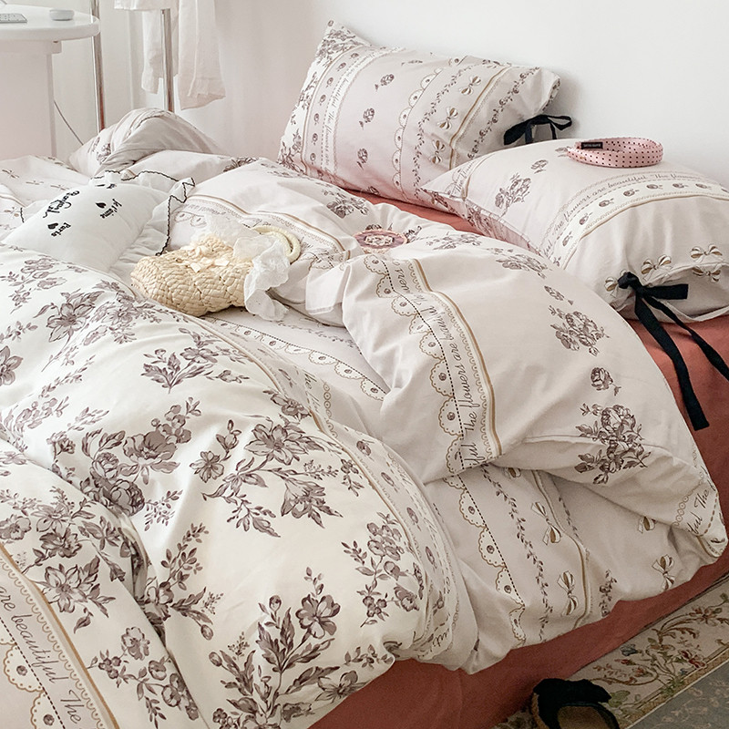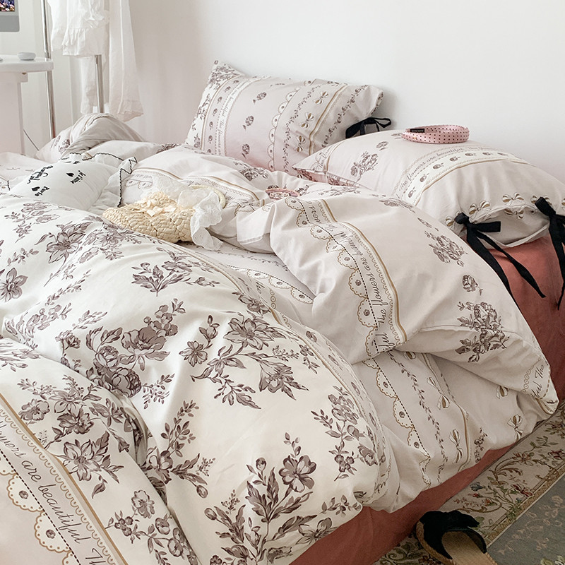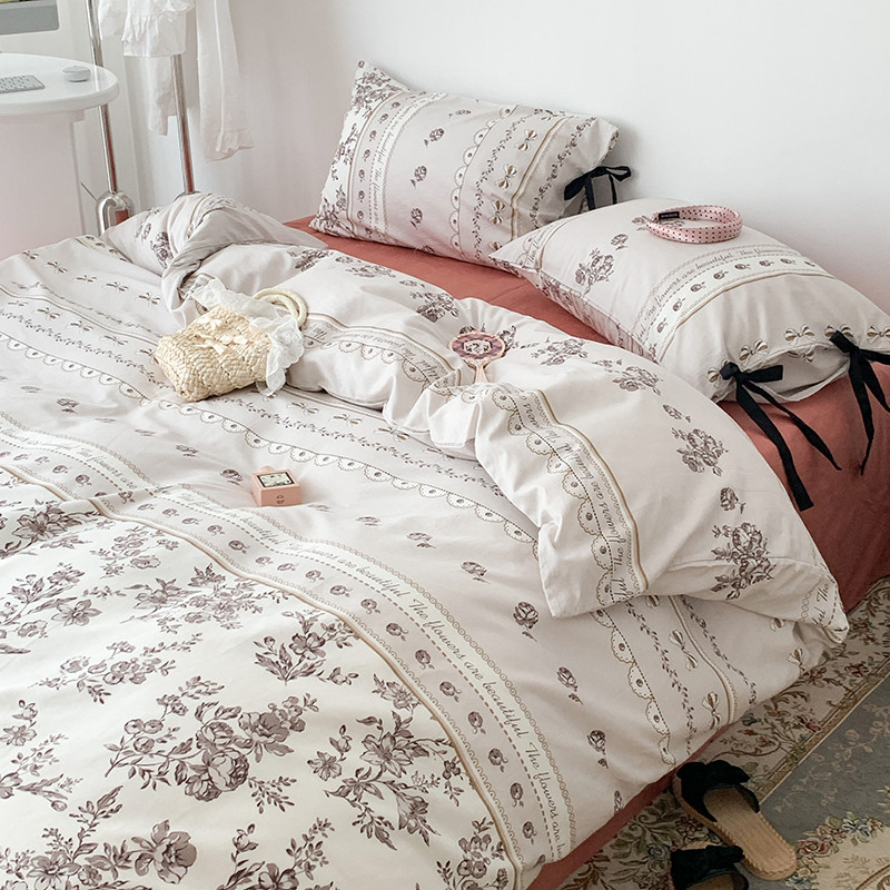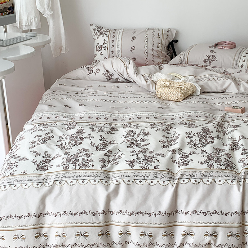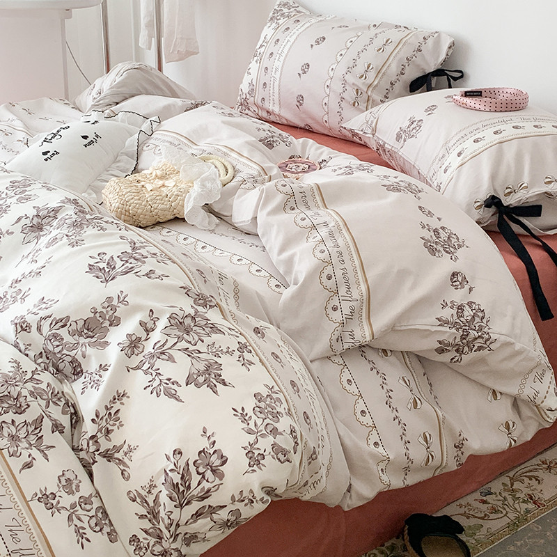 昔可家纺 2023新款全棉蝴蝶结枕套普通款四件套 午后清茶