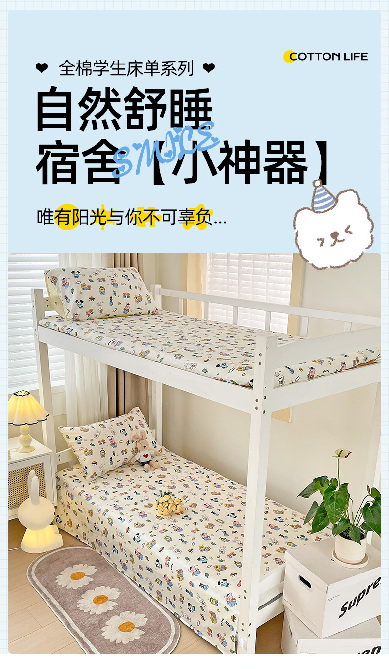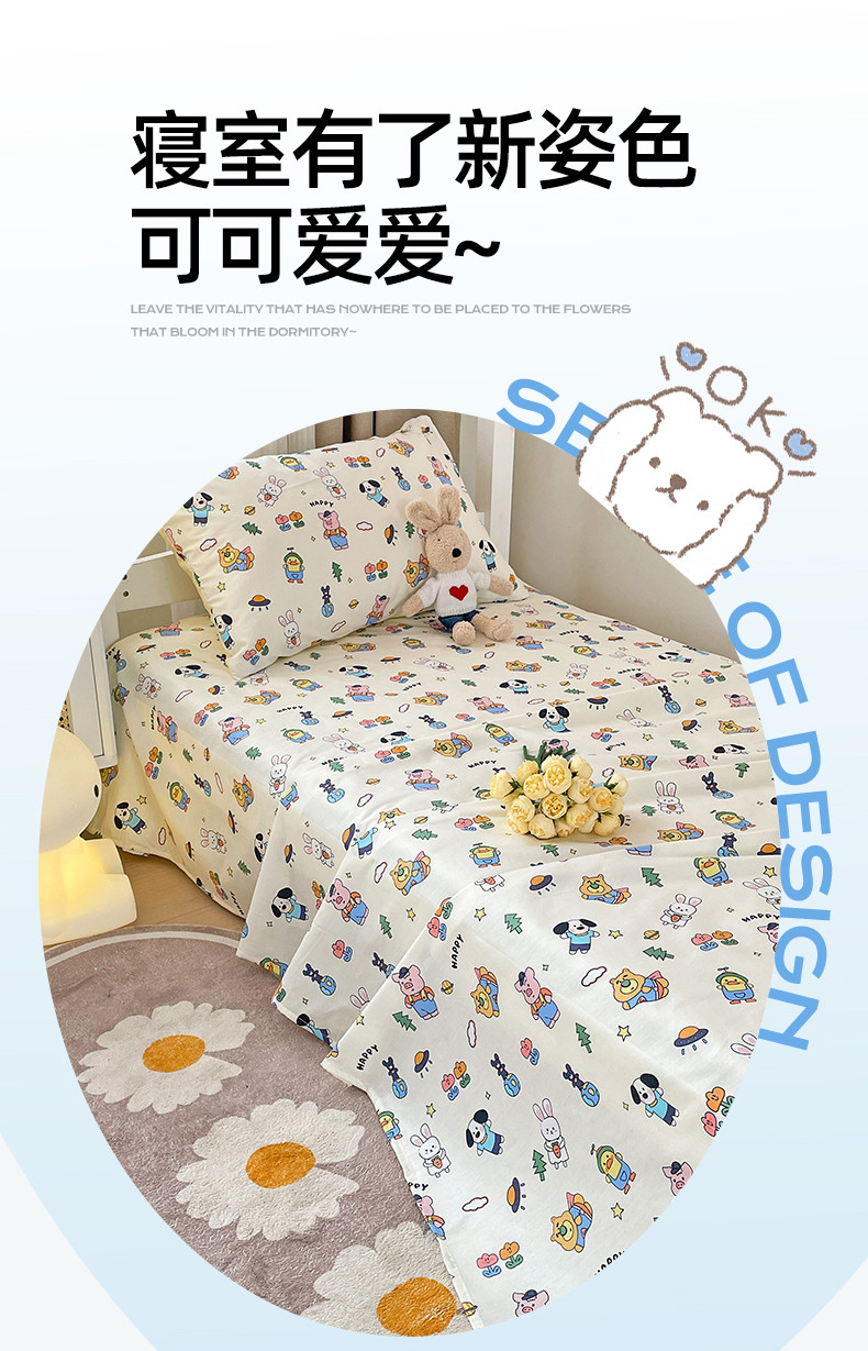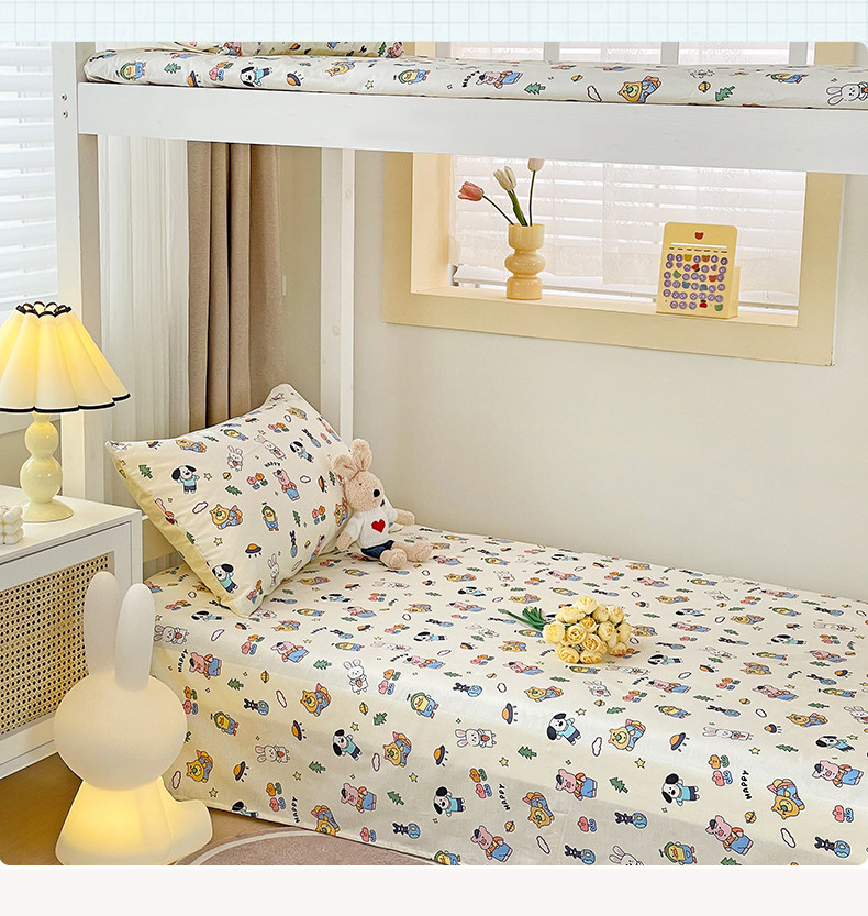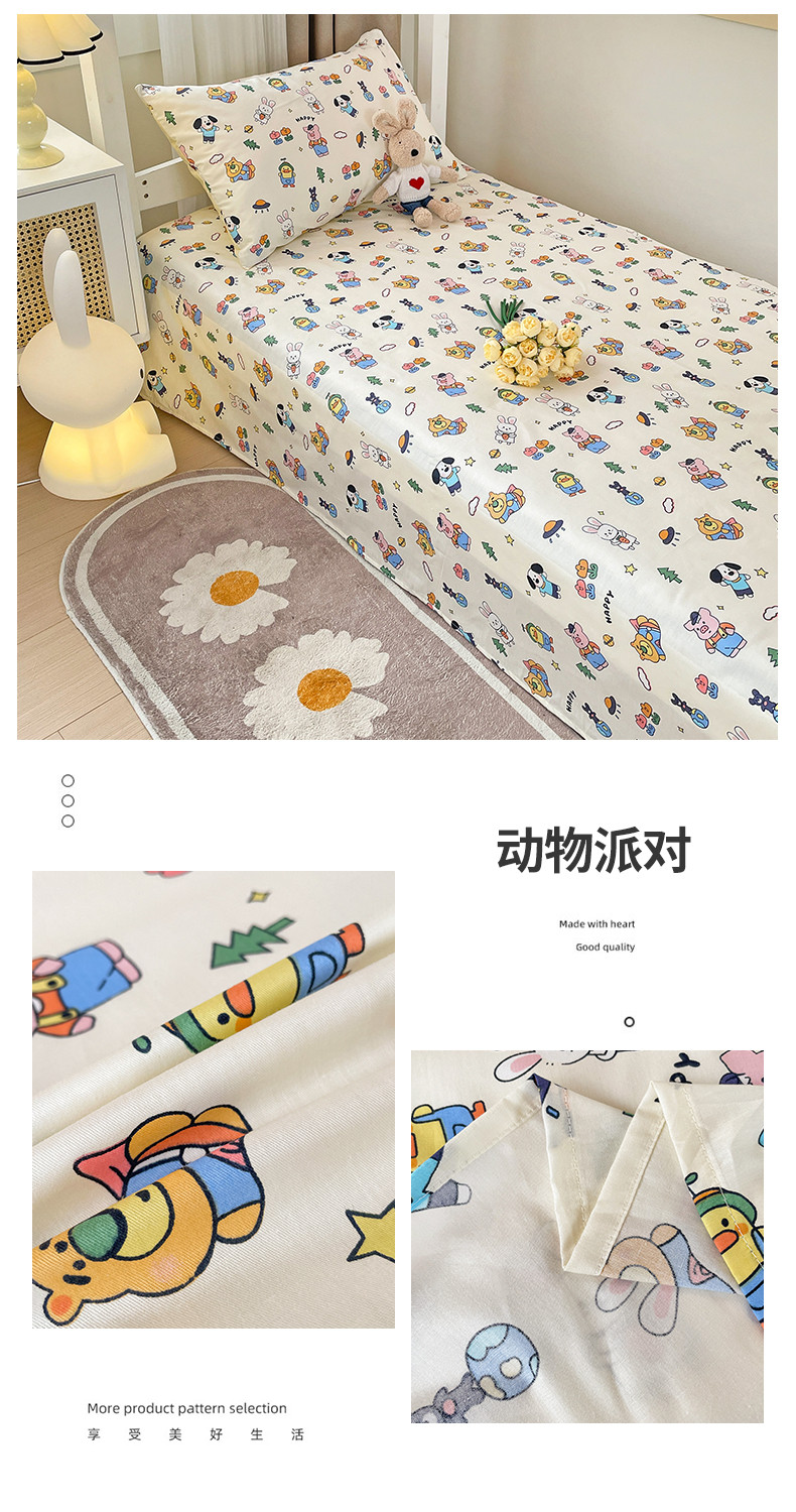 • 91家纺网 家纺一手货源 找家纺 名兮 2023新款全棉学生上下铺床单 动物派对