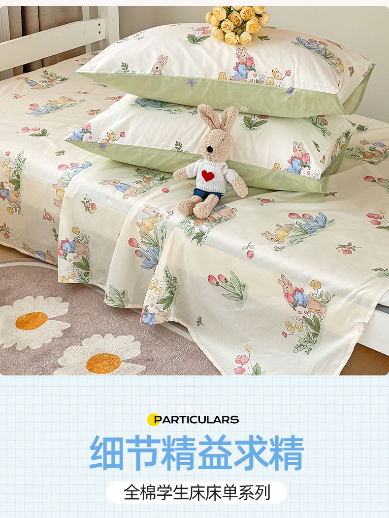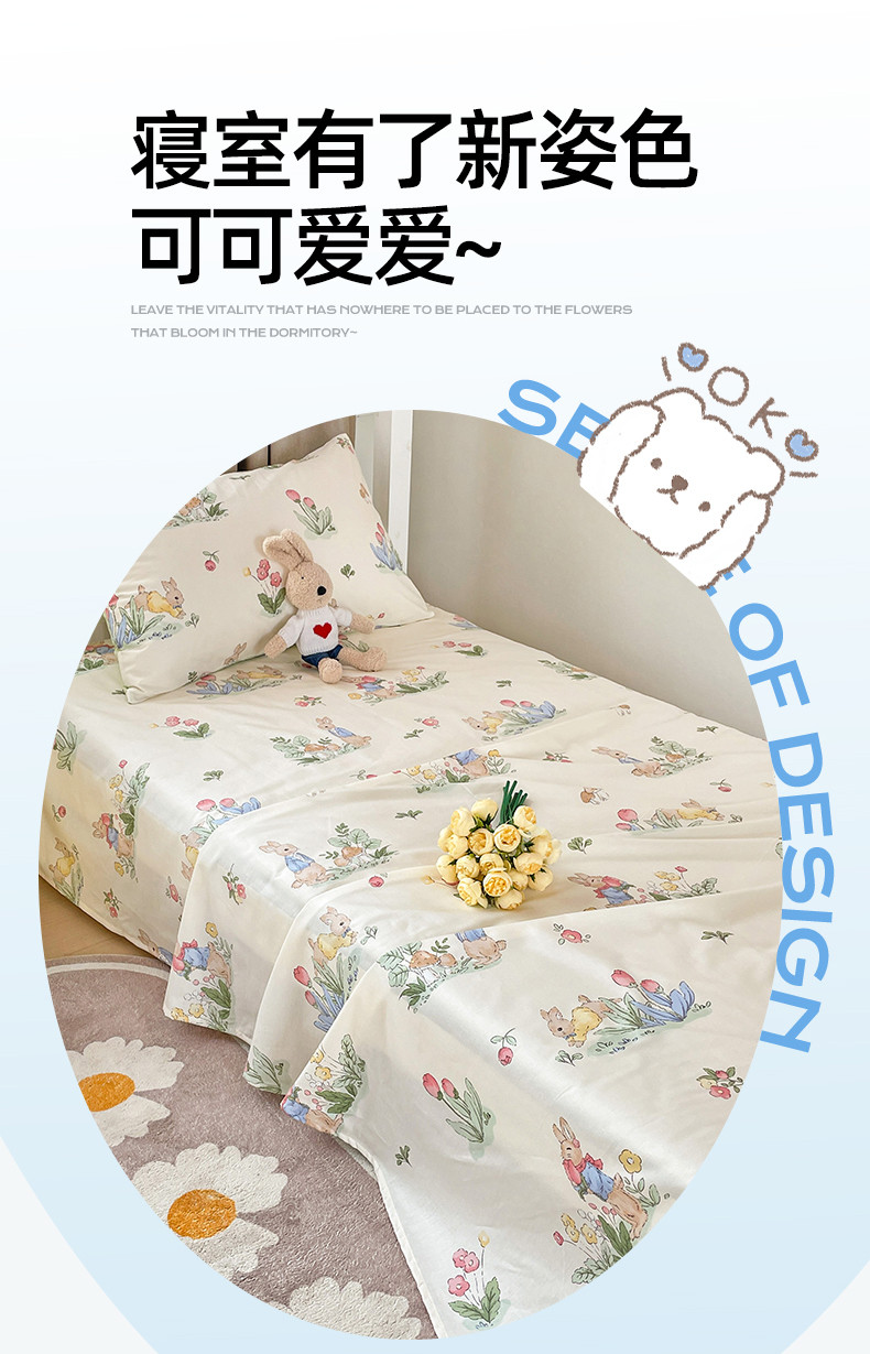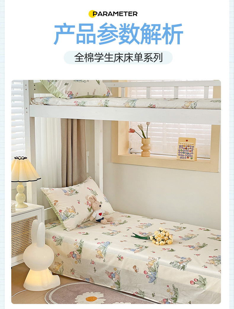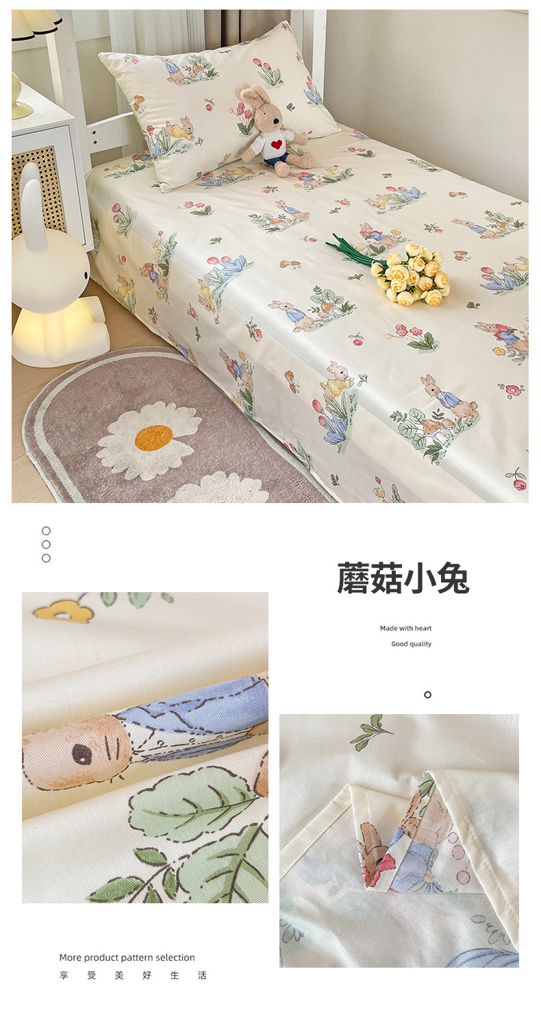 • 91家纺网 家纺一手货源 找家纺 名兮 2023新款全棉学生上下铺床单 蘑菇小兔