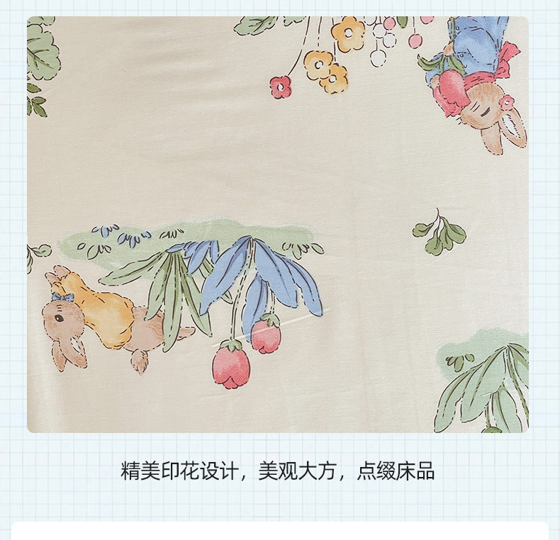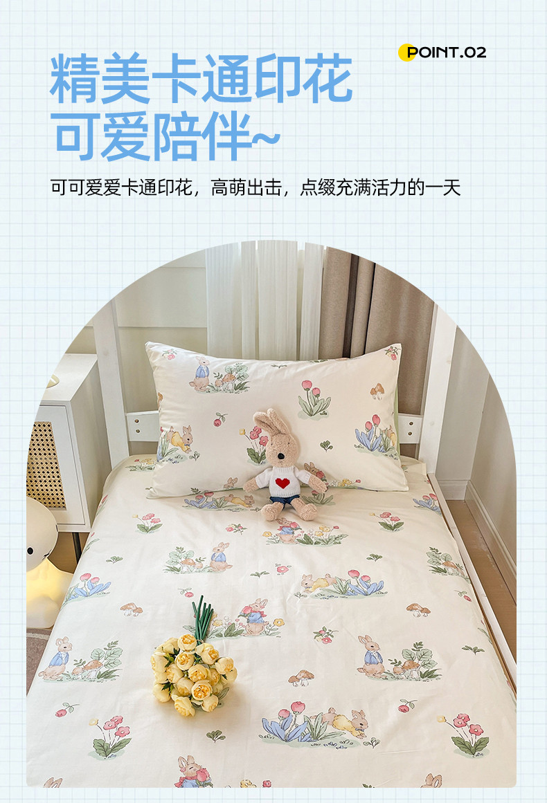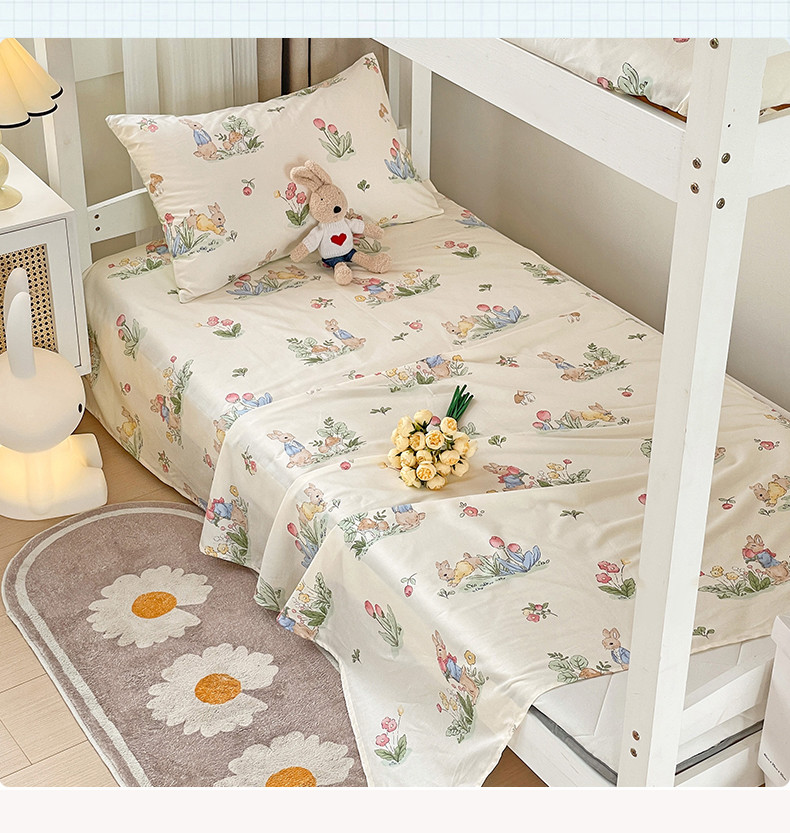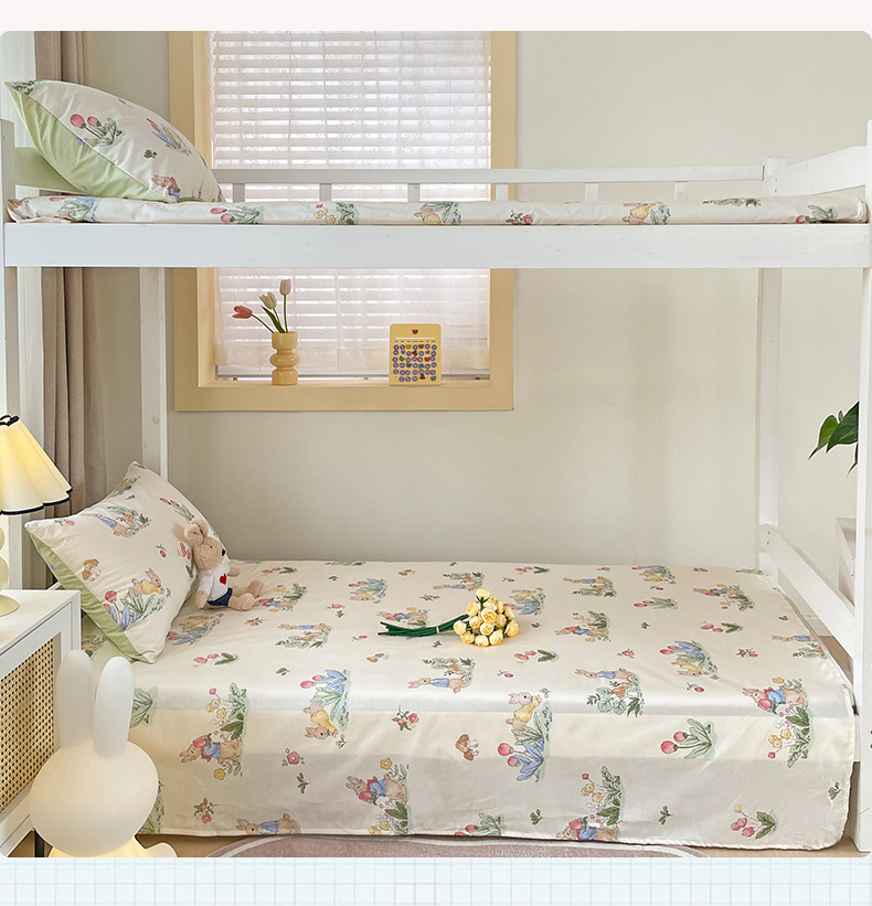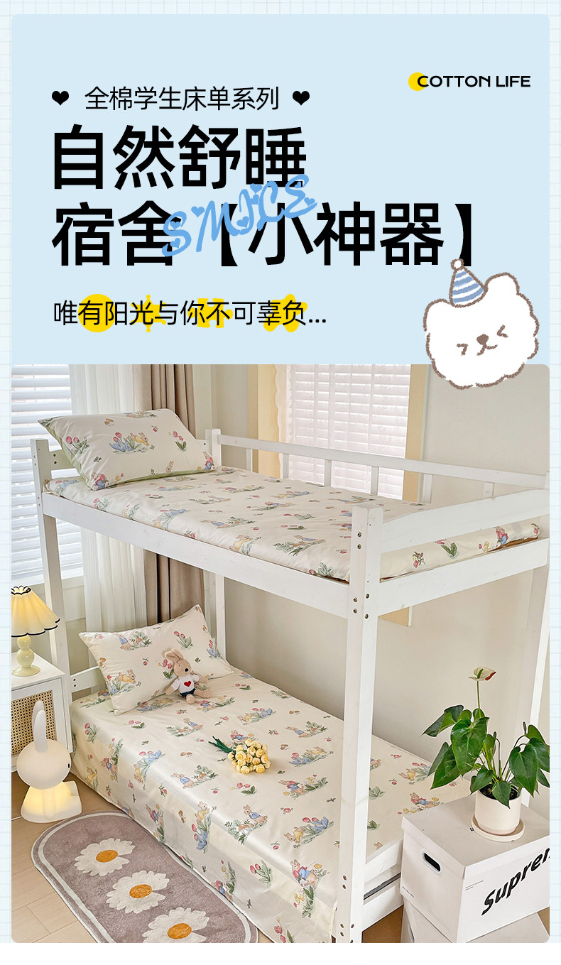 • 91家纺网 家纺一手货源 找家纺 名兮 2023新款全棉学生上下铺床单 蘑菇小兔