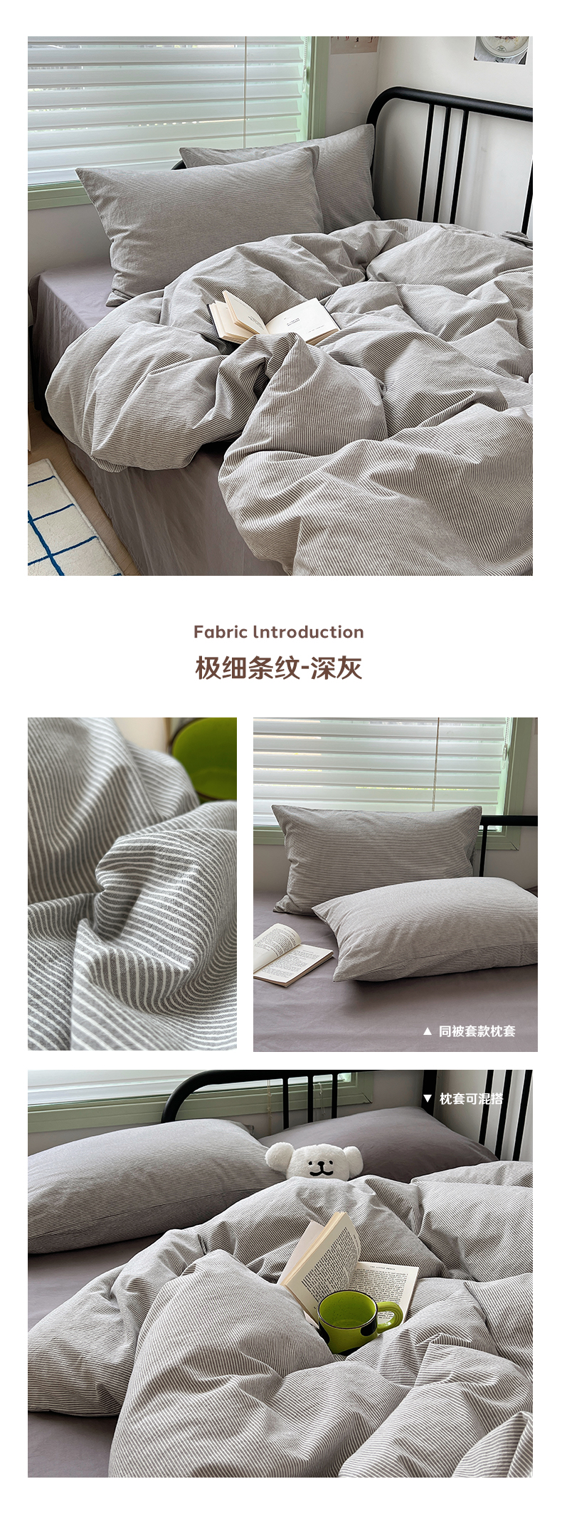 当前位置: 91家纺网 > 商品网购 > 床品套件 > 四件套 > 全棉普通四件套 > 希文2023新款40s全棉色织水洗棉四件套 极细条纹-深灰(枕套条纹)