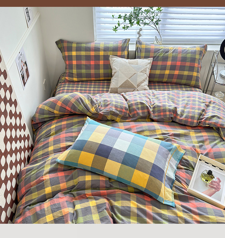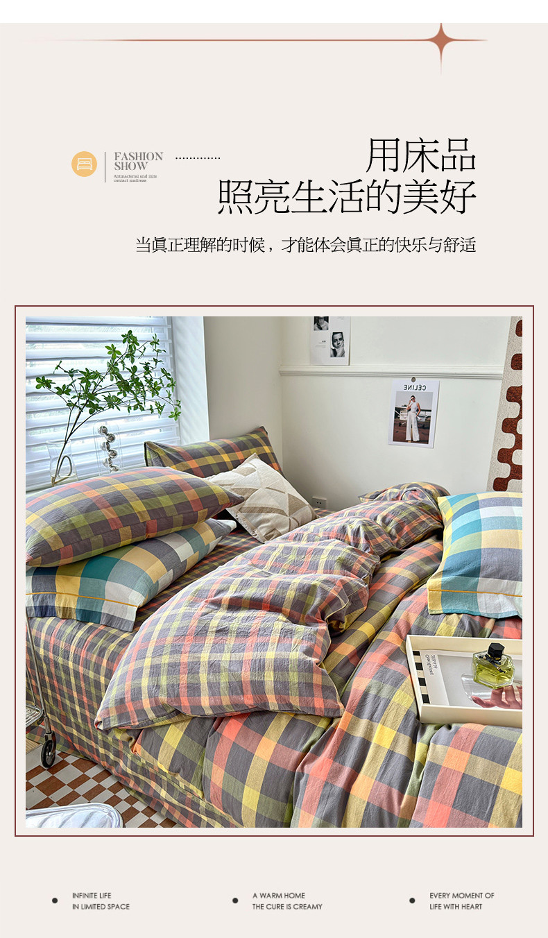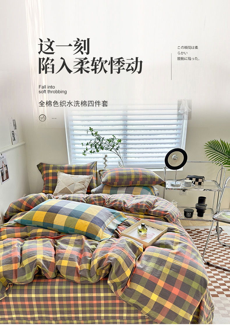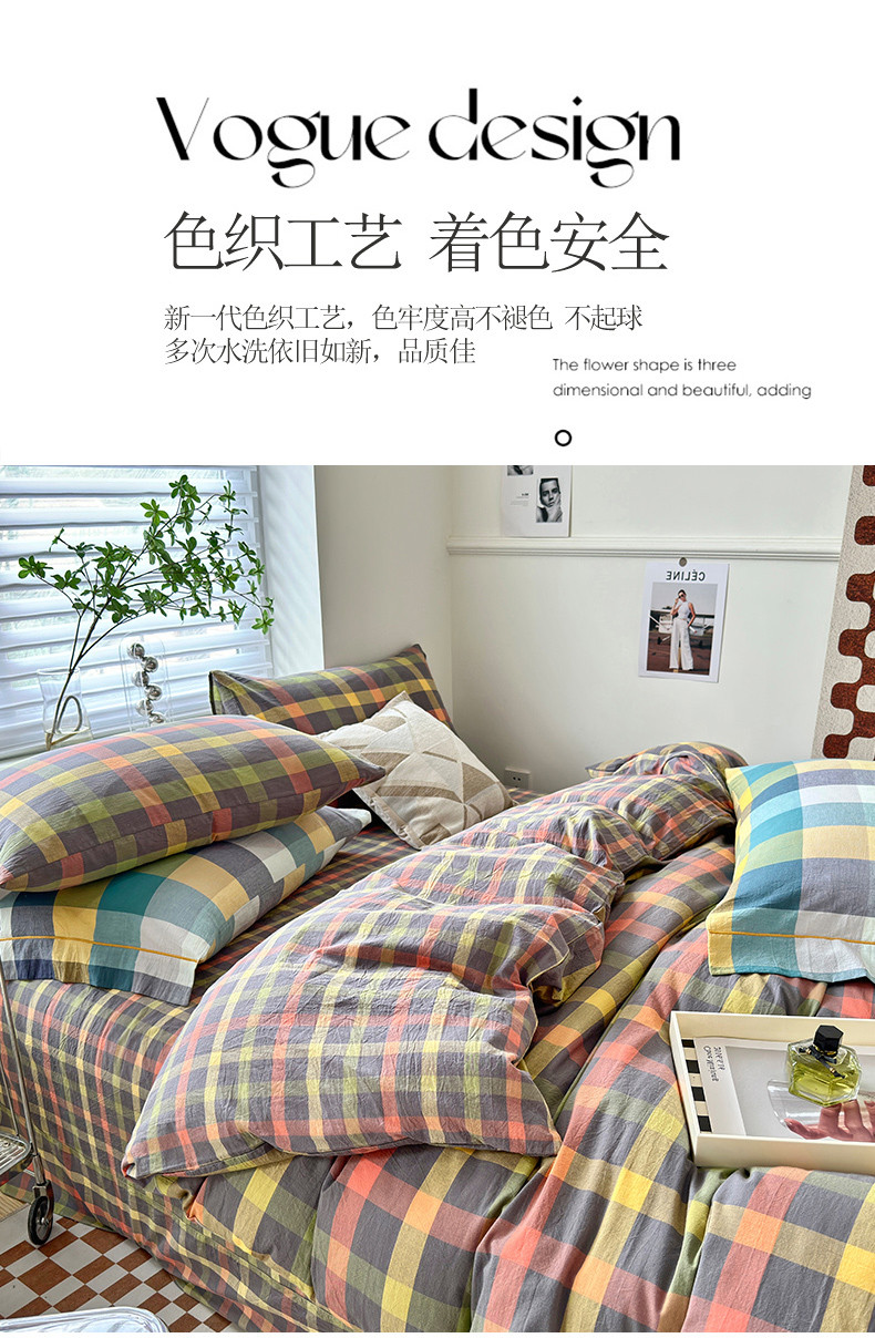当前位置: 91家纺网 > 商品网购 > 床品套件 > 四件套 > 全棉普通四件套 > 三沁 2023新款直播纯棉被套四件套全棉色织水洗棉床单式格子简约彩格灰
