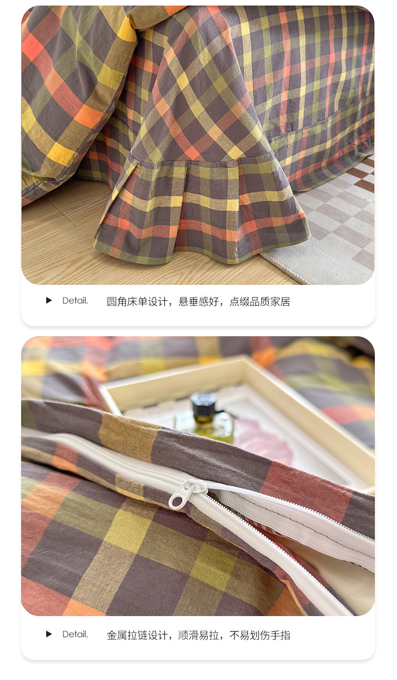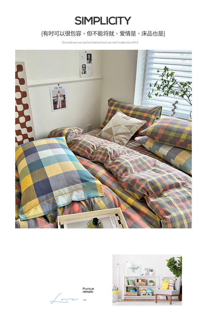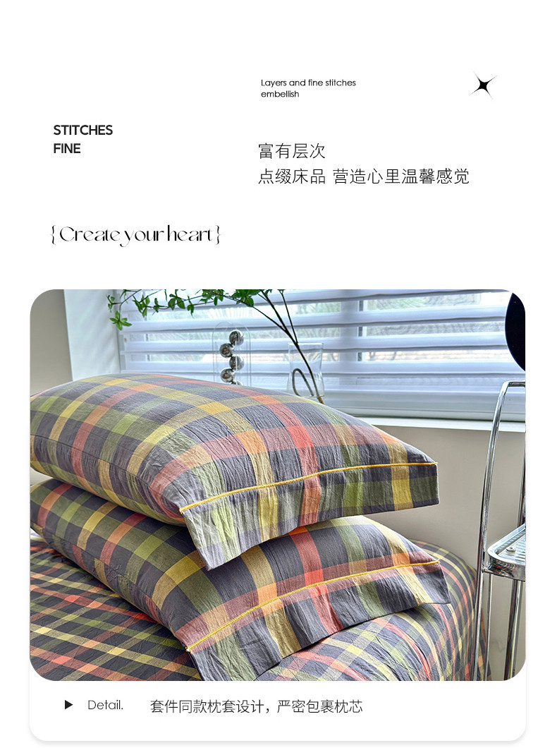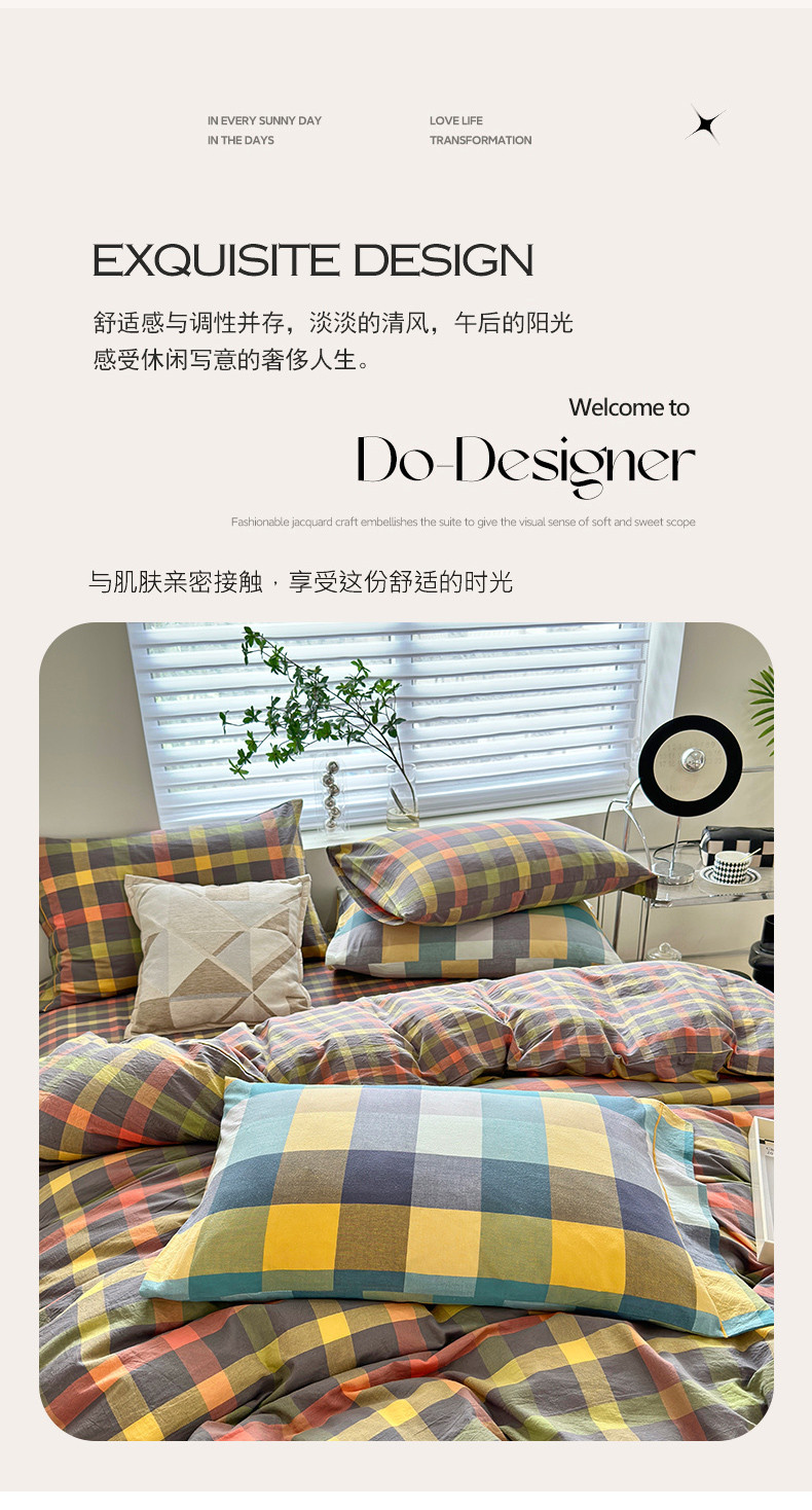 当前位置: 91家纺网 > 商品网购 > 床品套件 > 四件套 > 全棉普通四件套 > 三沁 2023新款直播纯棉被套四件套全棉色织水洗棉床单式格子简约彩格灰