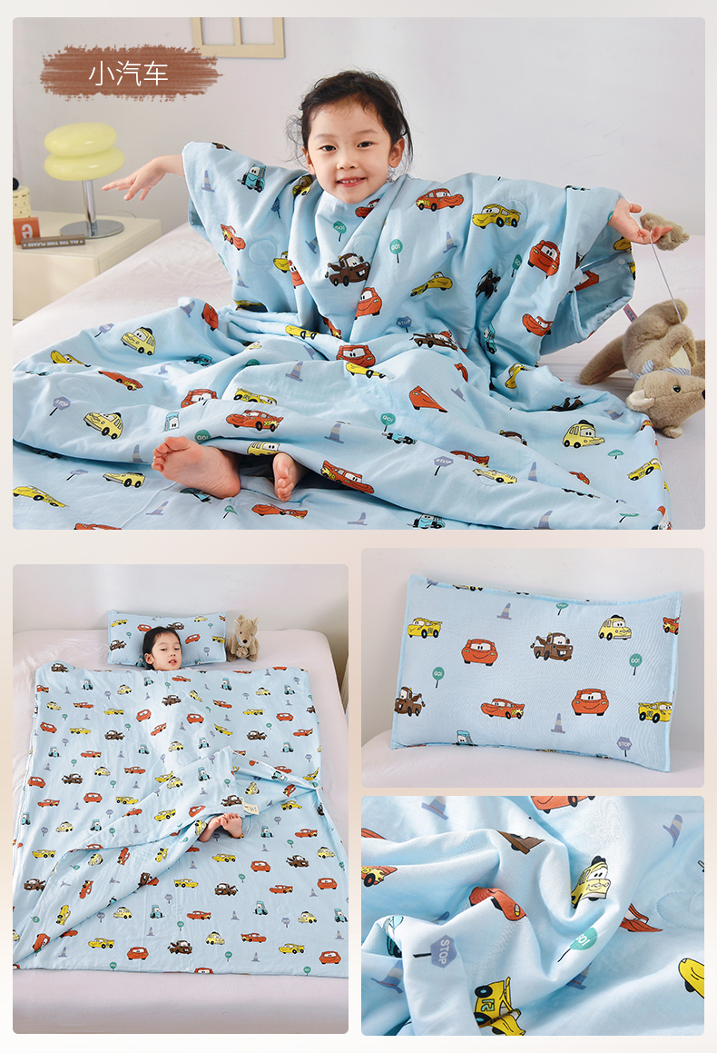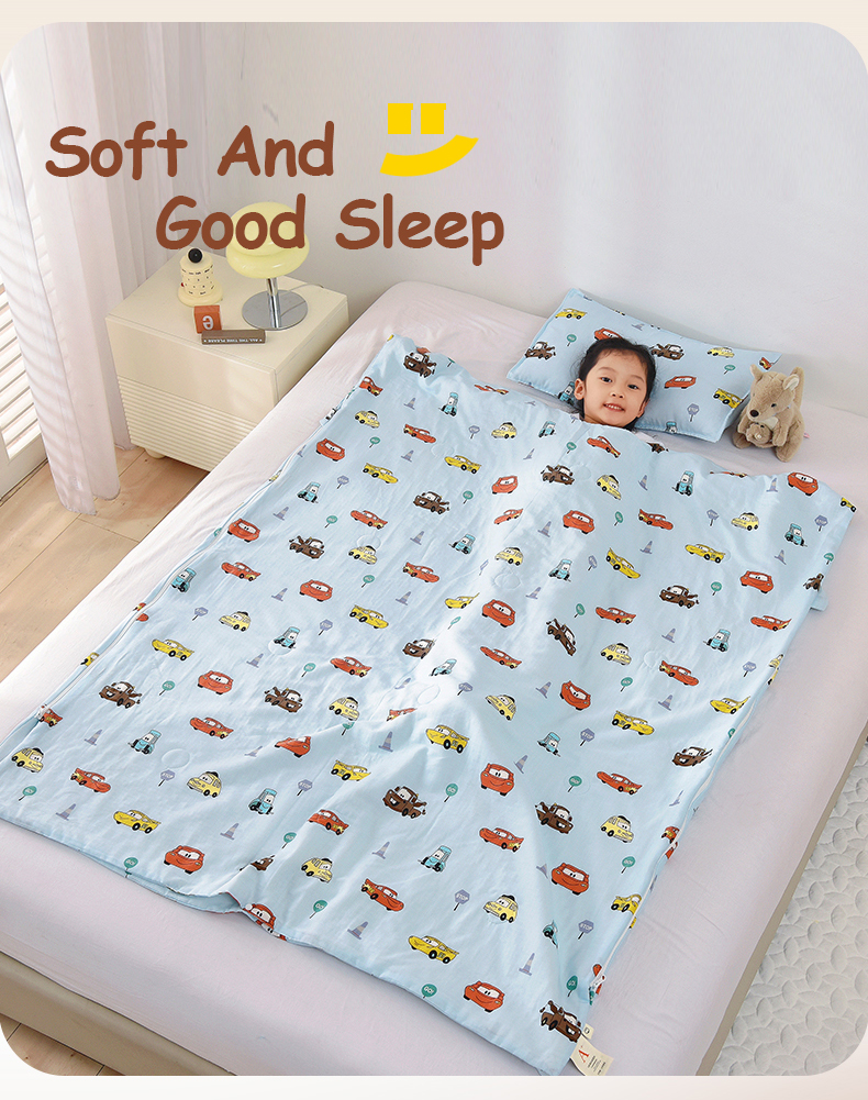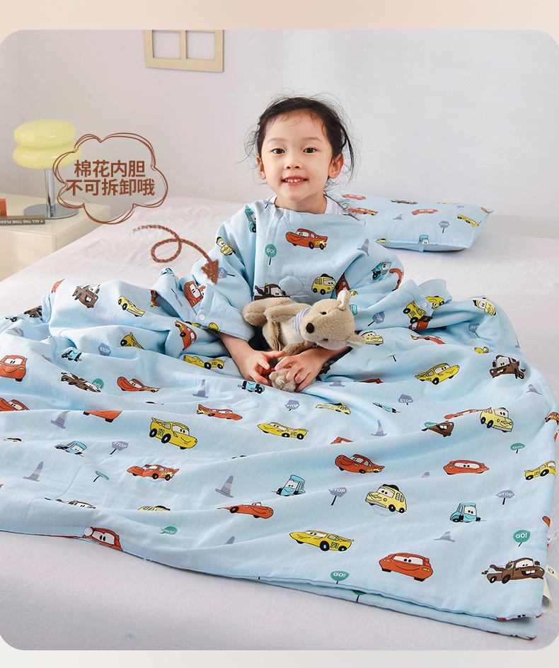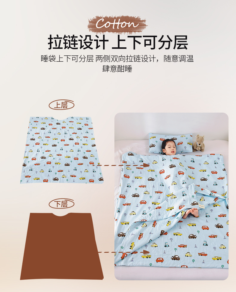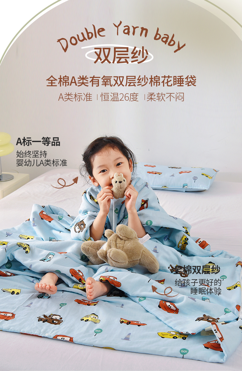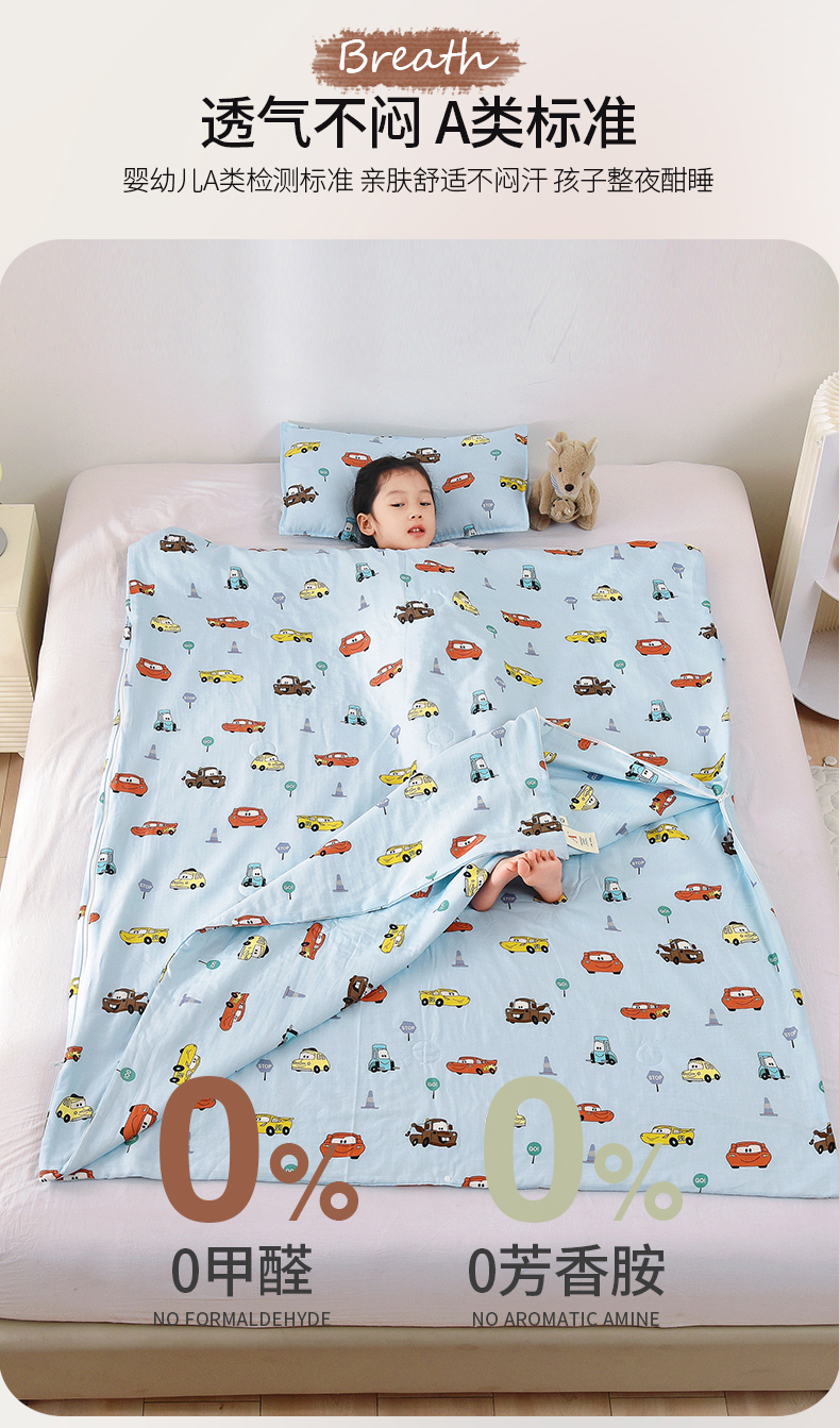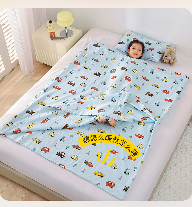 A类夏季纯棉睡袋双层纱棉花薄款春秋宝宝中大童儿童防踢被神器 小汽车