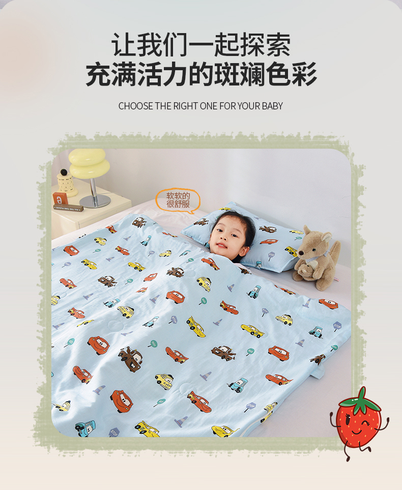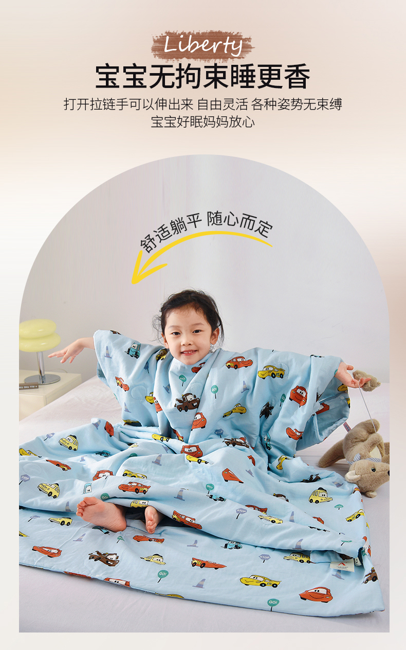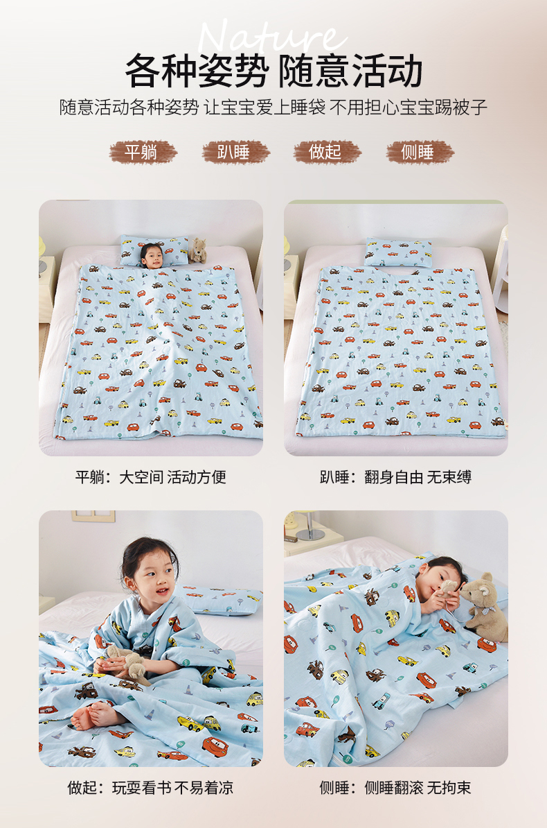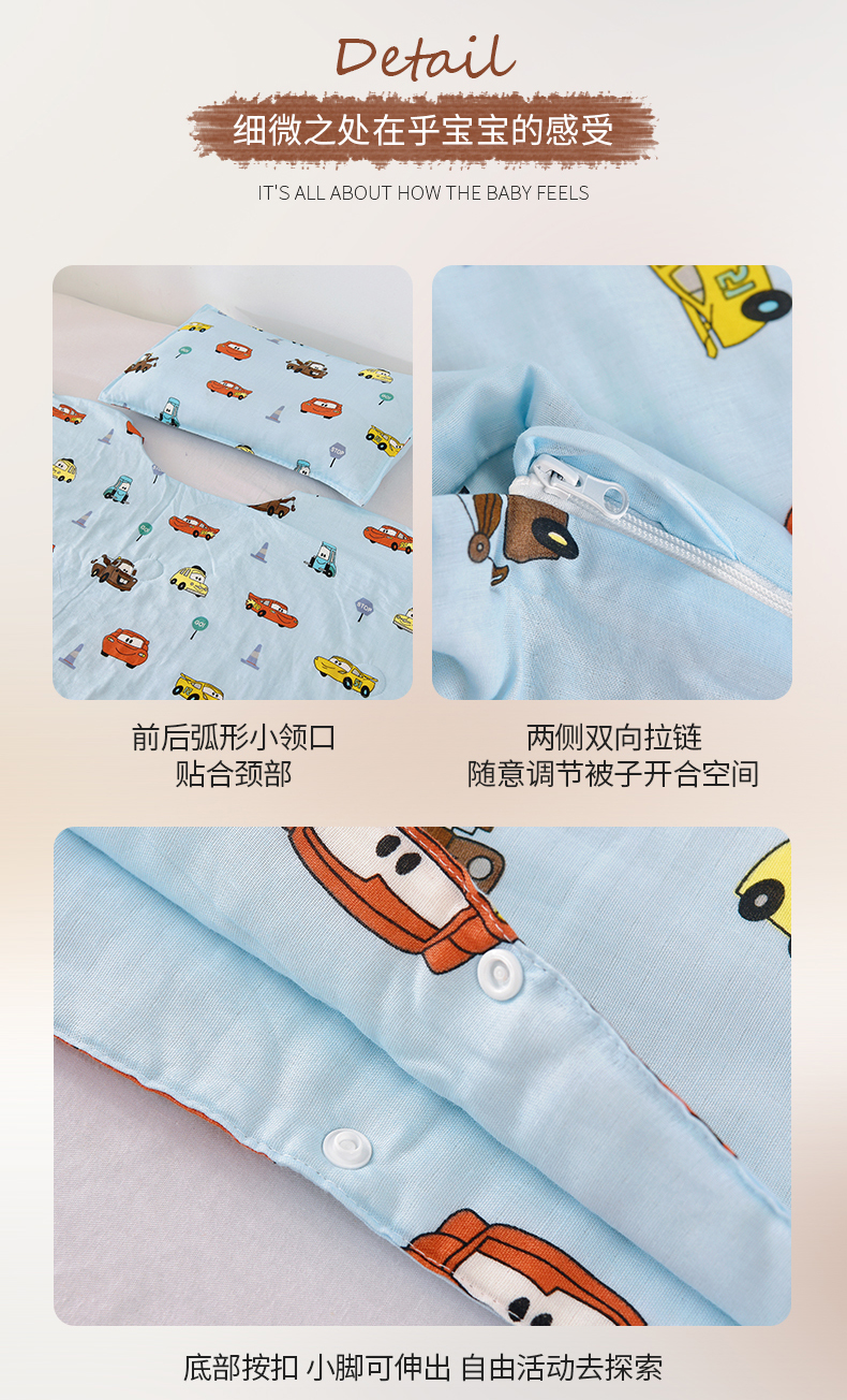 商品名称:A类夏季纯棉睡袋双层纱棉花薄款春秋宝宝中大童儿童防踢被神器 小汽车