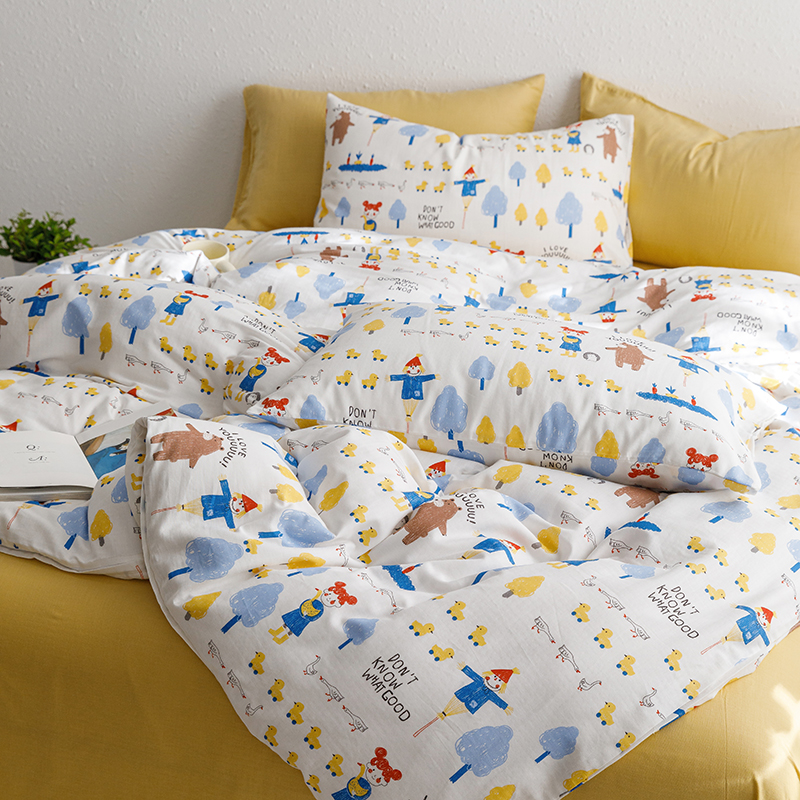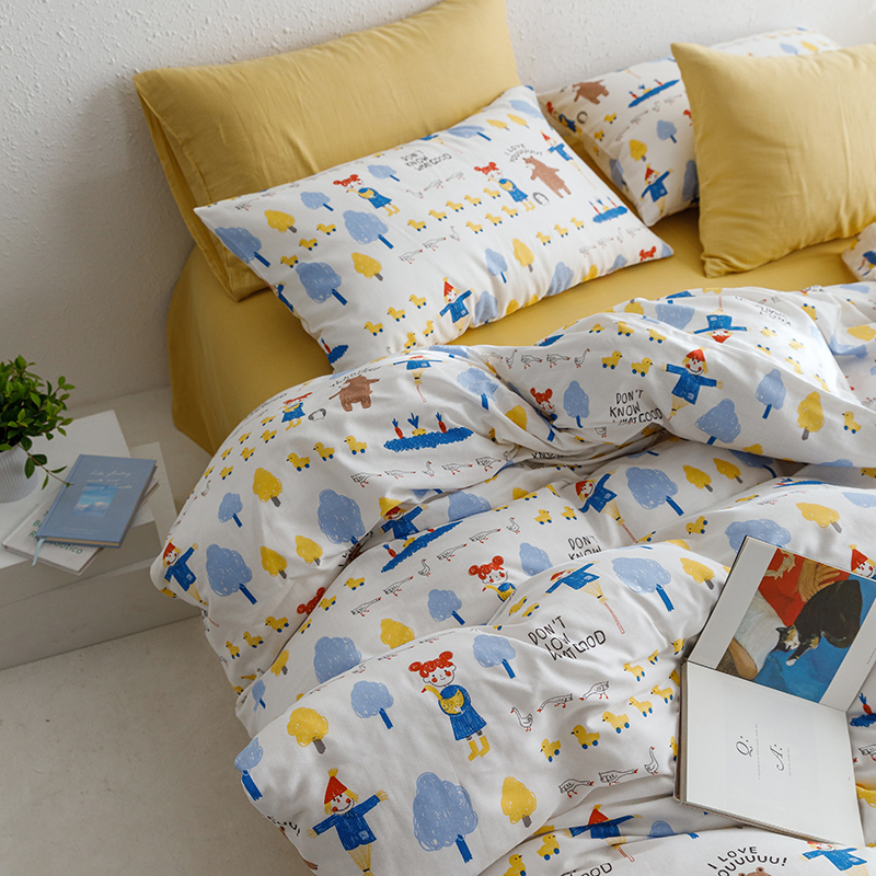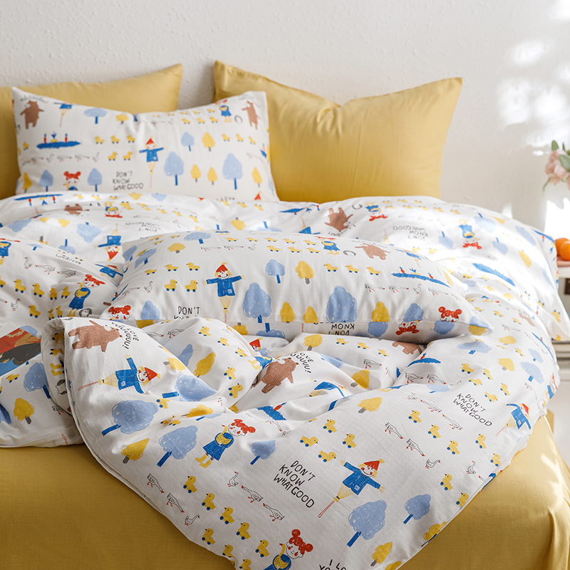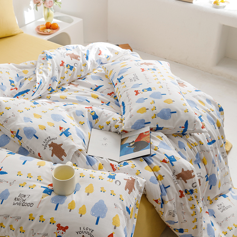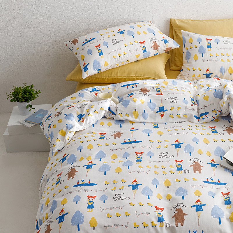 当前位置: 91家纺网 > 商品网购 > 床品套件 > 四件套 > 全棉普通四件套 > 8小时家纺 2023新款40s全棉双层纱单品四件套系列-四件套 鸭鸭稻草人