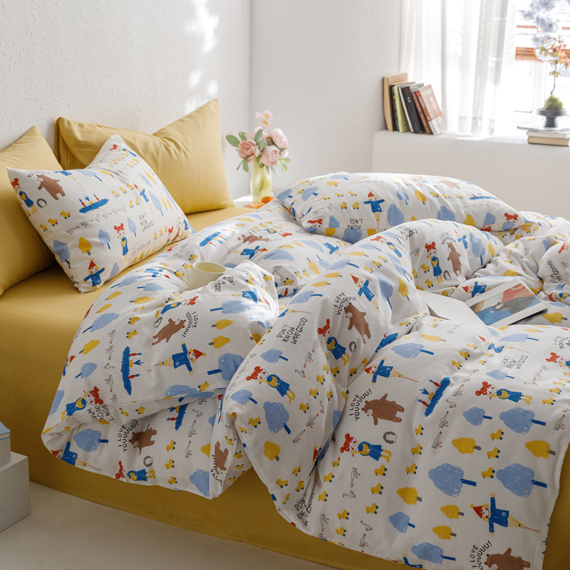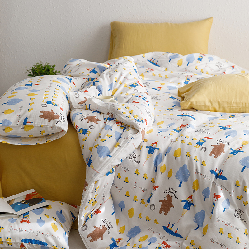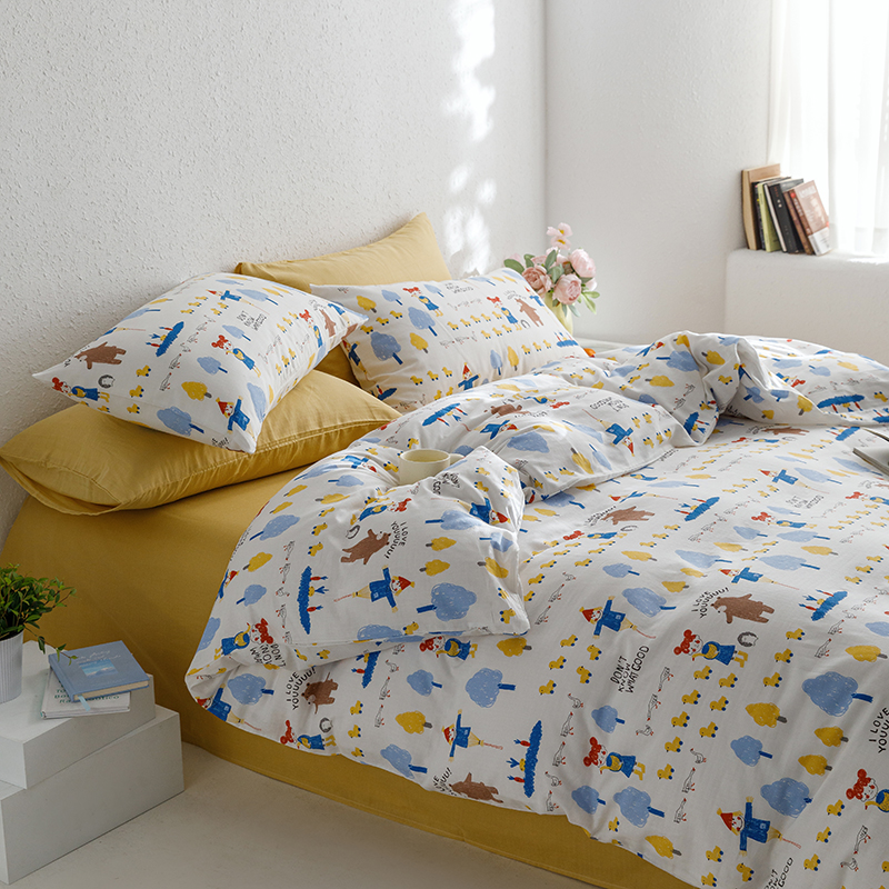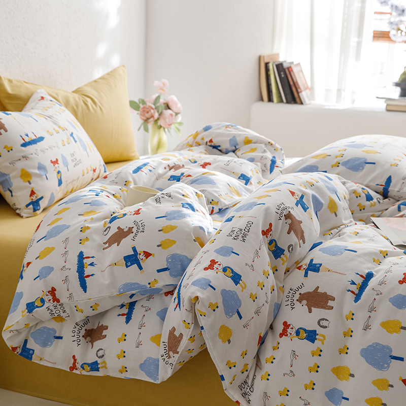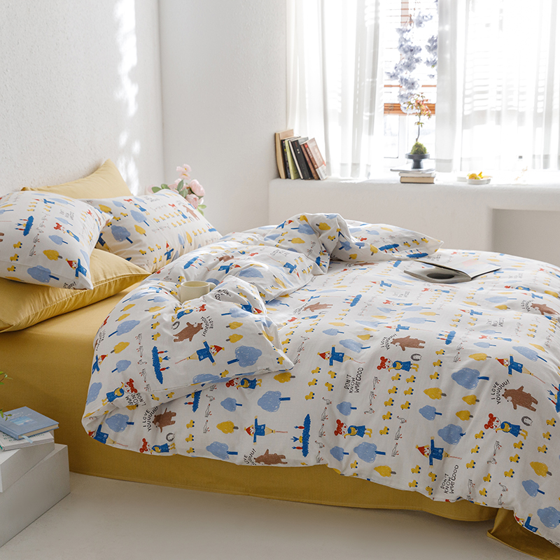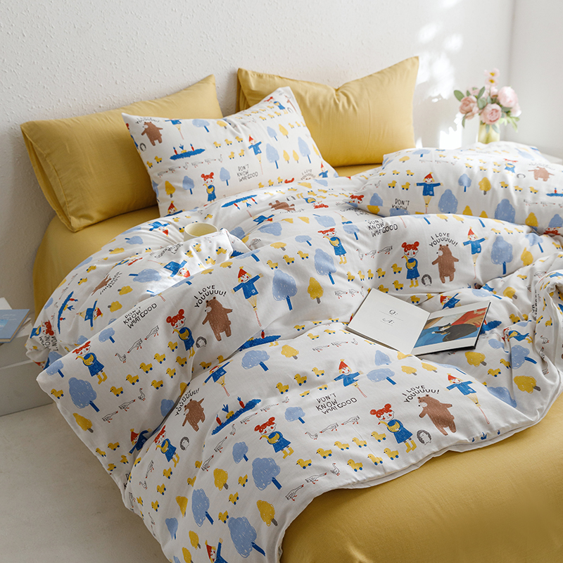 当前位置: 91家纺网 > 商品网购 > 床品套件 > 四件套 > 全棉普通四件套 > 8小时家纺 2023新款40s全棉双层纱单品四件套系列-四件套 鸭鸭稻草人