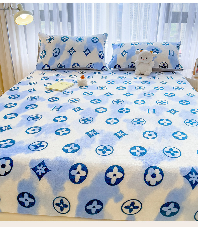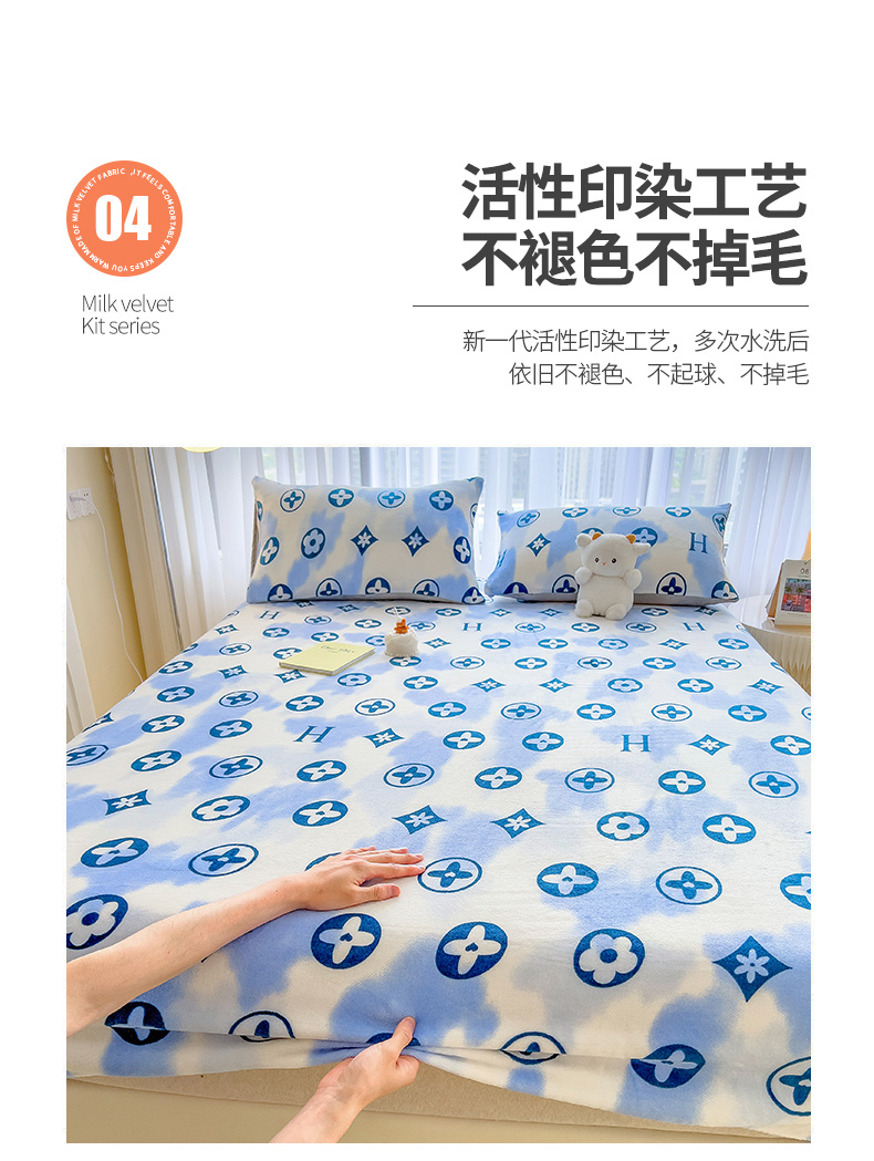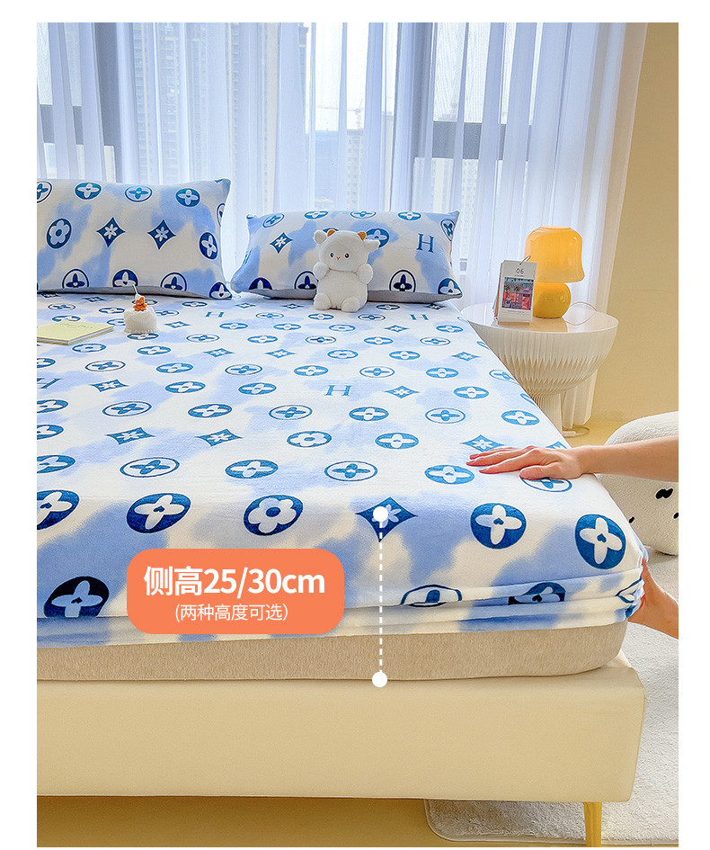 芃成家纺 2023新款牛奶绒印花床笠 心动
