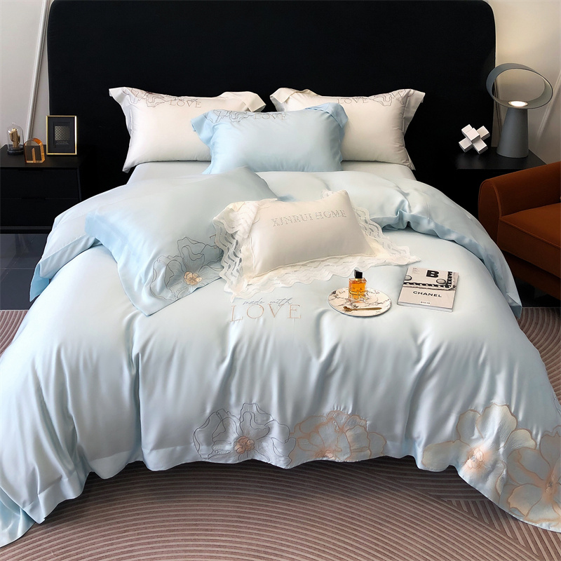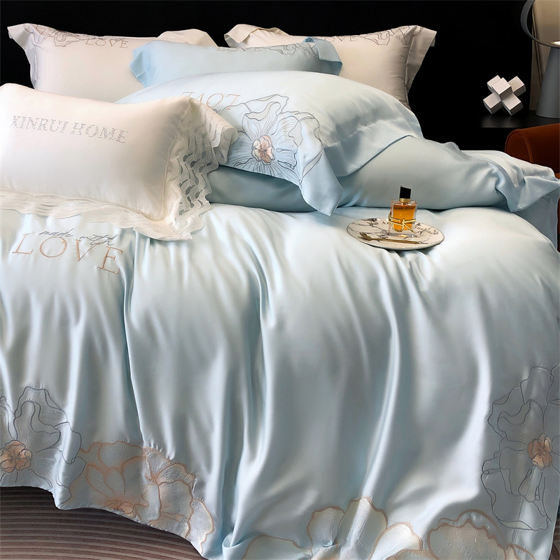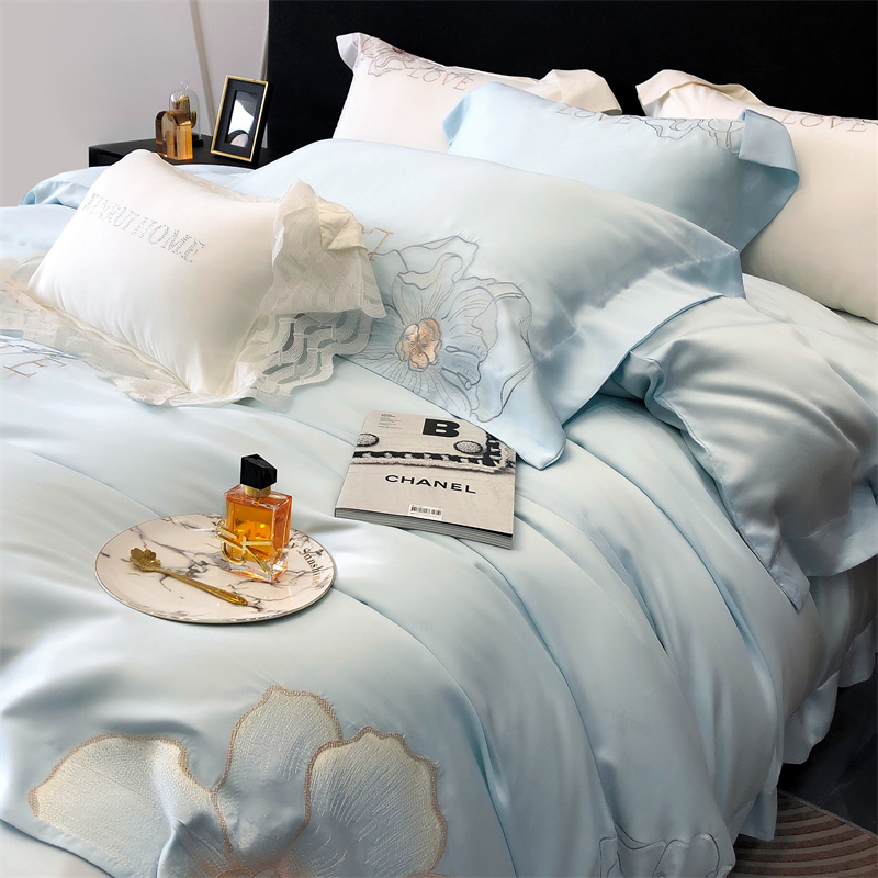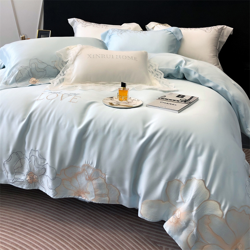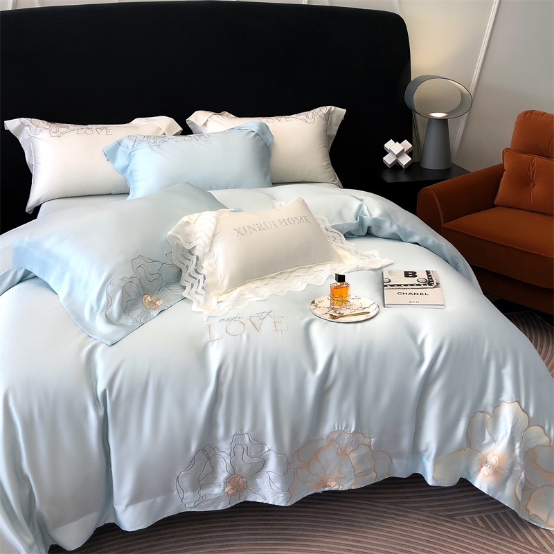 馨蕊 2023秋冬新品LF奥地利兰精天丝花恋系列四件套 天丝花恋-北卡蓝