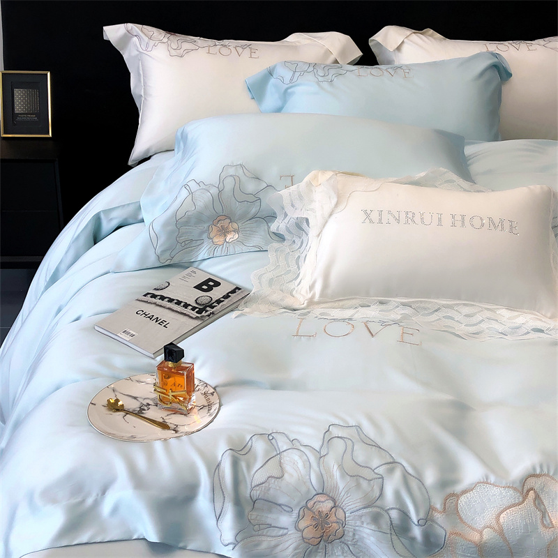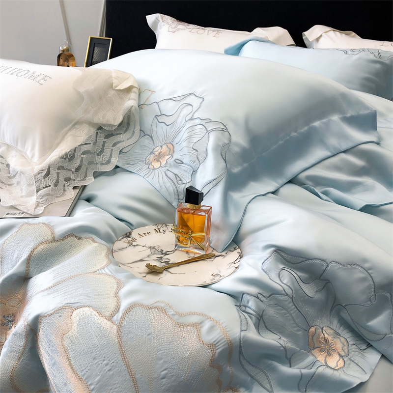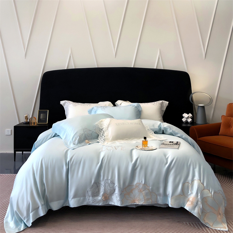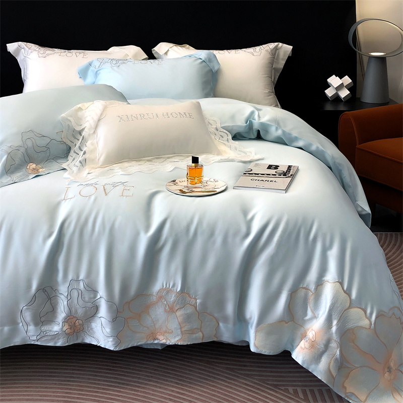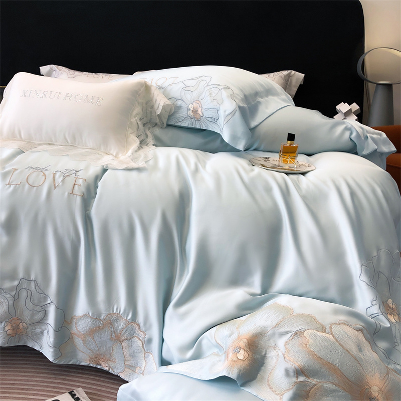 馨蕊 2023秋冬新品LF奥地利兰精天丝花恋系列四件套 天丝花恋-北卡蓝