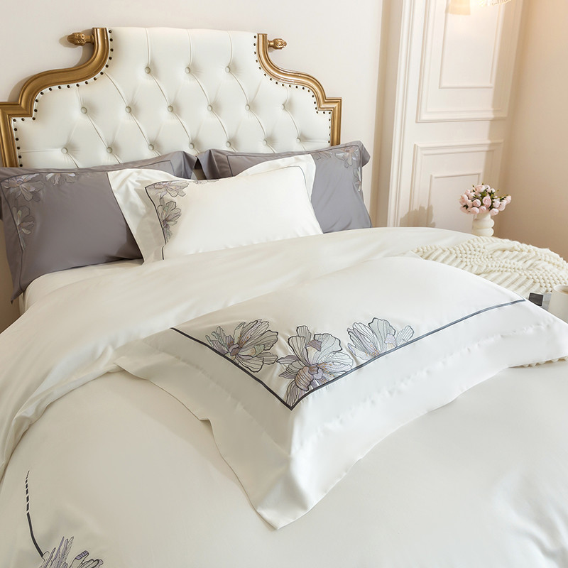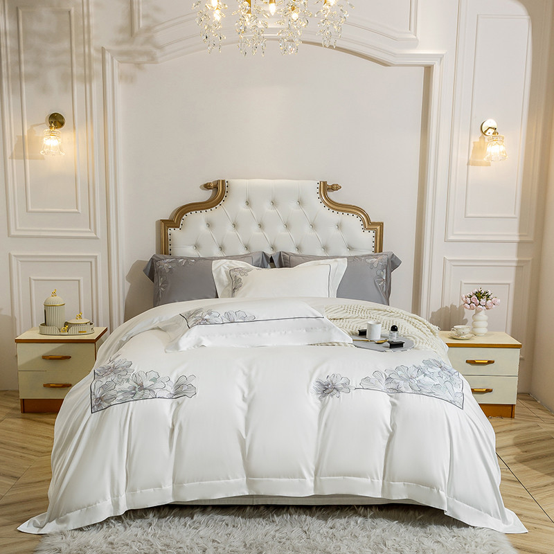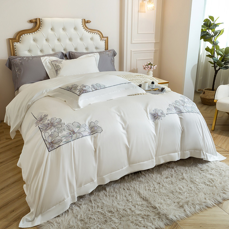 商品名称:淼铭 2025新款天丝棉绣花四件套-花语系列 花语-白
