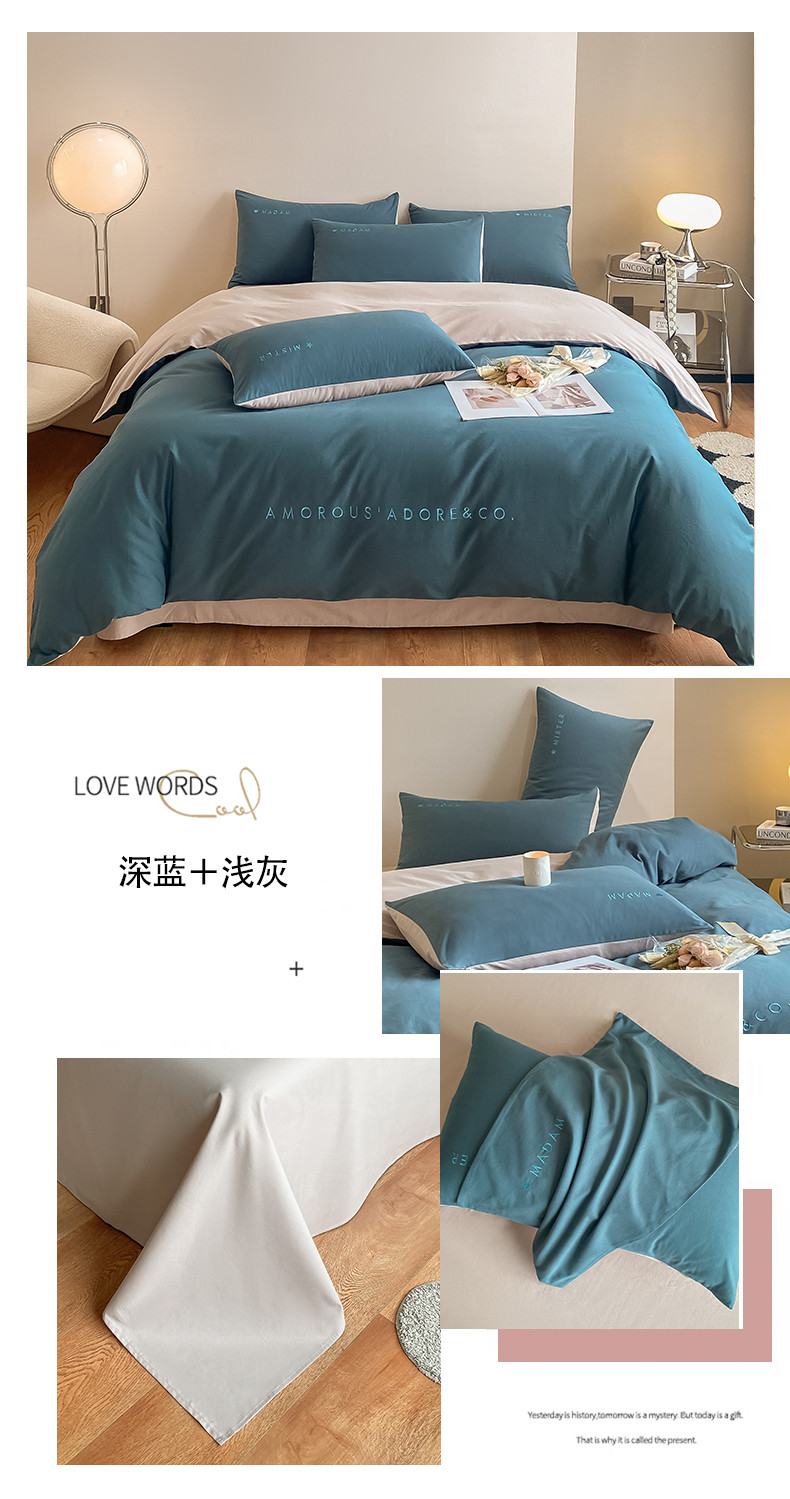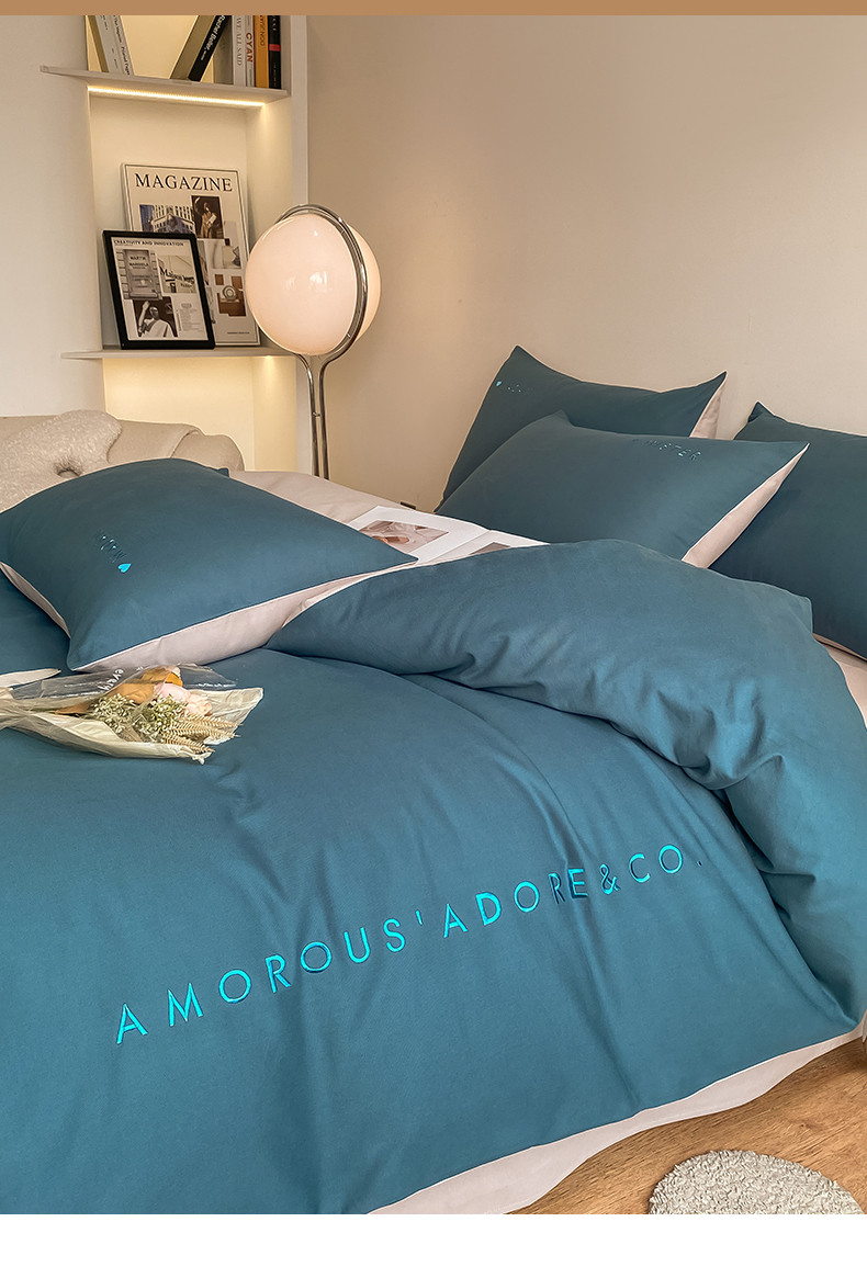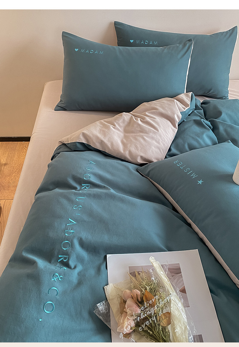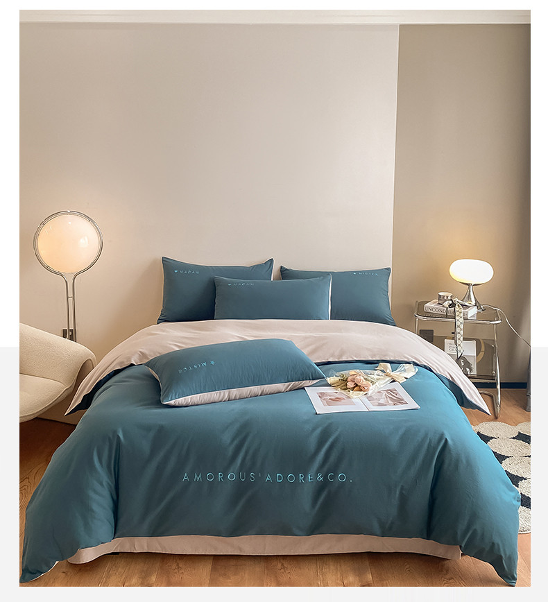 (总)拼社家纺 2025新款母婴及全棉水洗棉刺绣四件套纯棉床上用品,艾玛绿+卡其,繁星蓝+卡其,繁星蓝+玫瑰粉,红豆沙+雅灰,迷雾灰+玫瑰粉,蜜粉+雅灰,奶油白+卡其,奶油白+香橙,牛仔蓝+浅蓝,香橙+雅灰