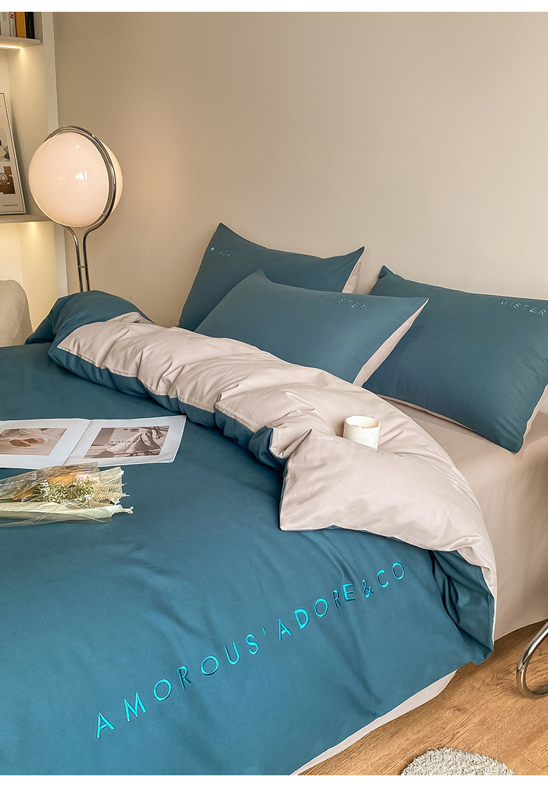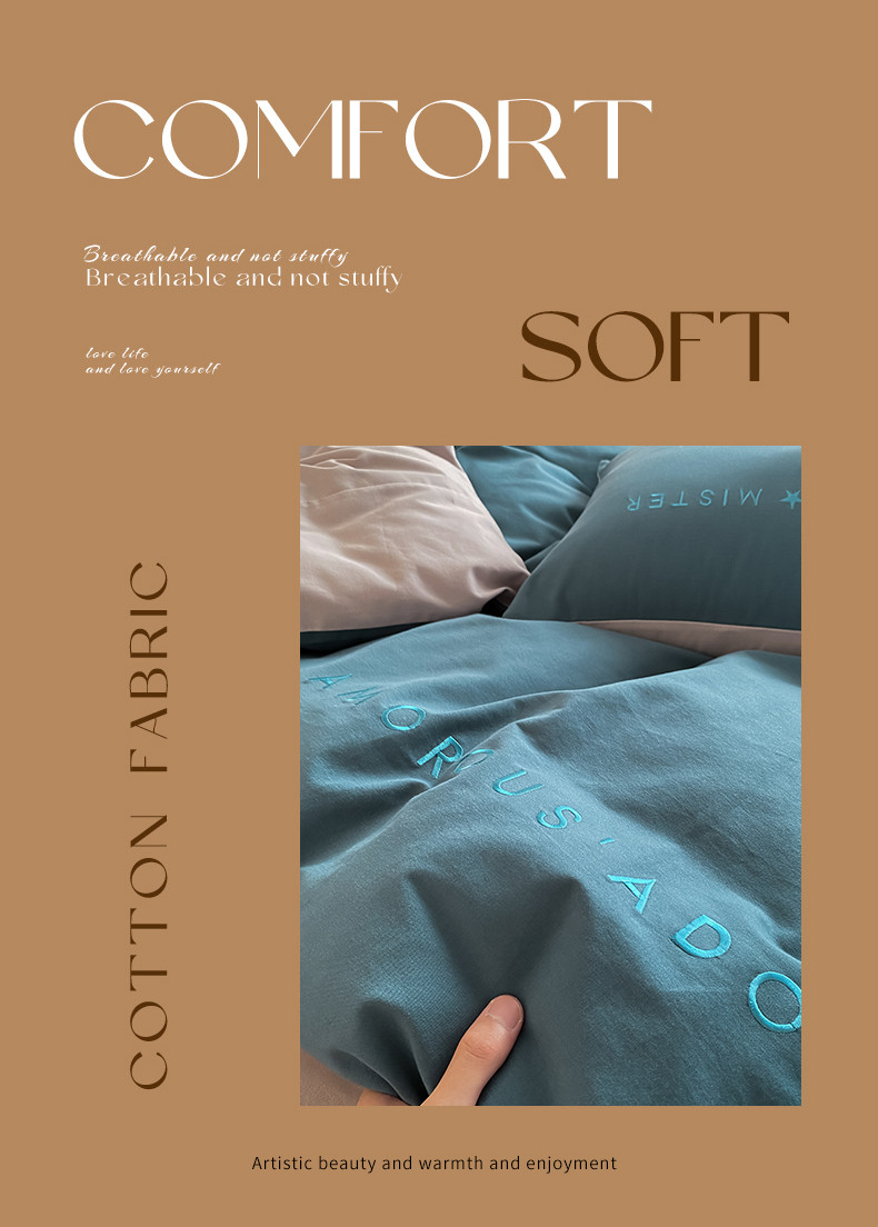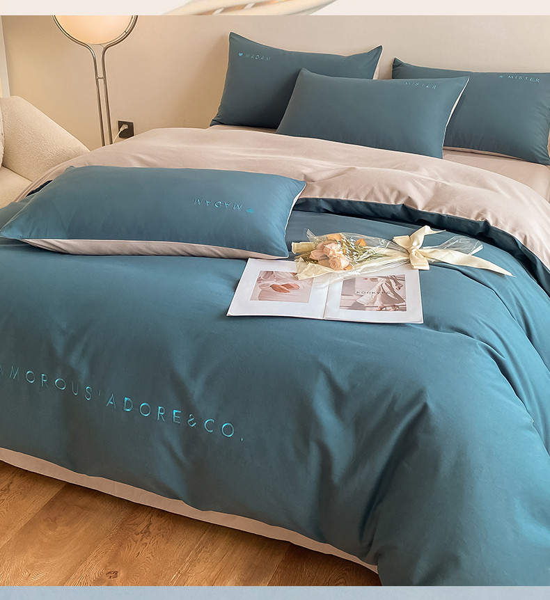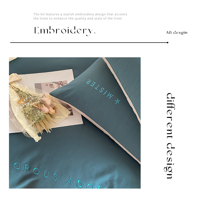 (总)拼社家纺 2025新款母婴及全棉水洗棉刺绣四件套纯棉床上用品,艾玛绿+卡其,繁星蓝+卡其,繁星蓝+玫瑰粉,红豆沙+雅灰,迷雾灰+玫瑰粉,蜜粉+雅灰,奶油白+卡其,奶油白+香橙,牛仔蓝+浅蓝,香橙+雅灰