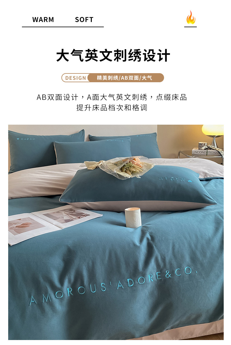 秋冬全棉加厚磨毛四件套纯棉刺绣活性床上用品(提供买家秀)