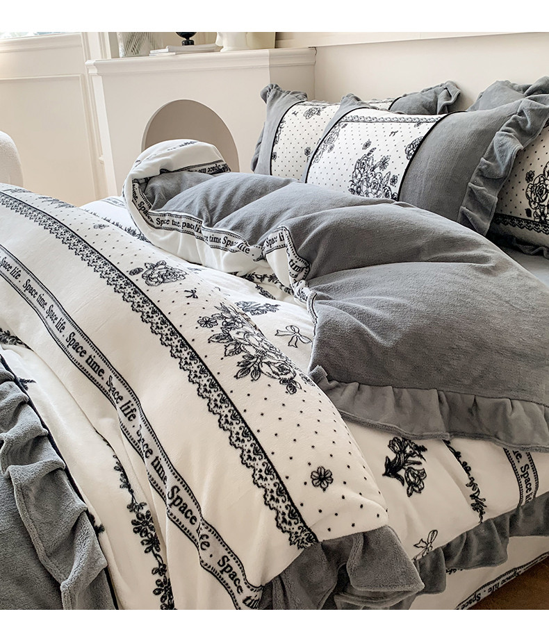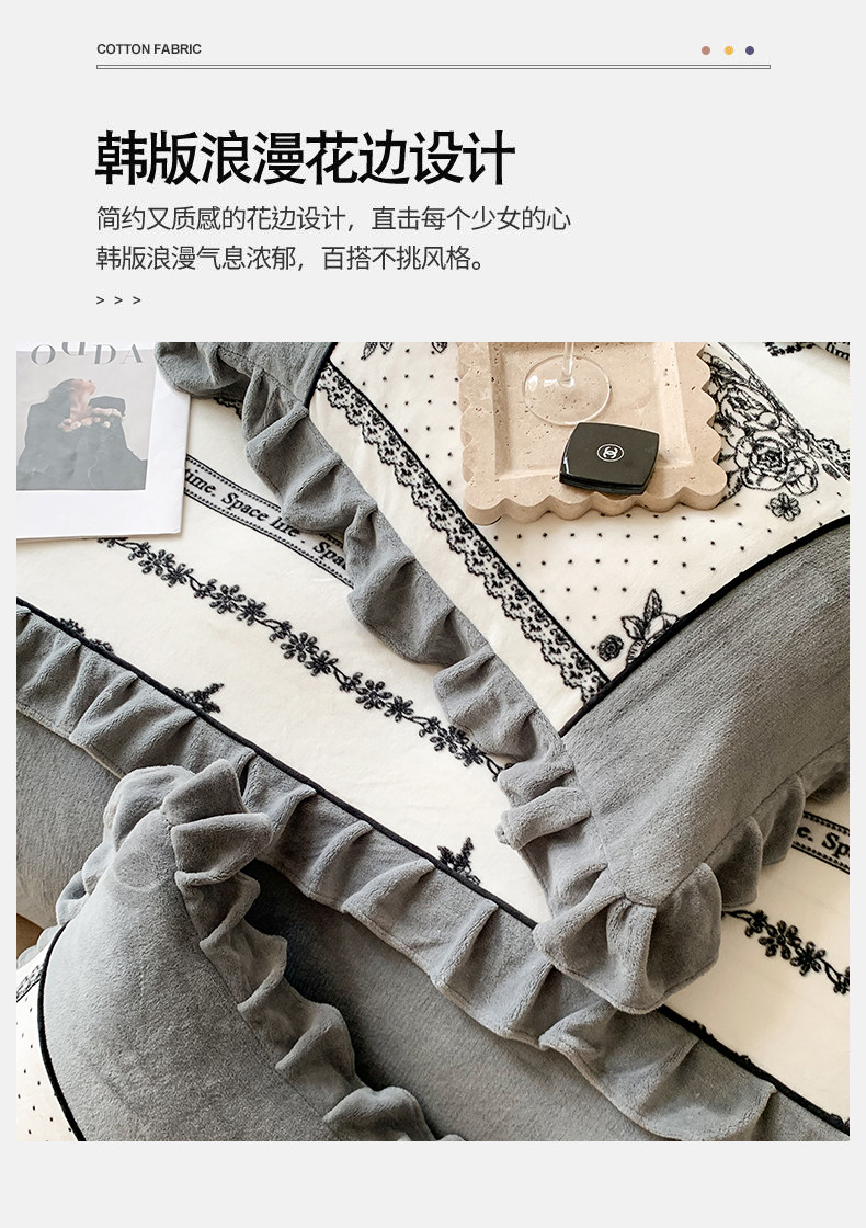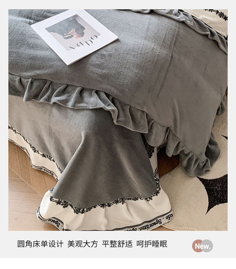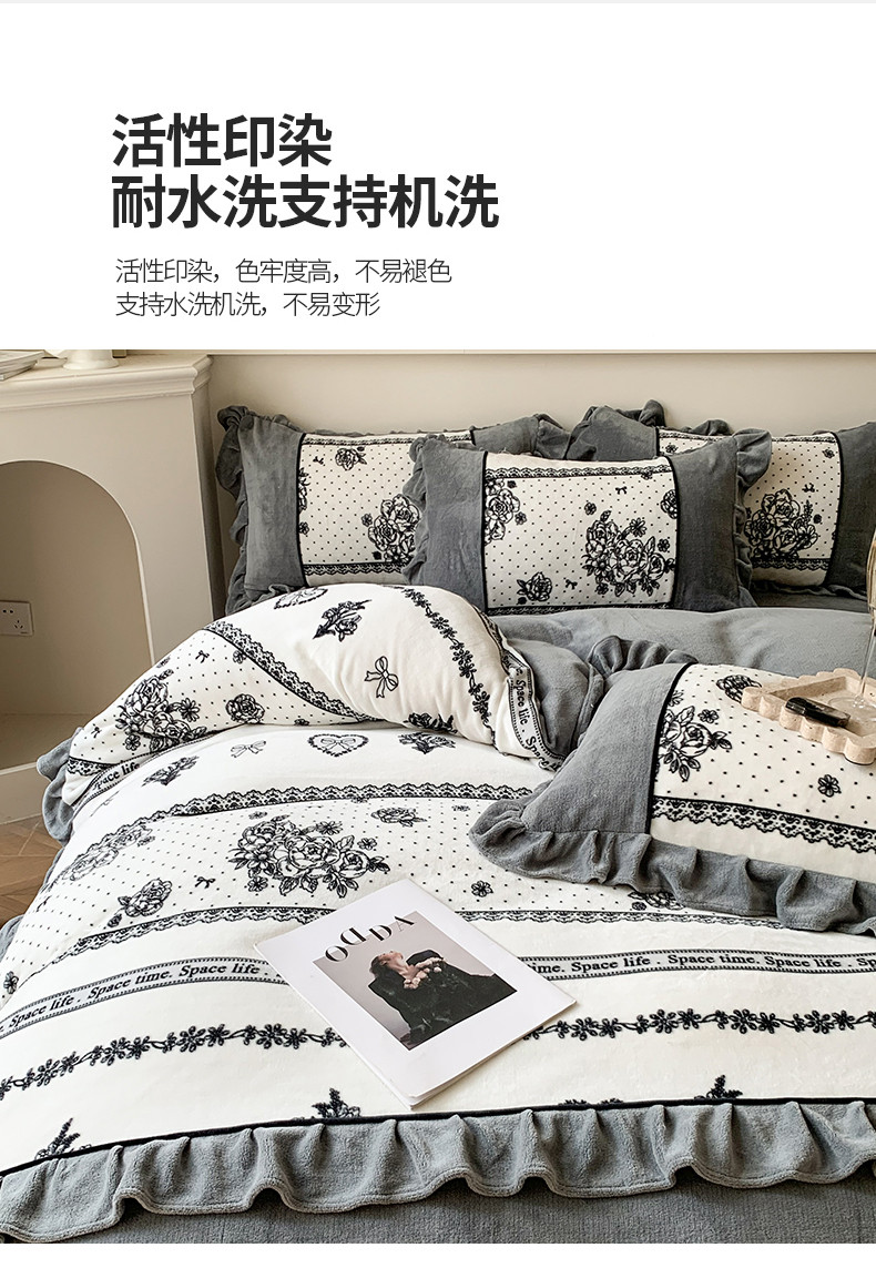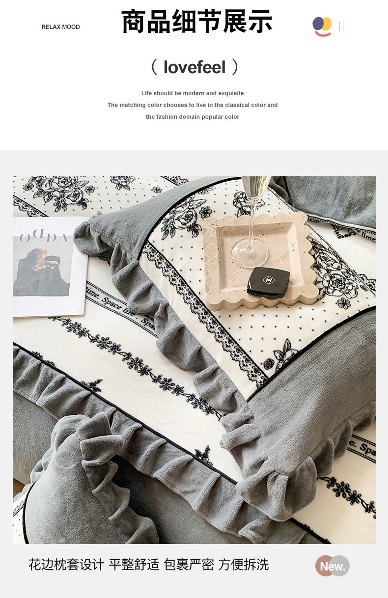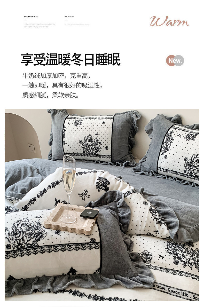 吾欢心 2024新款法式复古韩版花边牛奶绒四件套 优雅生活