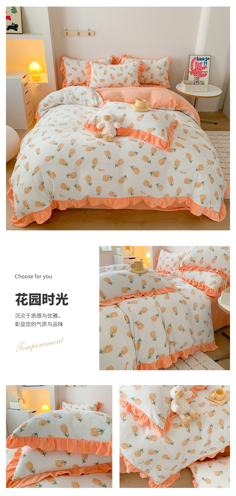商品名称:吾欢心 2024新款韩版花边牛奶绒四件套 花园时光