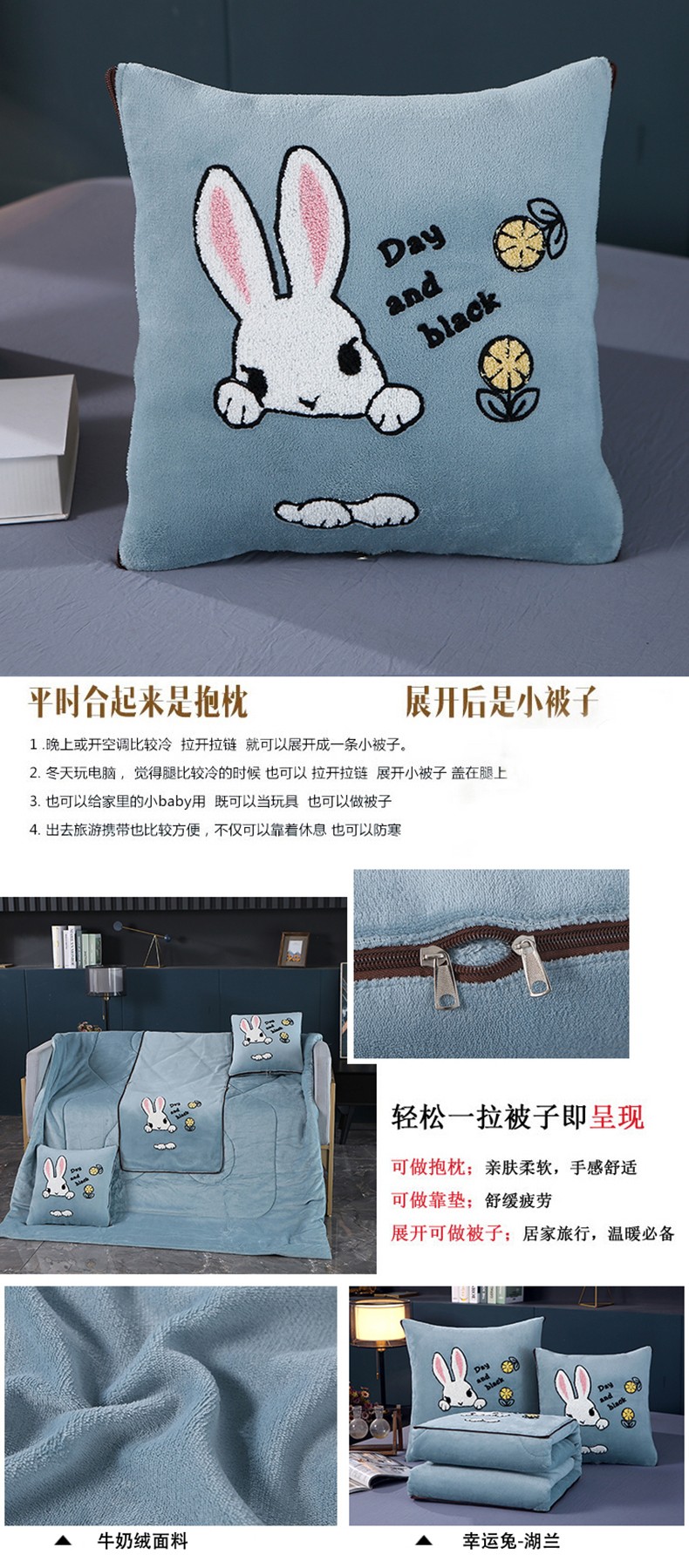 商品名称:伊可爱抱枕被 2023新款牛奶绒绣花抱枕被 幸运兔-湖兰