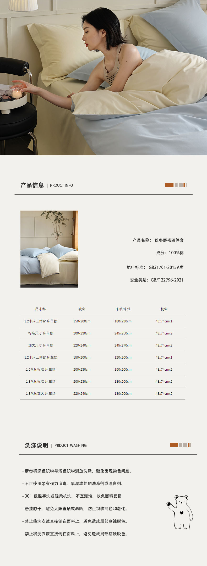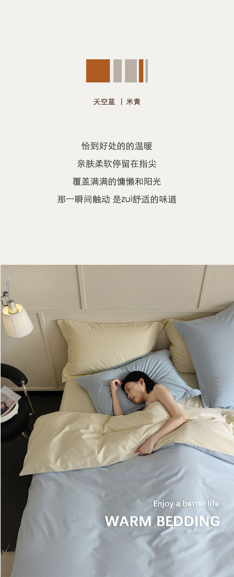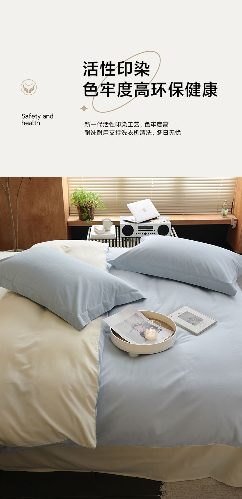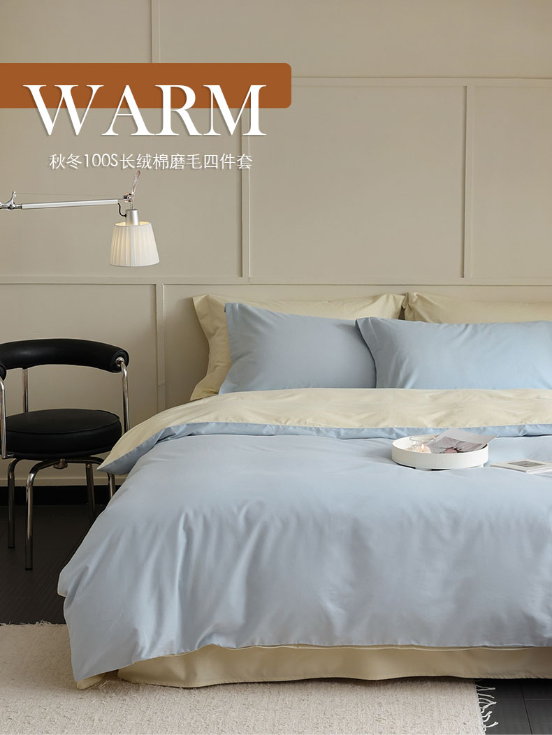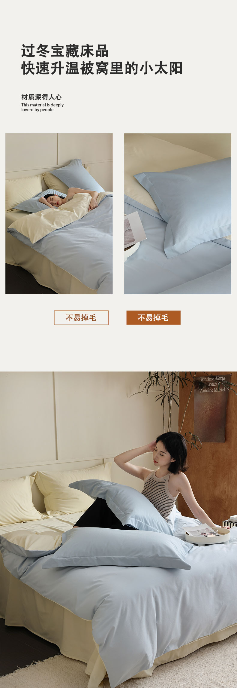 当前位置: 91家纺网 > 商品网购 > 床品套件 > 四件套 > 全棉活性四件套 > 2023新款A类加厚50s超柔全棉长绒棉磨毛四件套 天空蓝+米黄