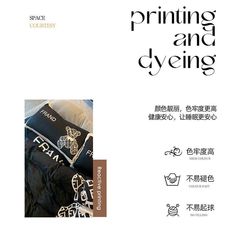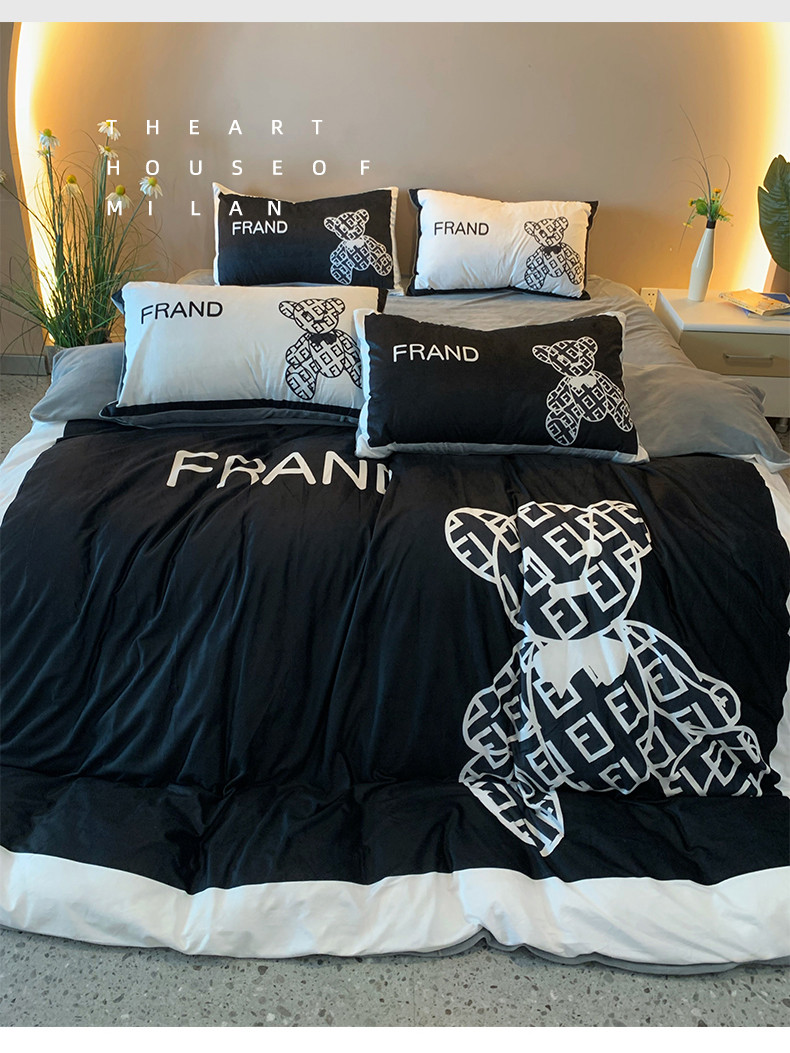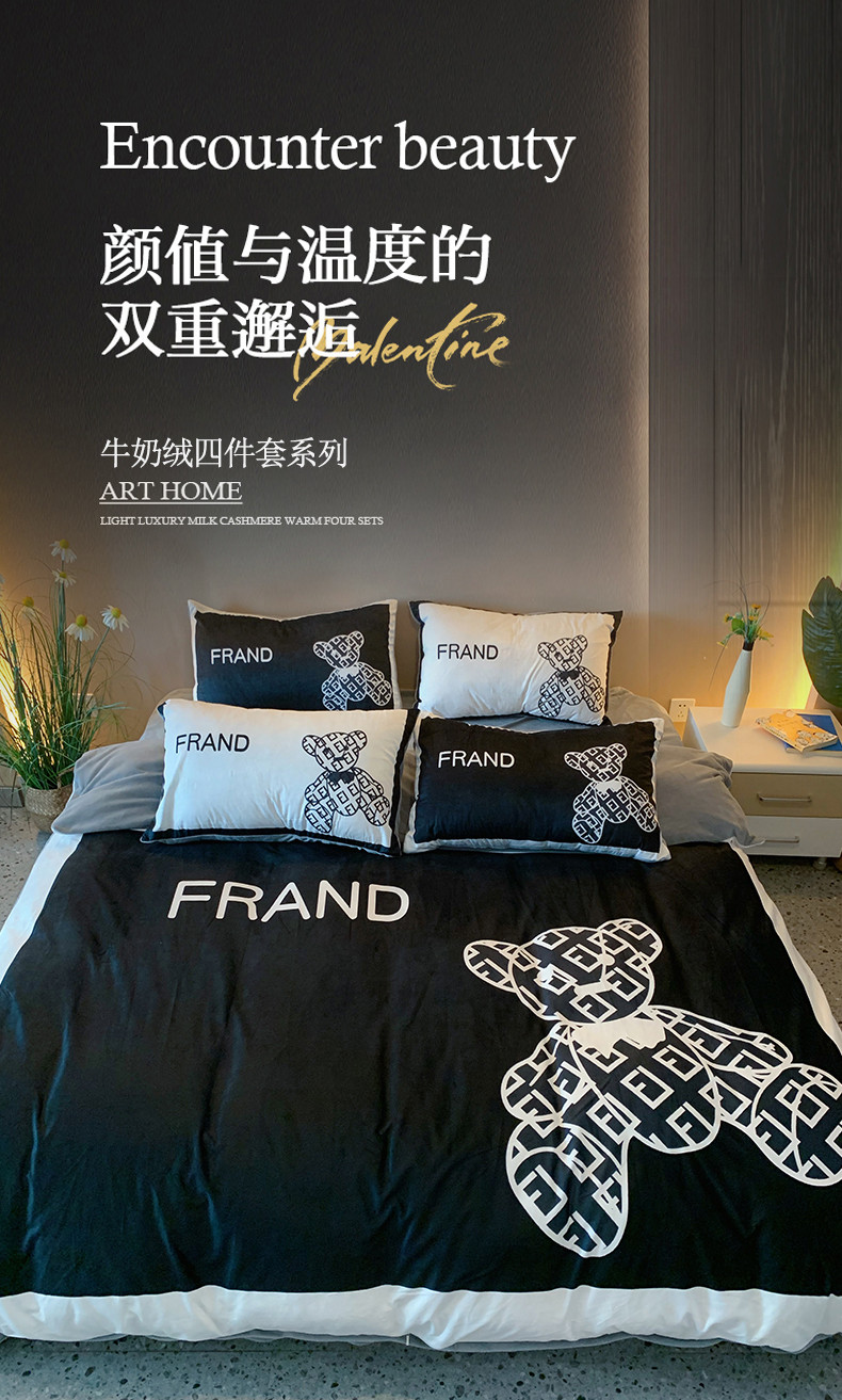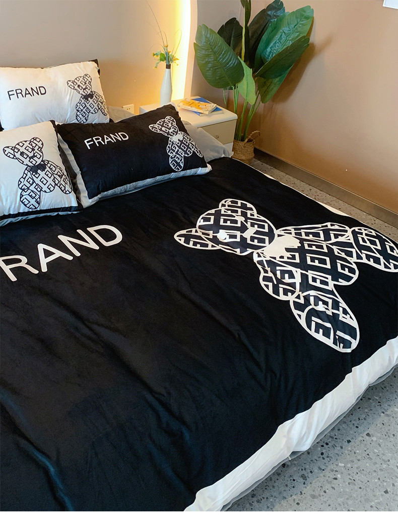 商品名称:色鬼布艺 2023新款活性数码印花牛奶绒四件套-场景二 小黑熊