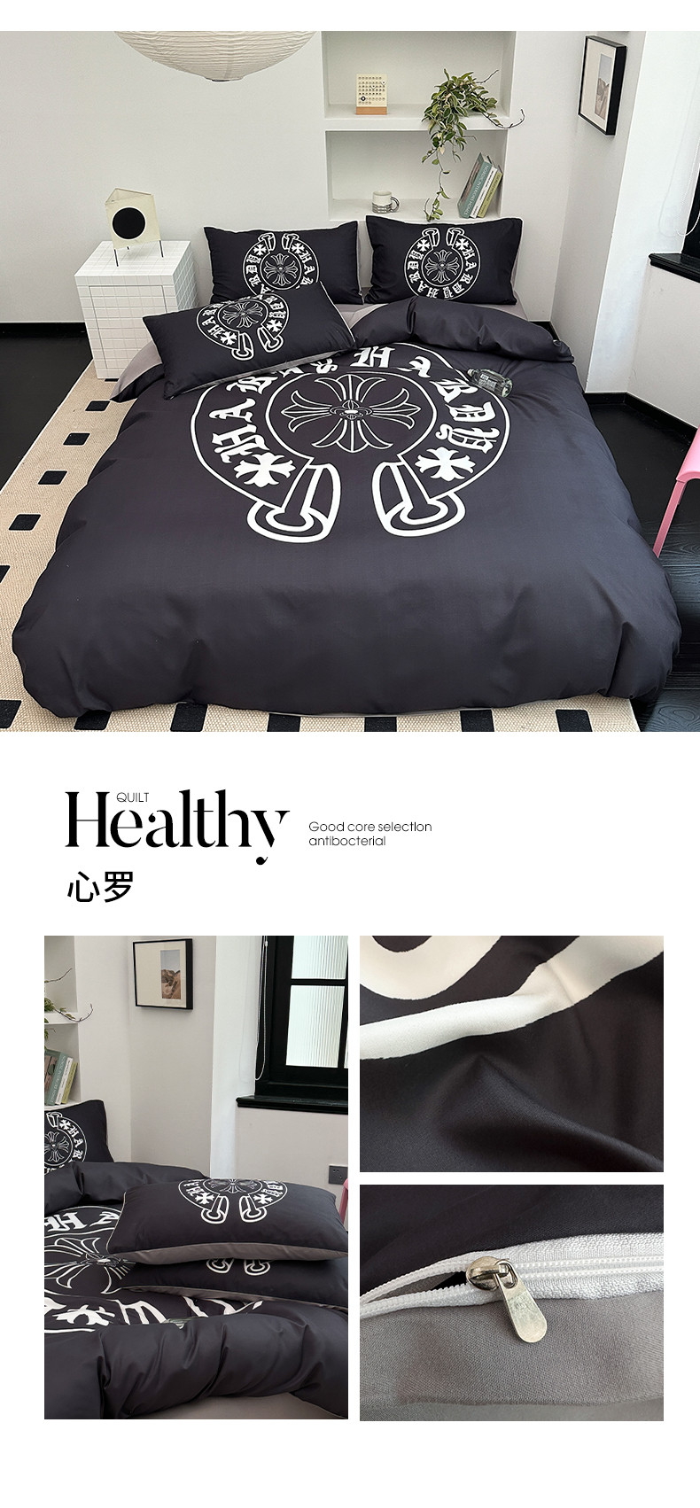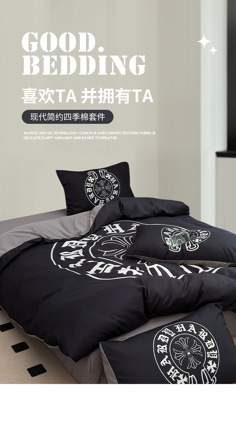 (总)色鬼布艺高端家居主号 2025新款轻奢亲肤纯棉数码印花网红热款四件套,豹纹香,白金V,白香花,大H,黑白迪,黑白V,灰迪,咖古,克莱因,慕斯小姐,山茶花,星空