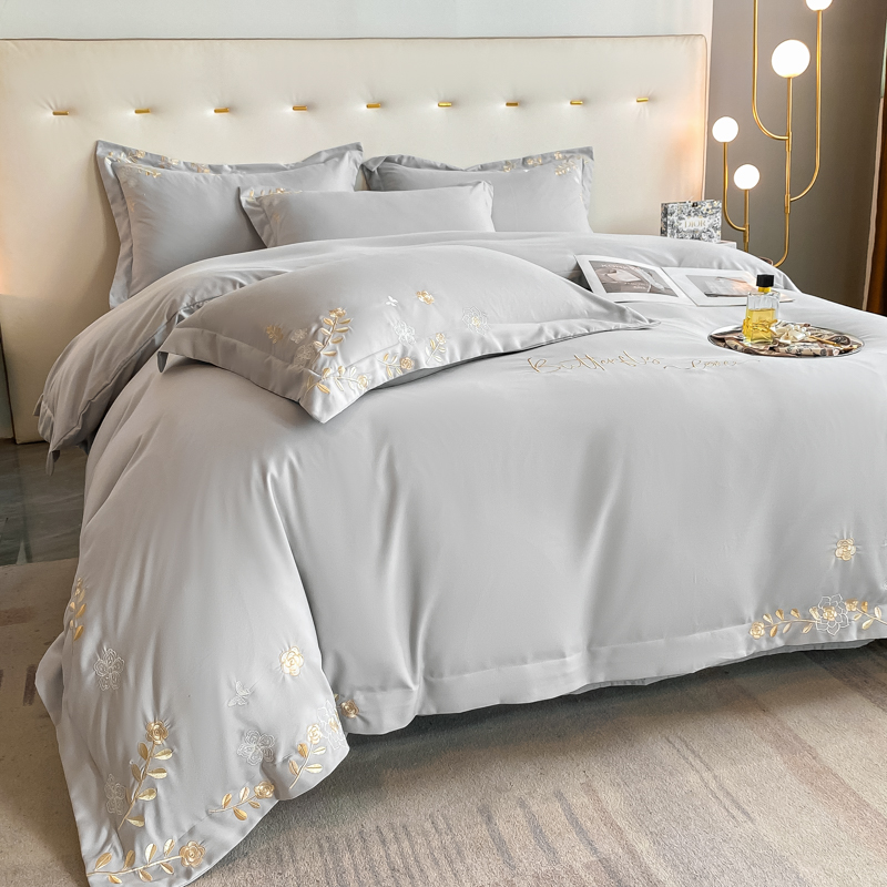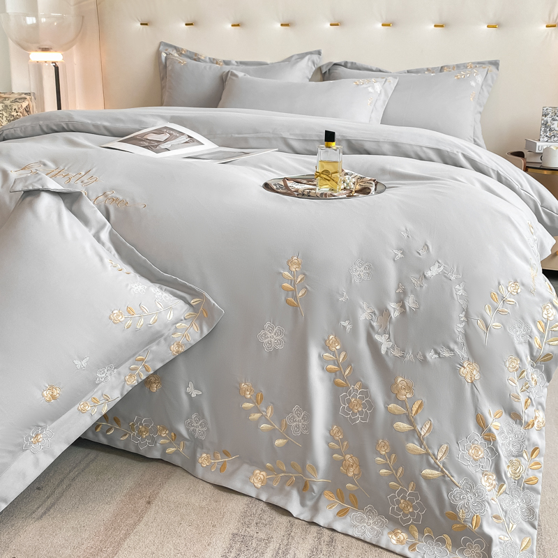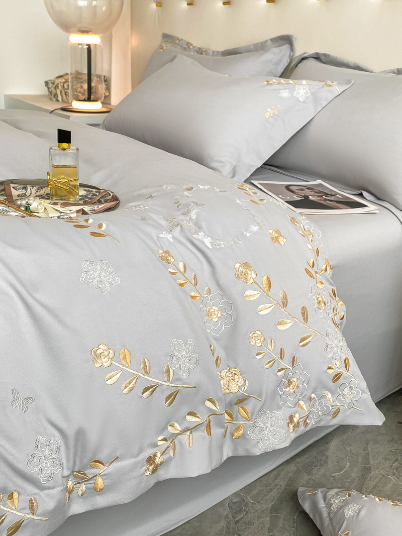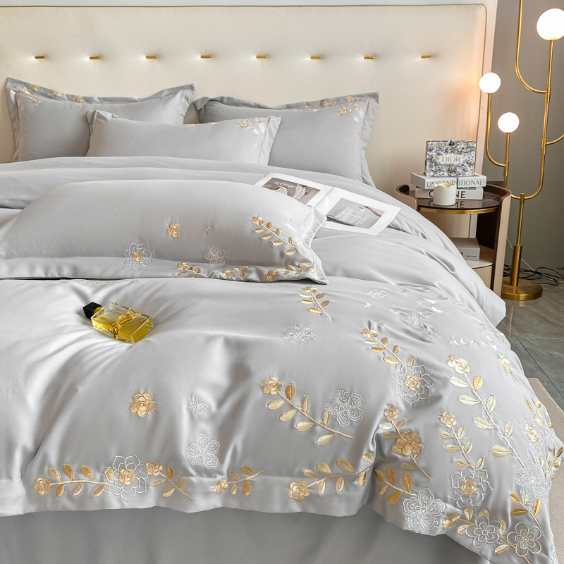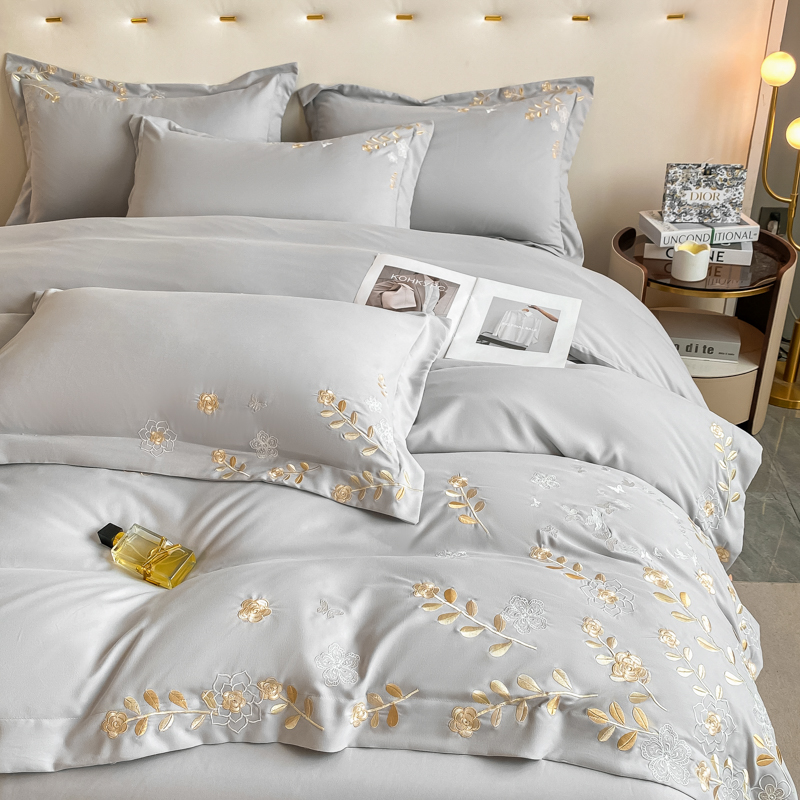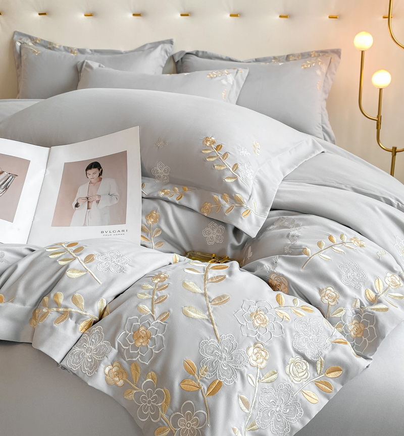 博纳家纺 2023新款洛可可系列AB版亲肤棉绣花四件套 高级灰