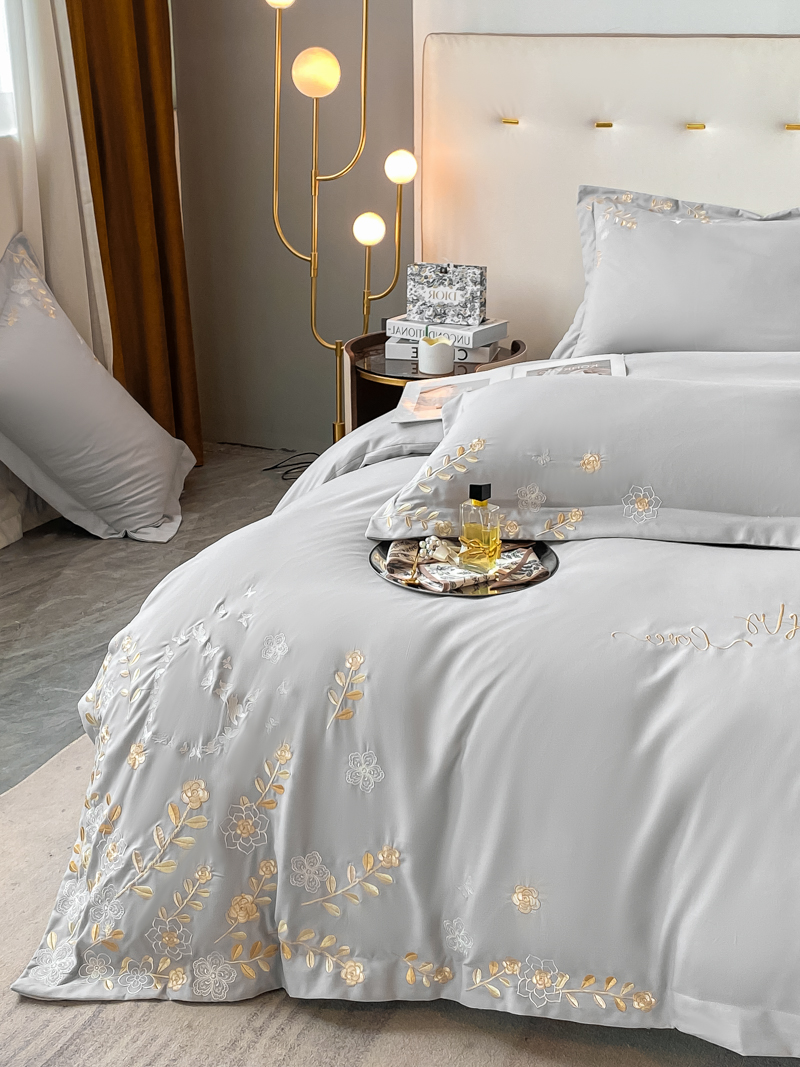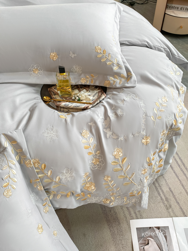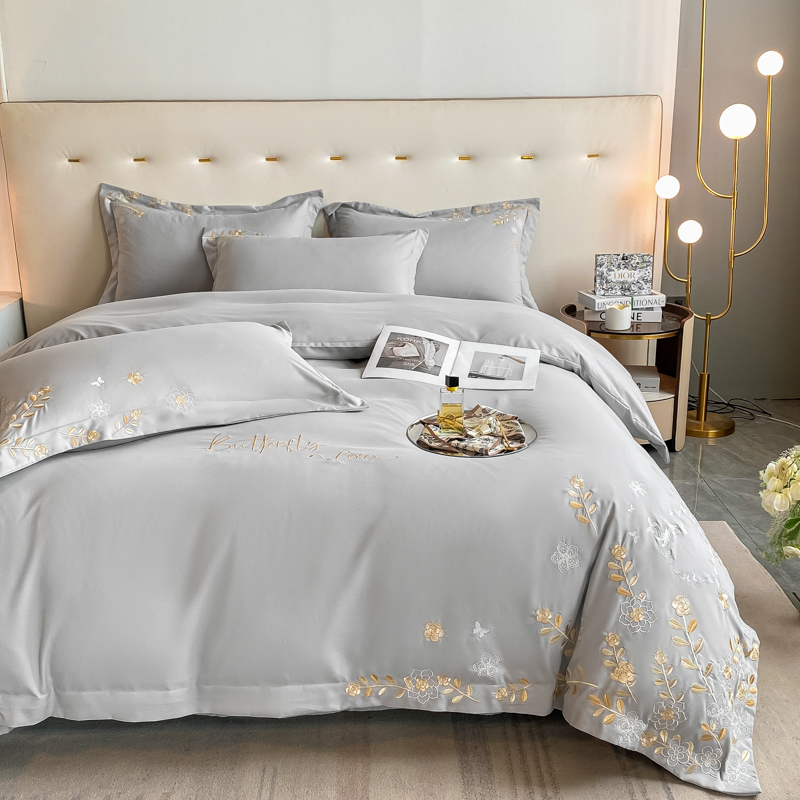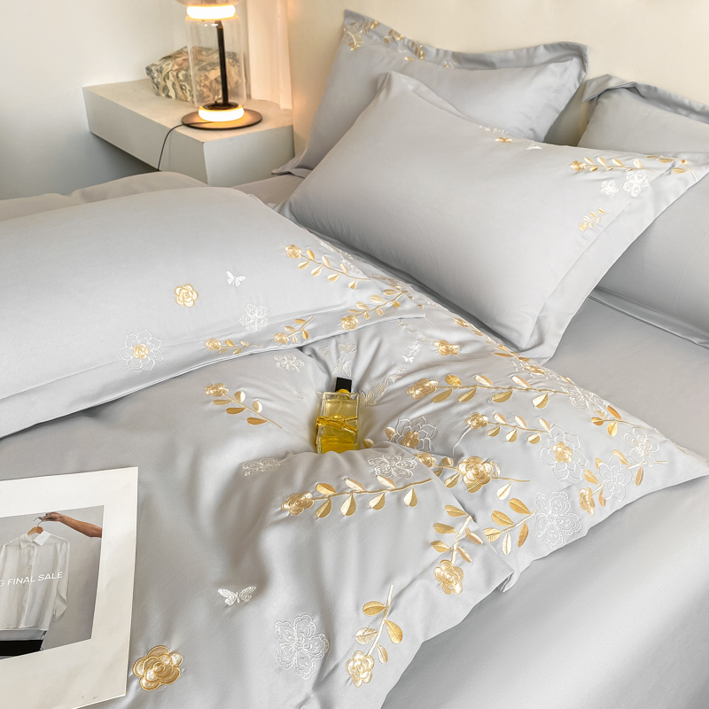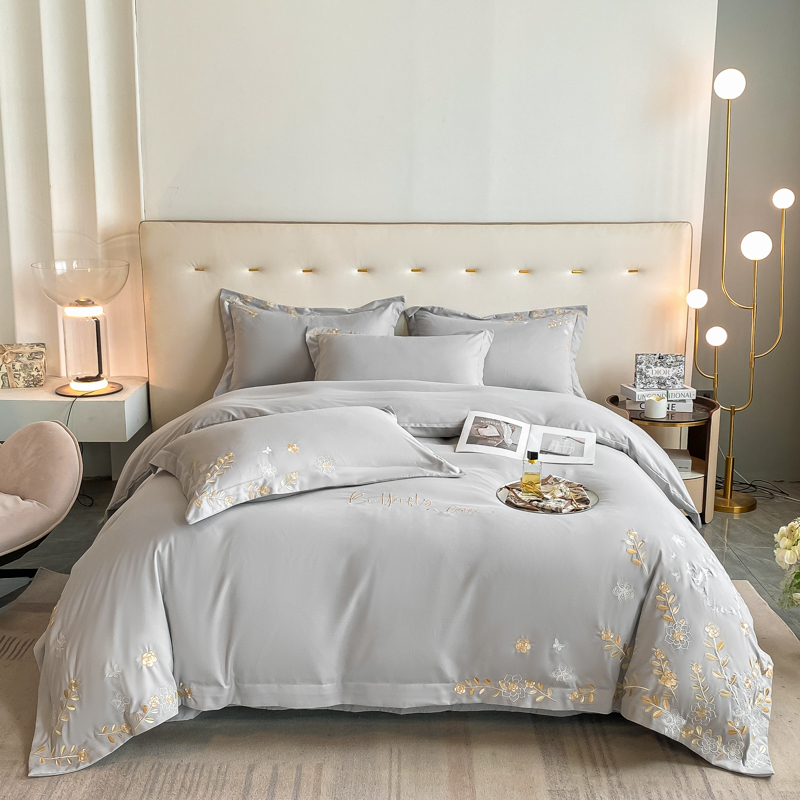 博纳家纺 2023新款洛可可系列AB版亲肤棉绣花四件套 高级灰