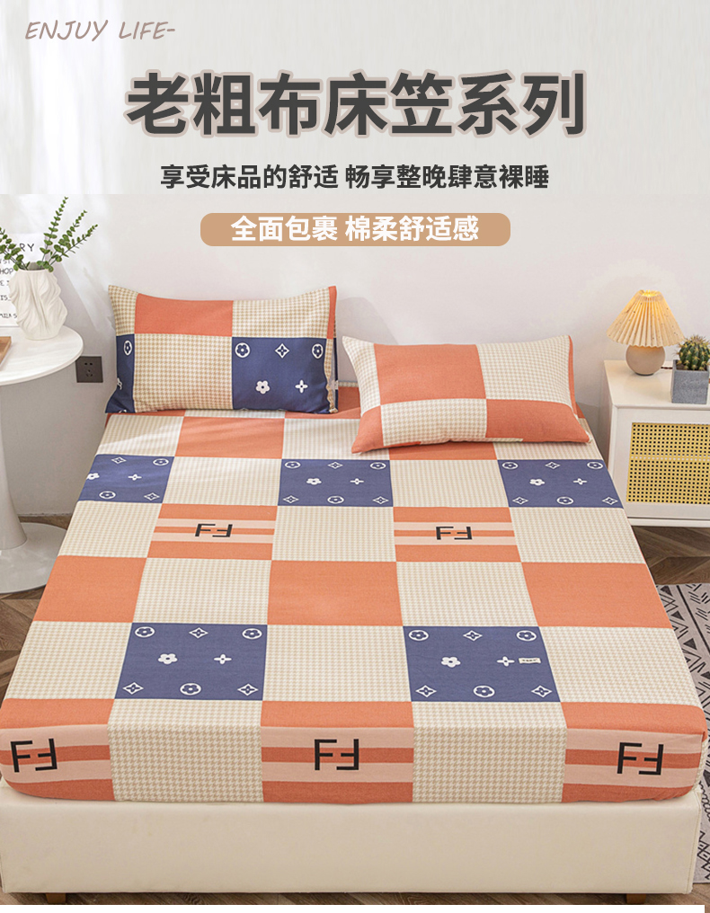 • 91家纺网 家纺一手货源 找家纺 首爱家纺 2025新款纯棉老粗布床笠 简尚