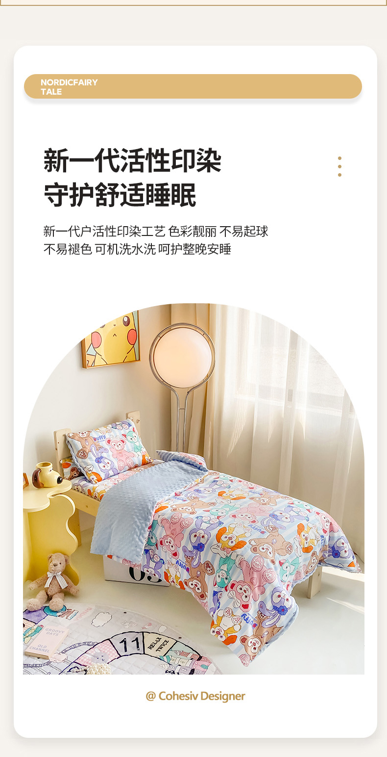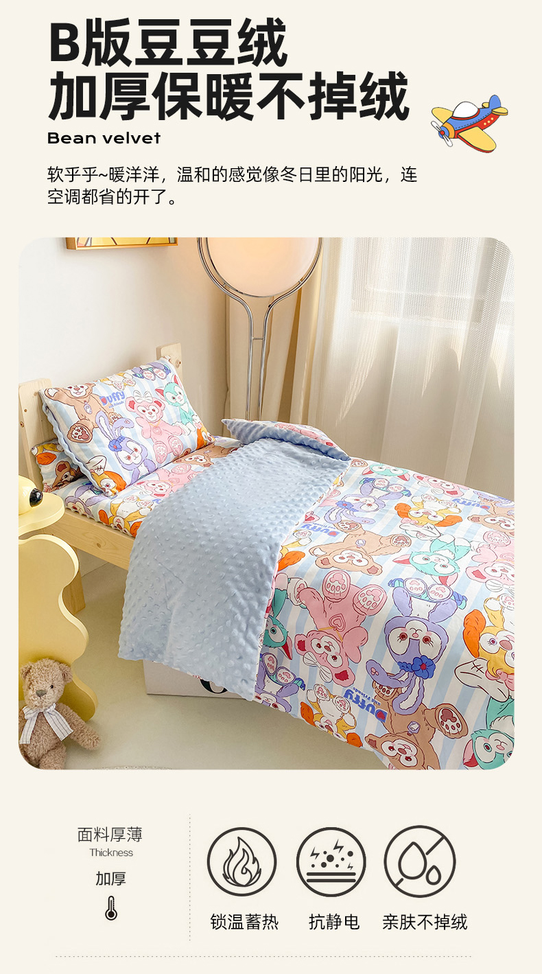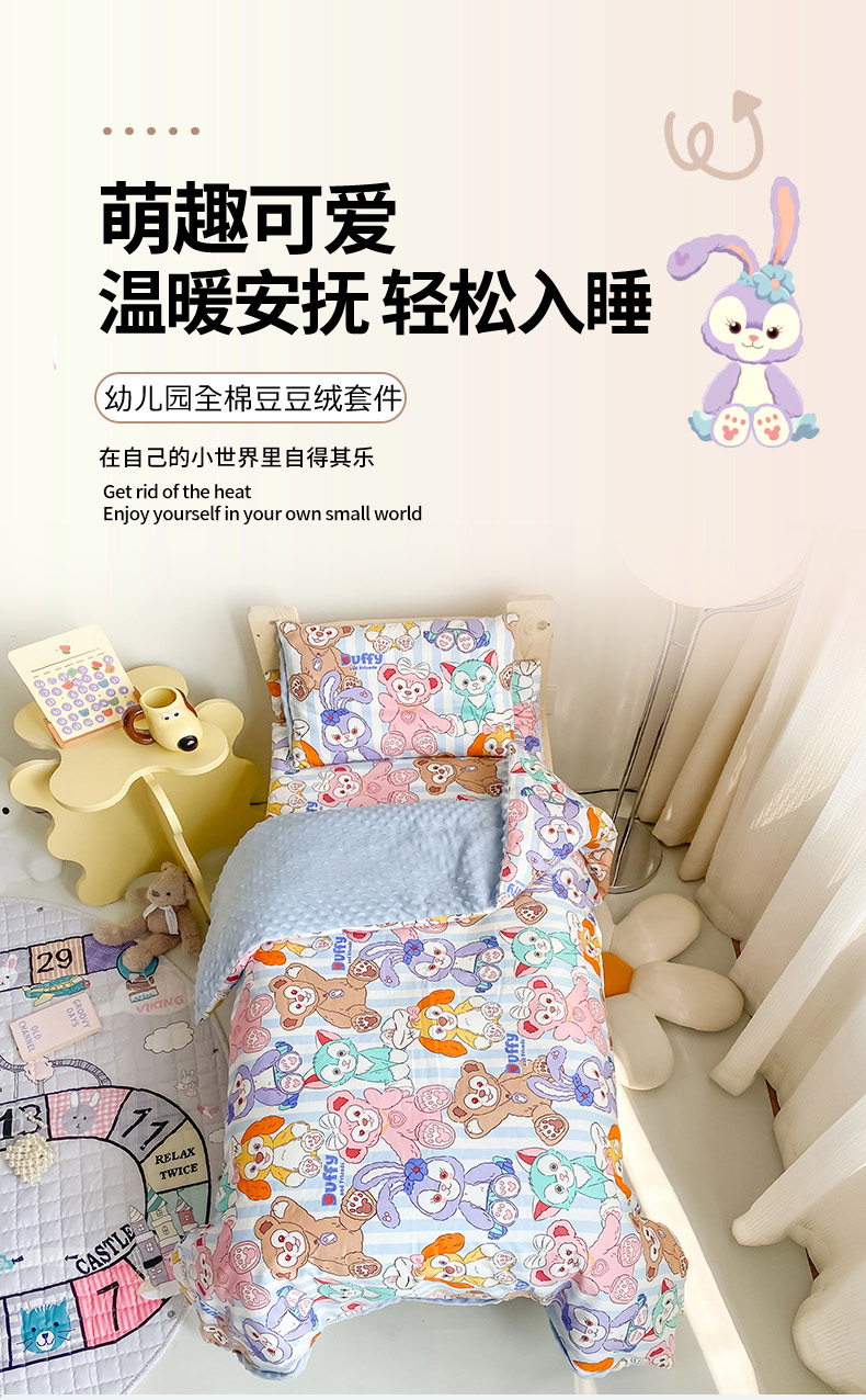 商品名称:(总)沁童 2023新款13372全棉儿童豆豆绒加全棉三件套,幼儿园六件套