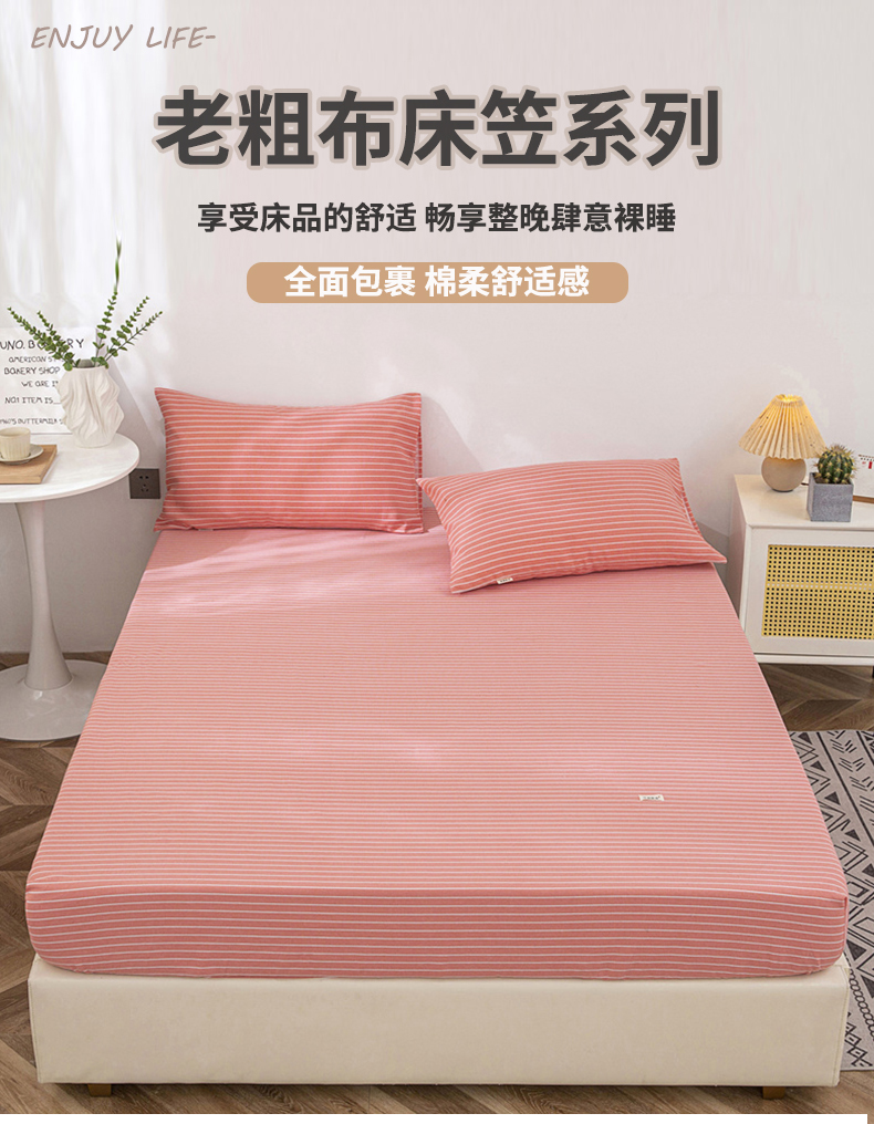 • 91家纺网 家纺一手货源 找家纺 棉乐町 2025新款老粗布床笠 条纹粉