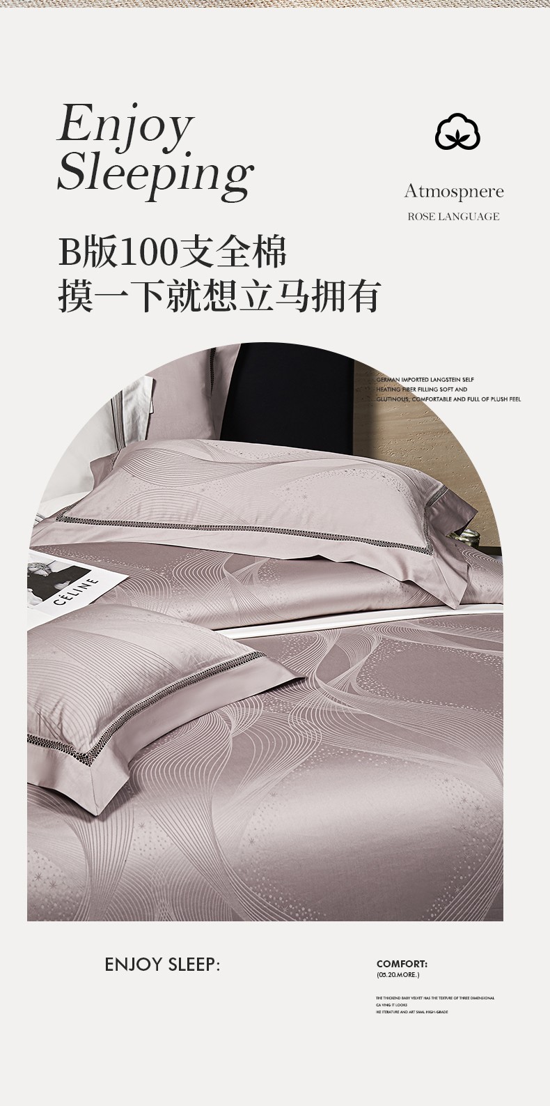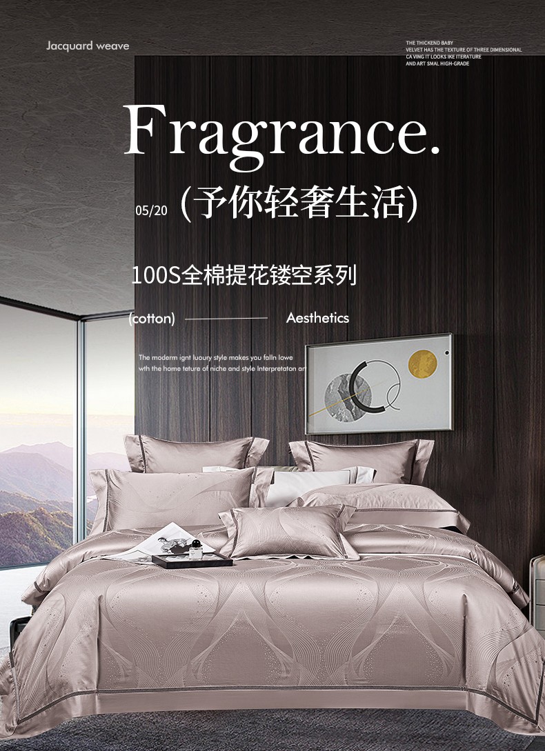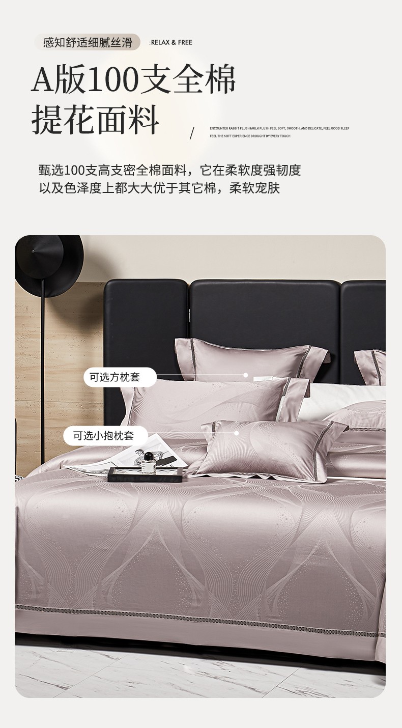 100支100S全棉提花四件套可配七件套可定制长绒棉直播爆款 芬芳