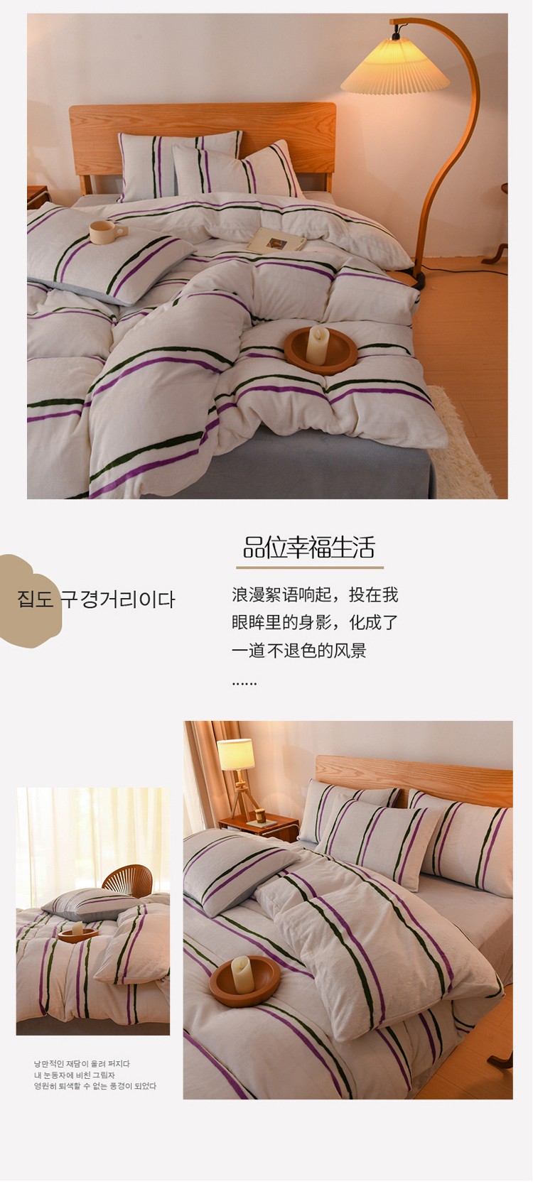 当前位置: 91家纺网 > 商品网购 > 床品套件 > 四件套 > 牛奶绒四件套 > 2023新款无印风印花双面牛奶绒四件套 彩色条纹