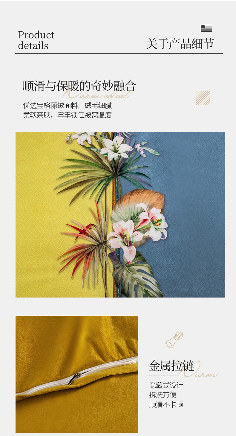 商品名称:宜家坊 2023新款高克重高奢云丝绒系列四件套 罗森堡-黄
