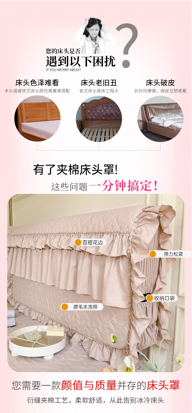 (总)十个点家纺 2025新款公主风夹棉床头罩-绫罗系列,爱意萌萌,贝贝熊,格桑花,海棠花,蝴蝶兔,花千骨,米兰,木棉花,山茶花,同心结,心相印,心愿-米