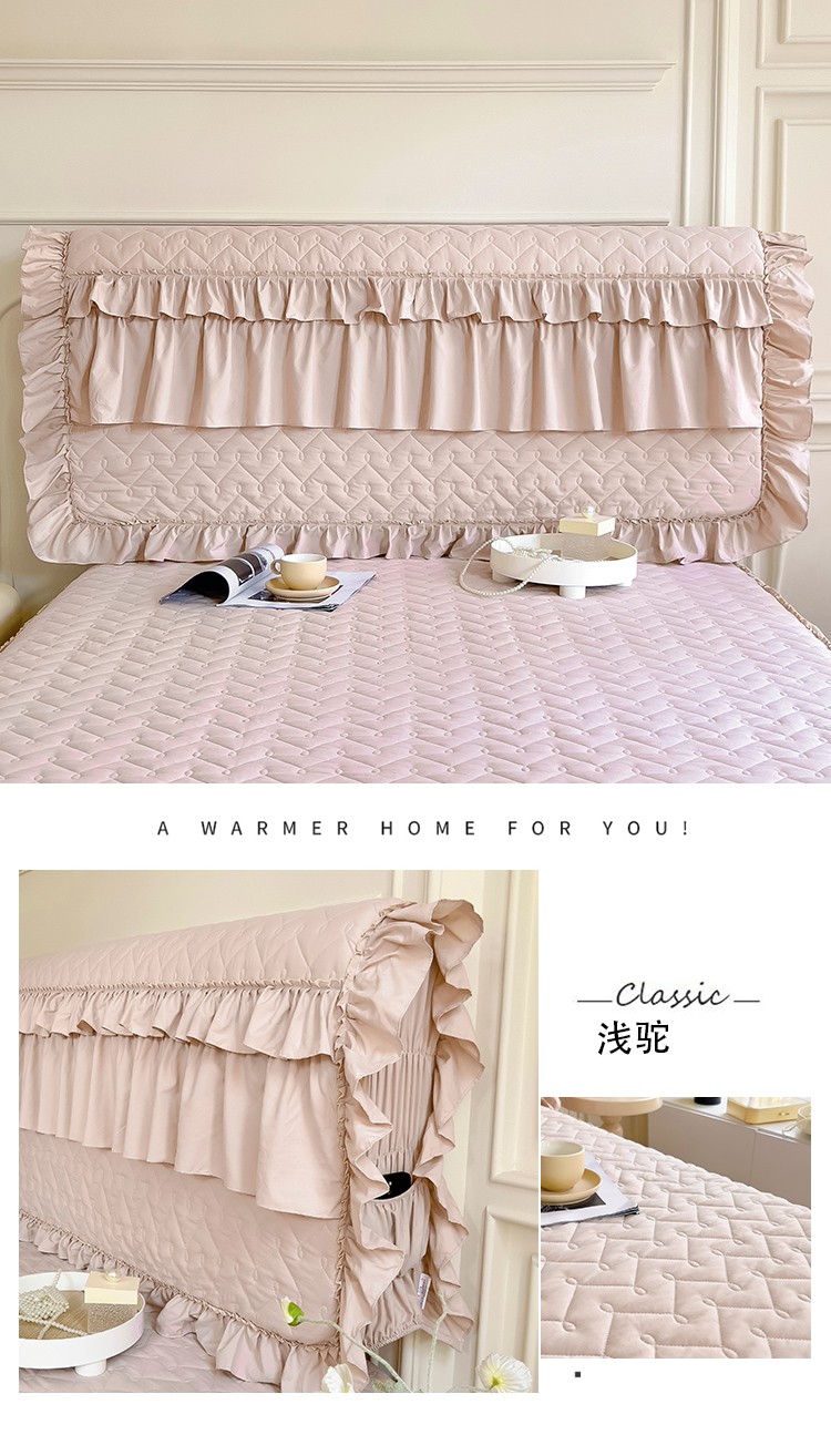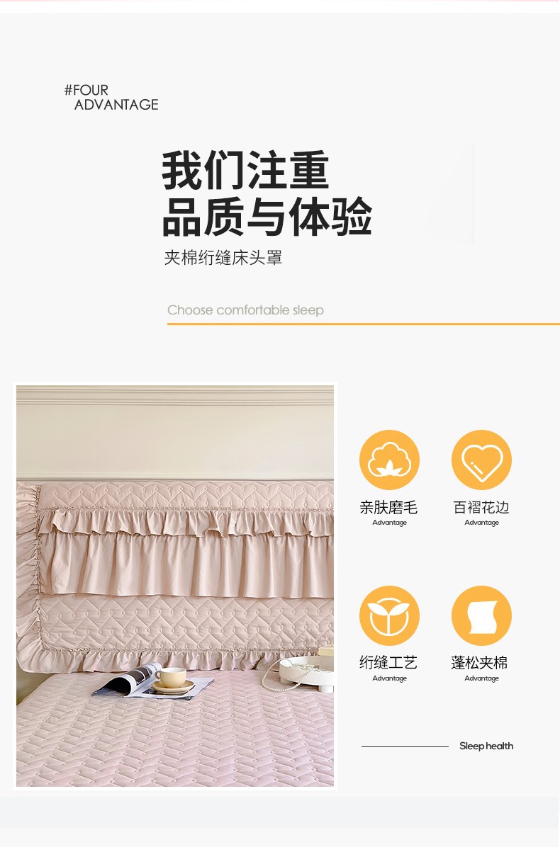 (总)十个点家纺 2025新款千鸟格磨毛绗缝夹棉纯色花边床头罩,经典白色,经典兰色,经典浅灰,经典浅驼,经典深灰,经典玉粉