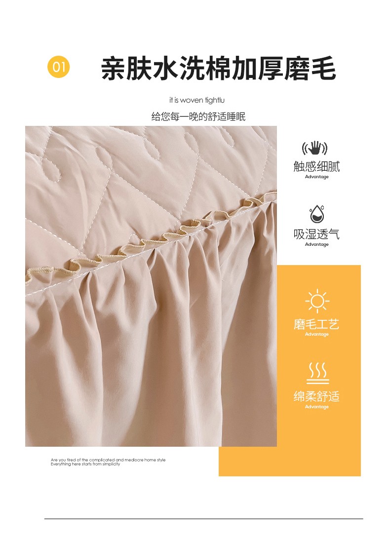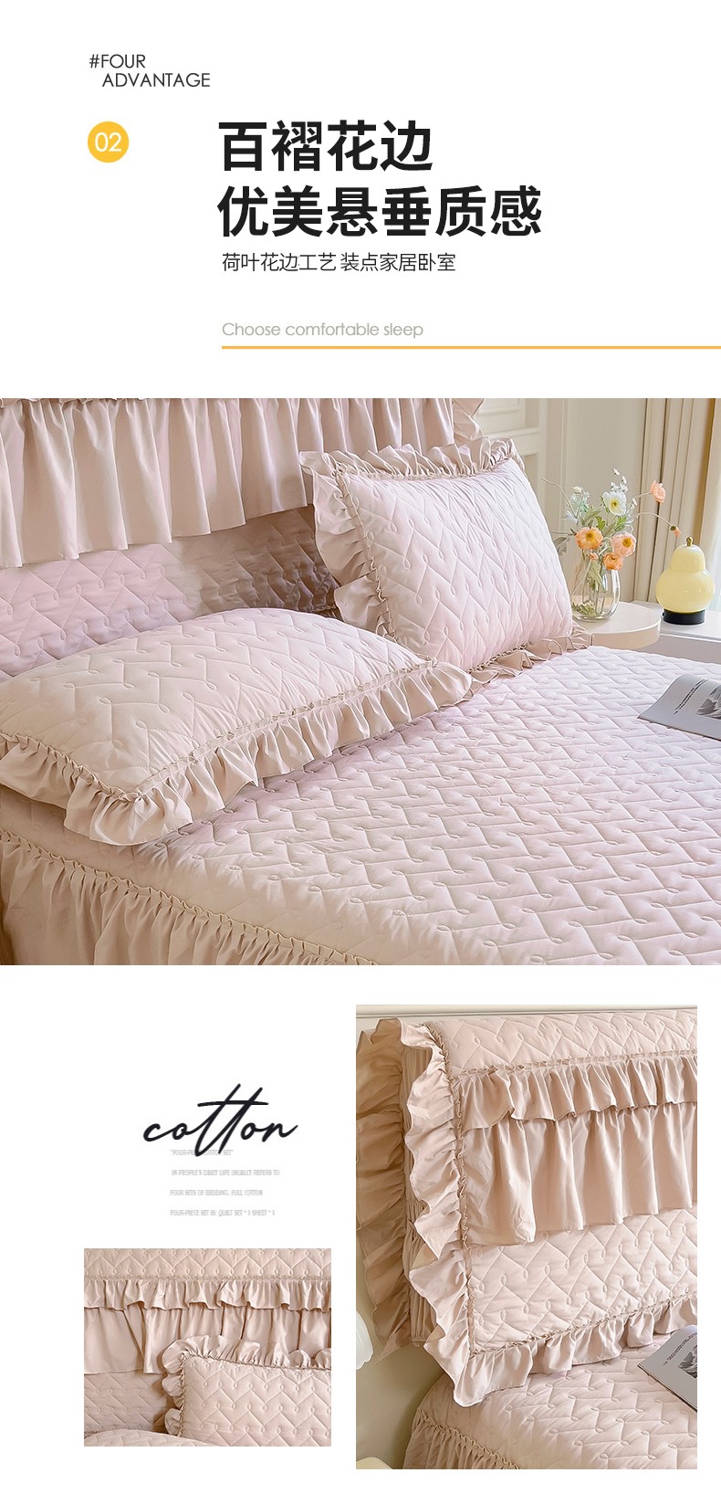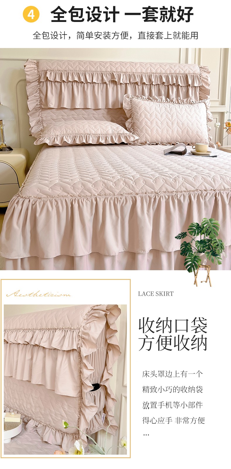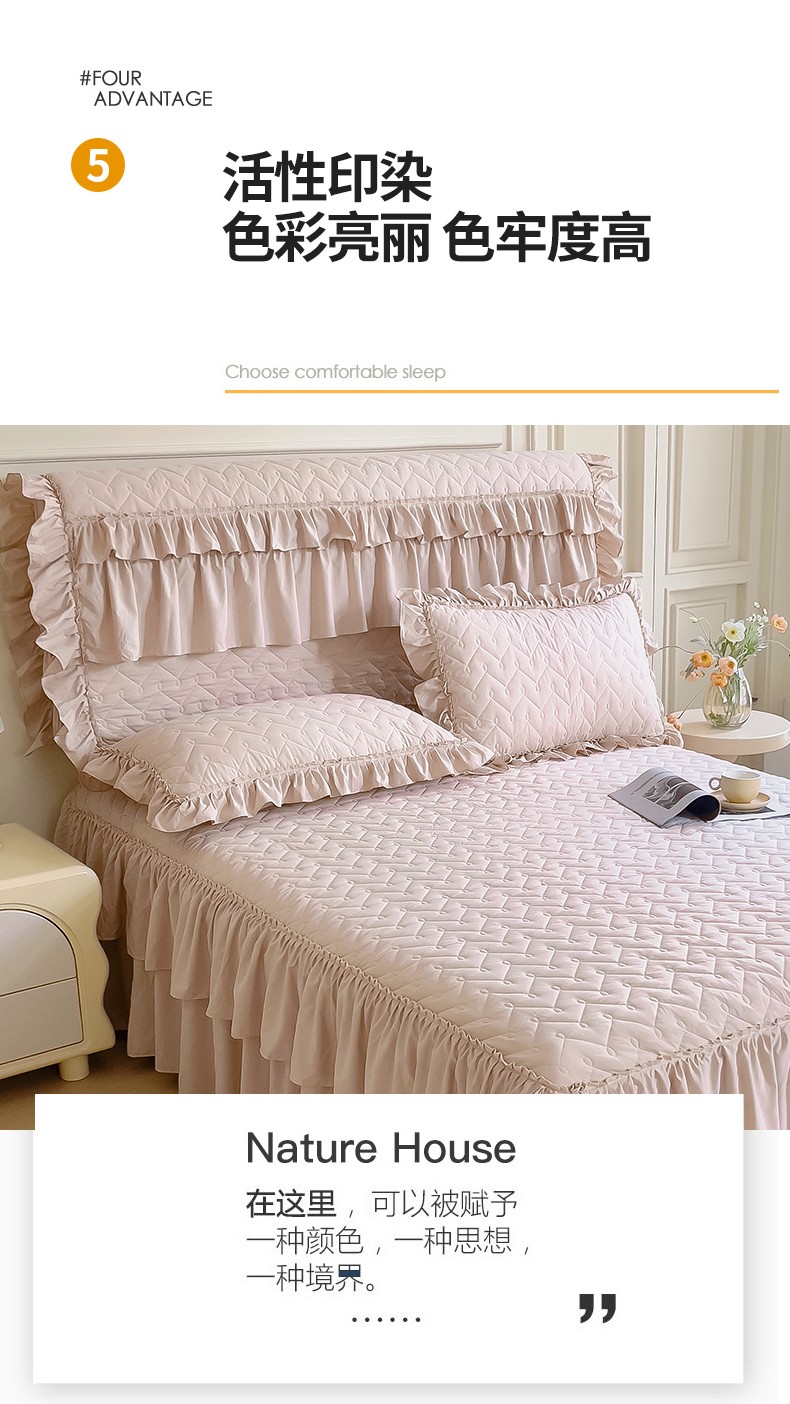 (总)十个点家纺 2025新款千鸟格磨毛绗缝夹棉纯色花边床裙三件套,经典白色,经典兰色,经典浅灰,经典浅驼,经典深灰,经典玉粉