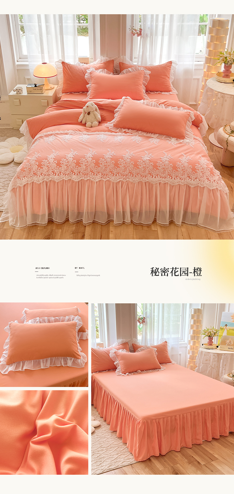 商品名称:唐人居 2025新款亲肤磨毛花边款床裙系列--秘密花园 秘密花园-橙