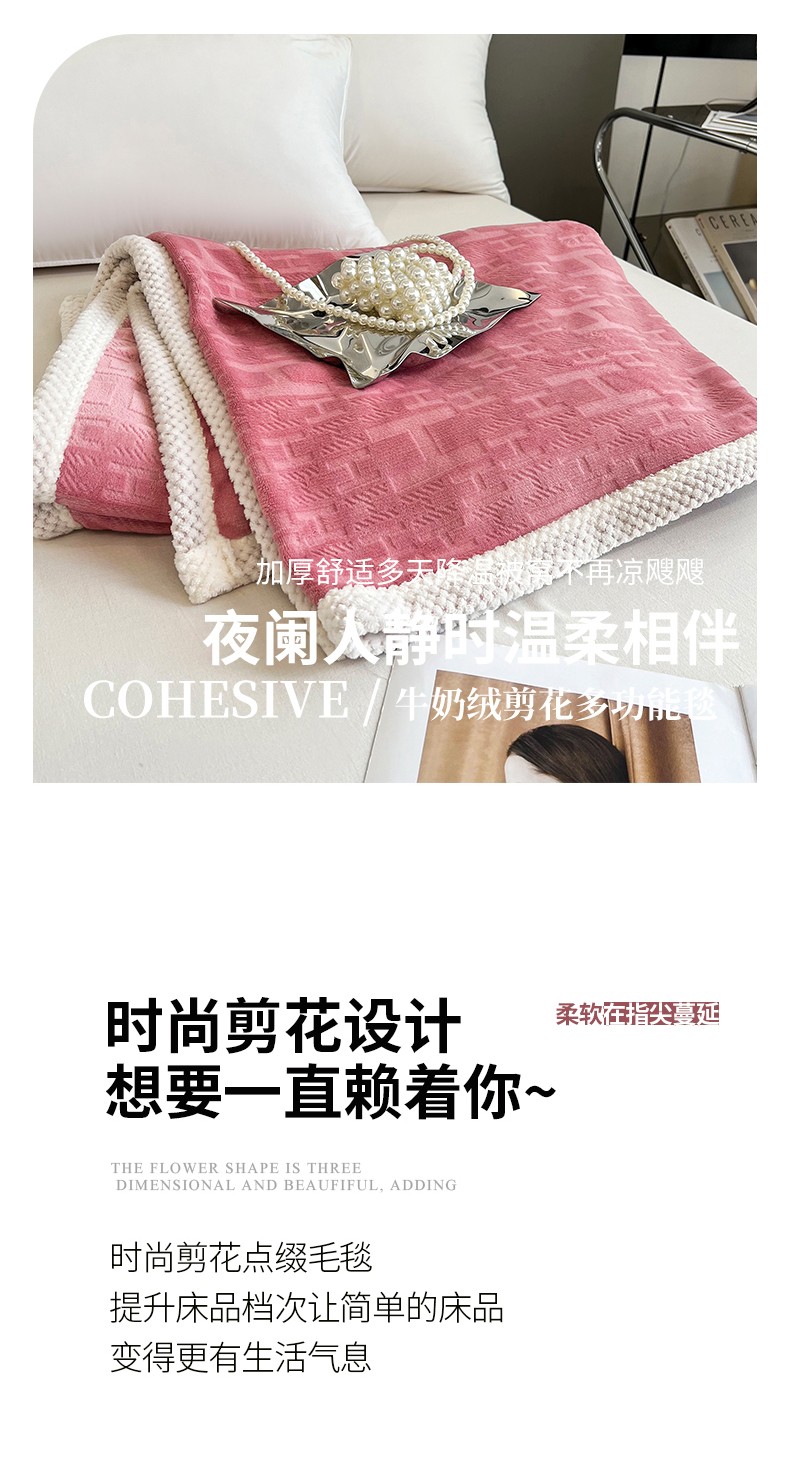 商品名称:小米笠 2023新款立体剪花牛奶绒毯 赫本粉