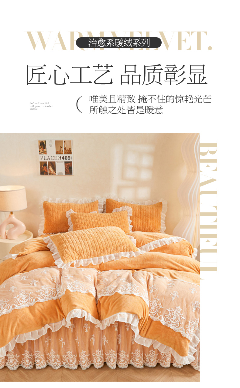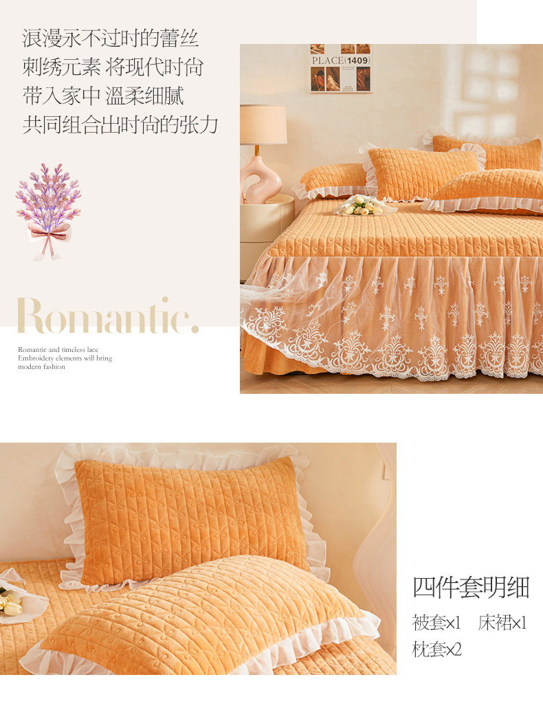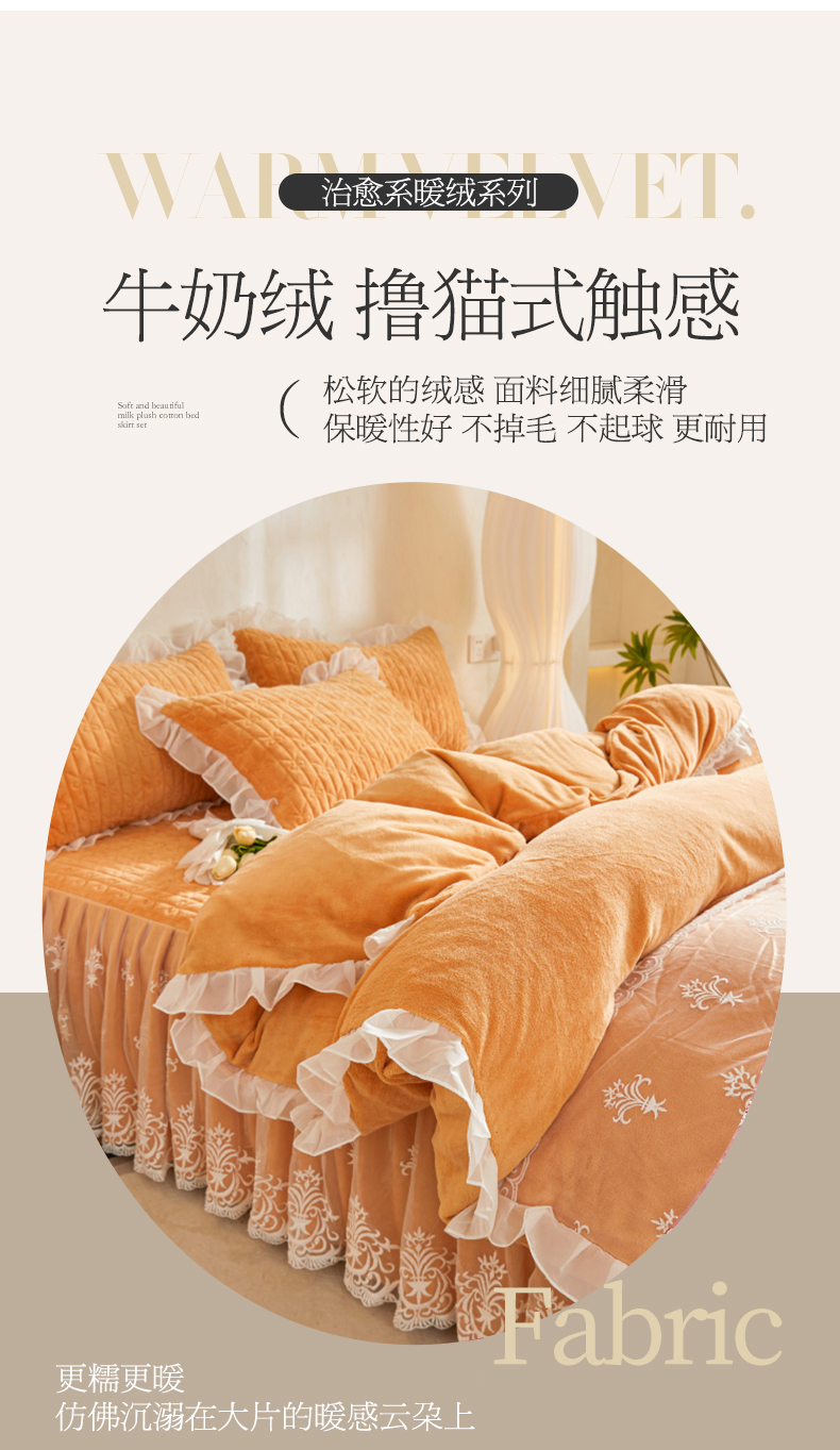 当前位置: 91家纺网 > 商品网购 > 床品套件 > 四件套 > 牛奶绒四件套 > 虹星家纺 2023新款牛奶绒夹棉床裙套件清新系列-床裙款四件套 清新-吴咖