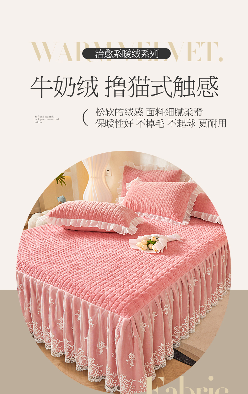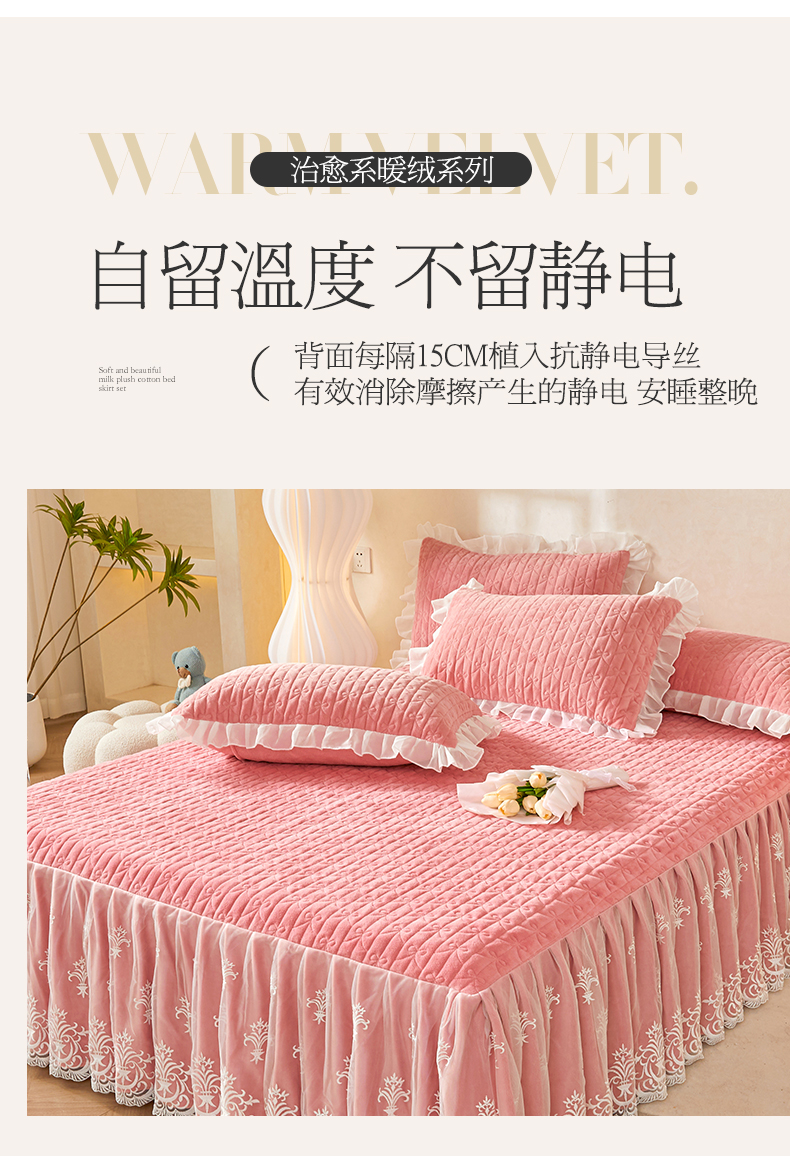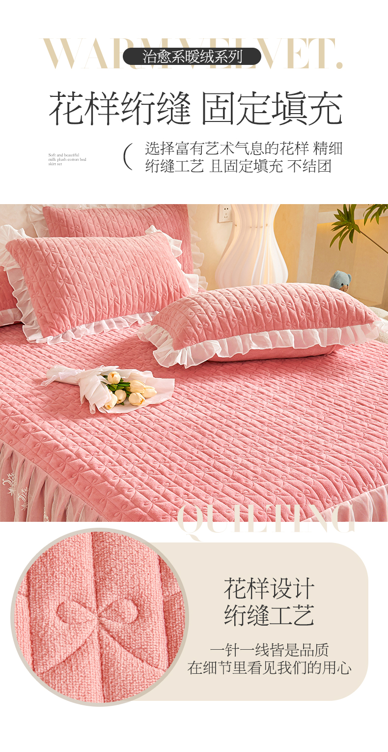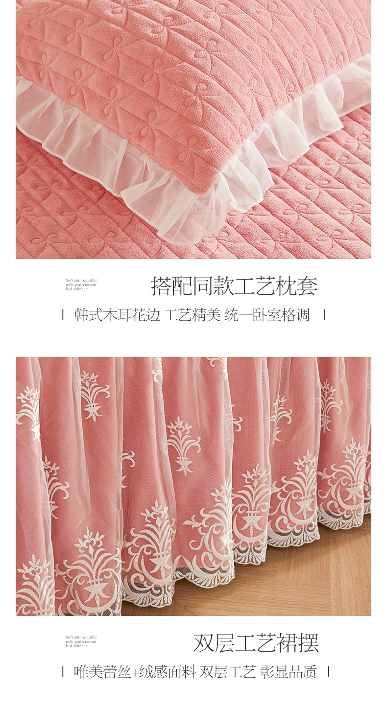 虹星家纺 2023新款牛奶绒夹棉床裙套件清新系列-床裙款单床裙 清新-梅粉