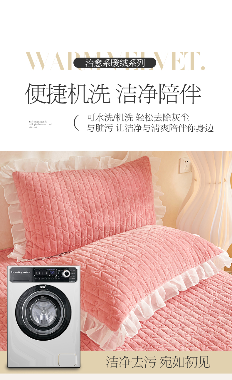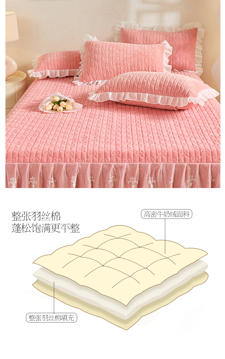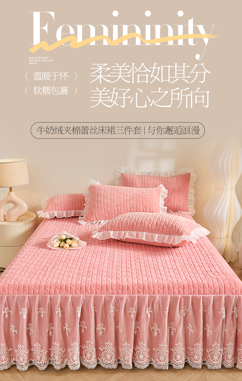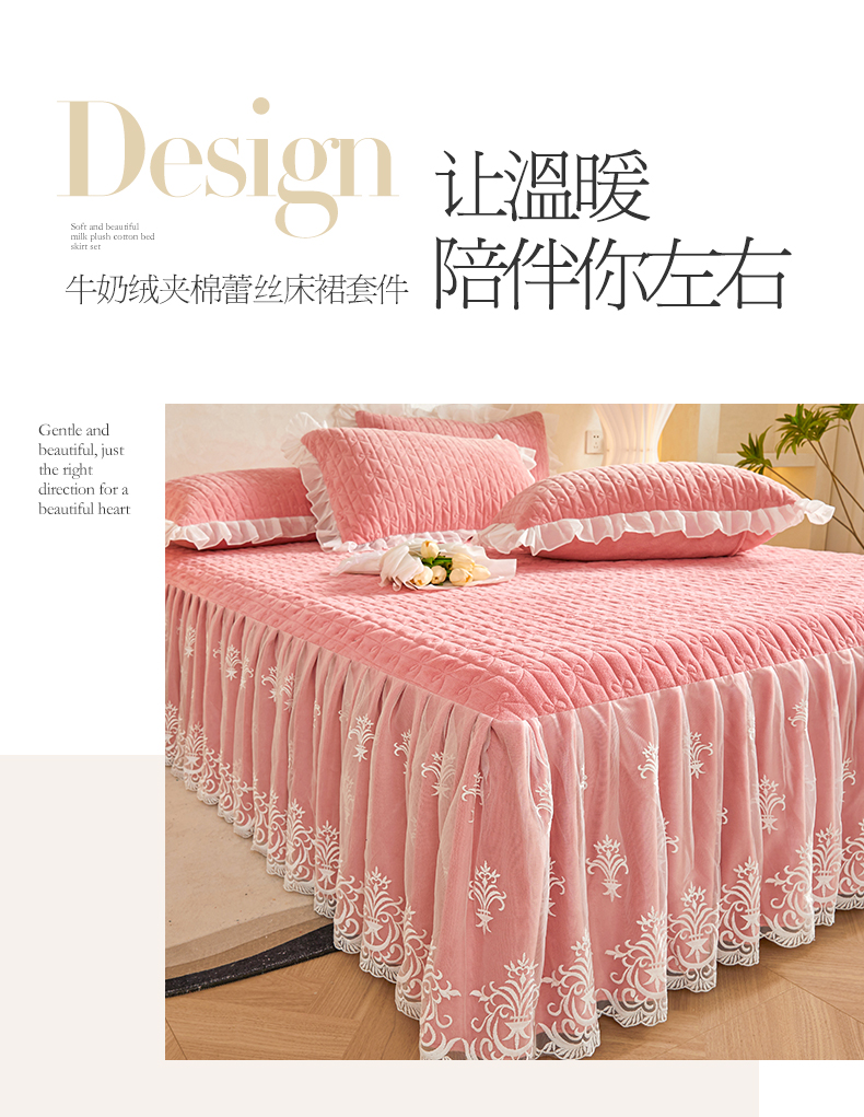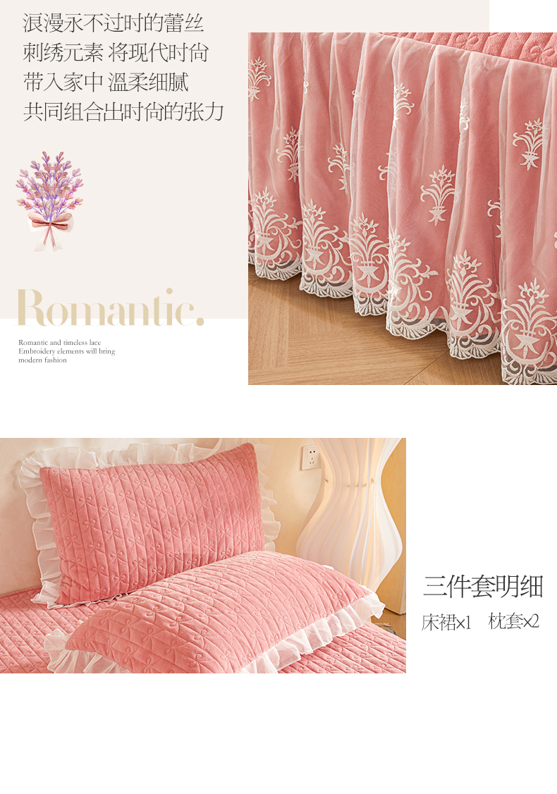 虹星家纺 2023新款牛奶绒夹棉床裙套件清新系列-床裙款单床裙 清新-梅粉