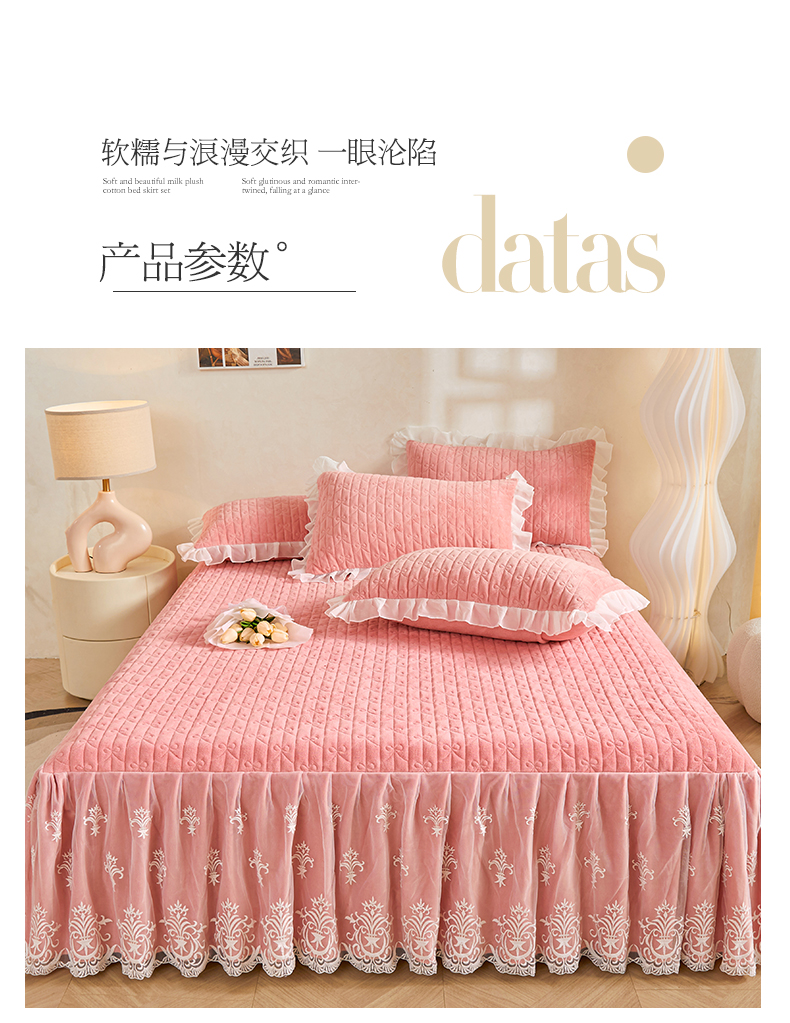 商品名称:虹星家纺 2023新款牛奶绒夹棉床裙套件清新系列-床裙款单床裙 清新-梅粉