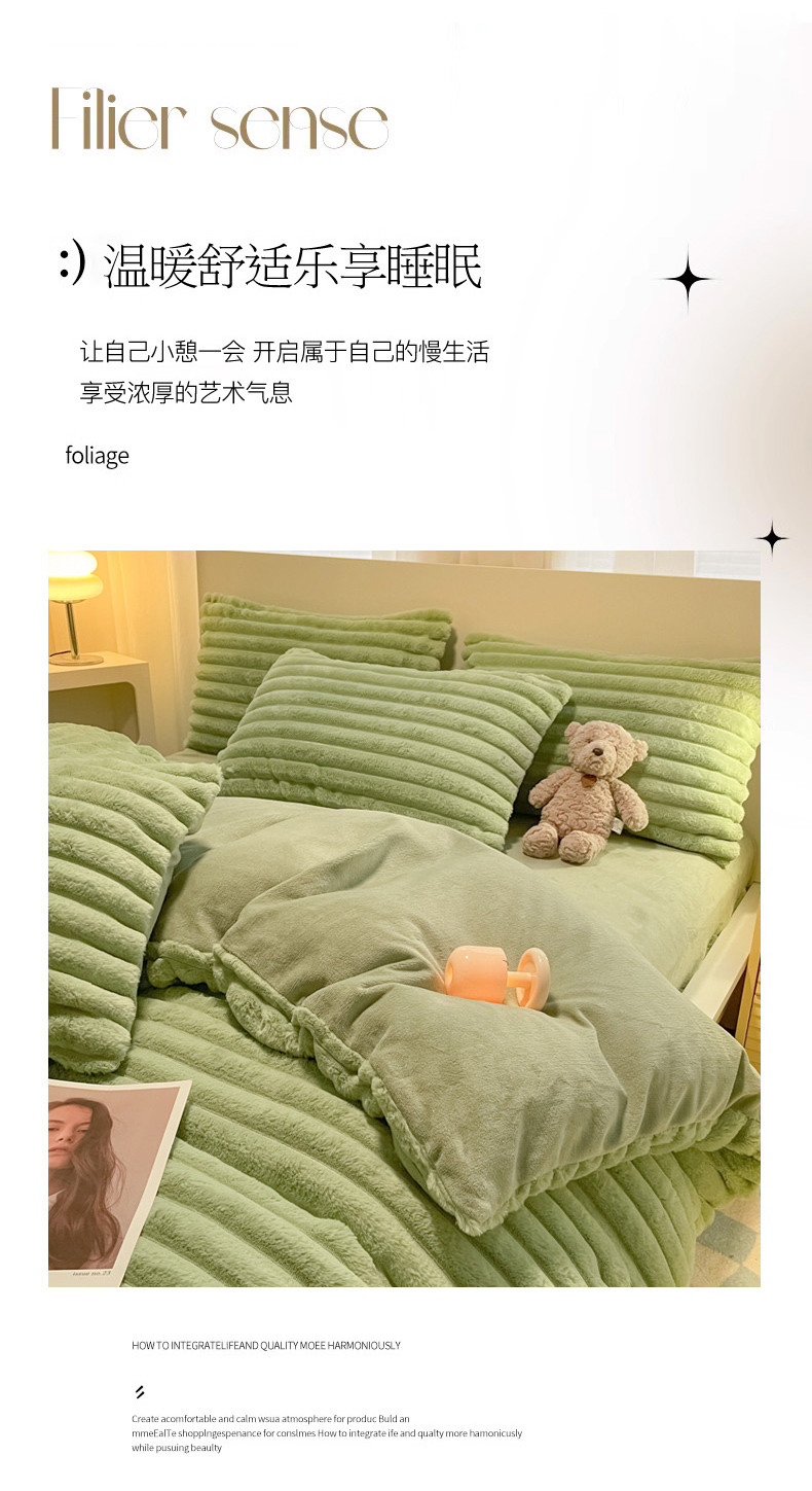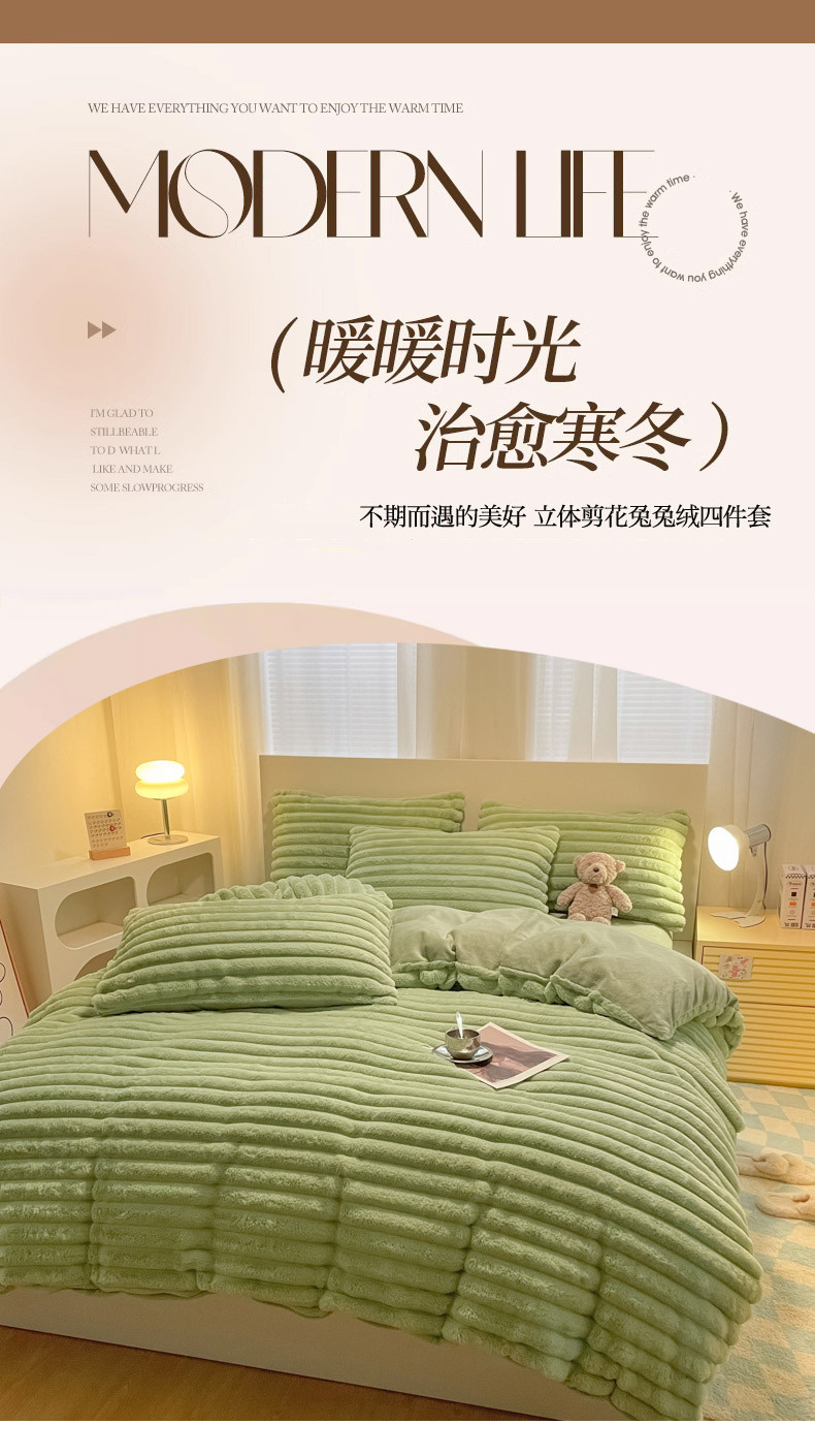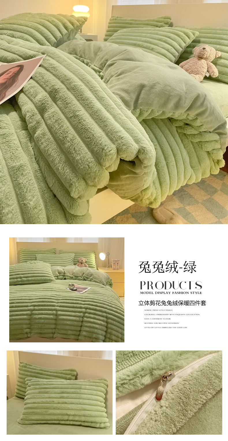 当前位置: 91家纺网 > 商品网购 > 床品套件 > 四件套 > 兔毛绒四件套 > 柒月家居 2023新款兔兔绒四件套 兔兔绒-绿