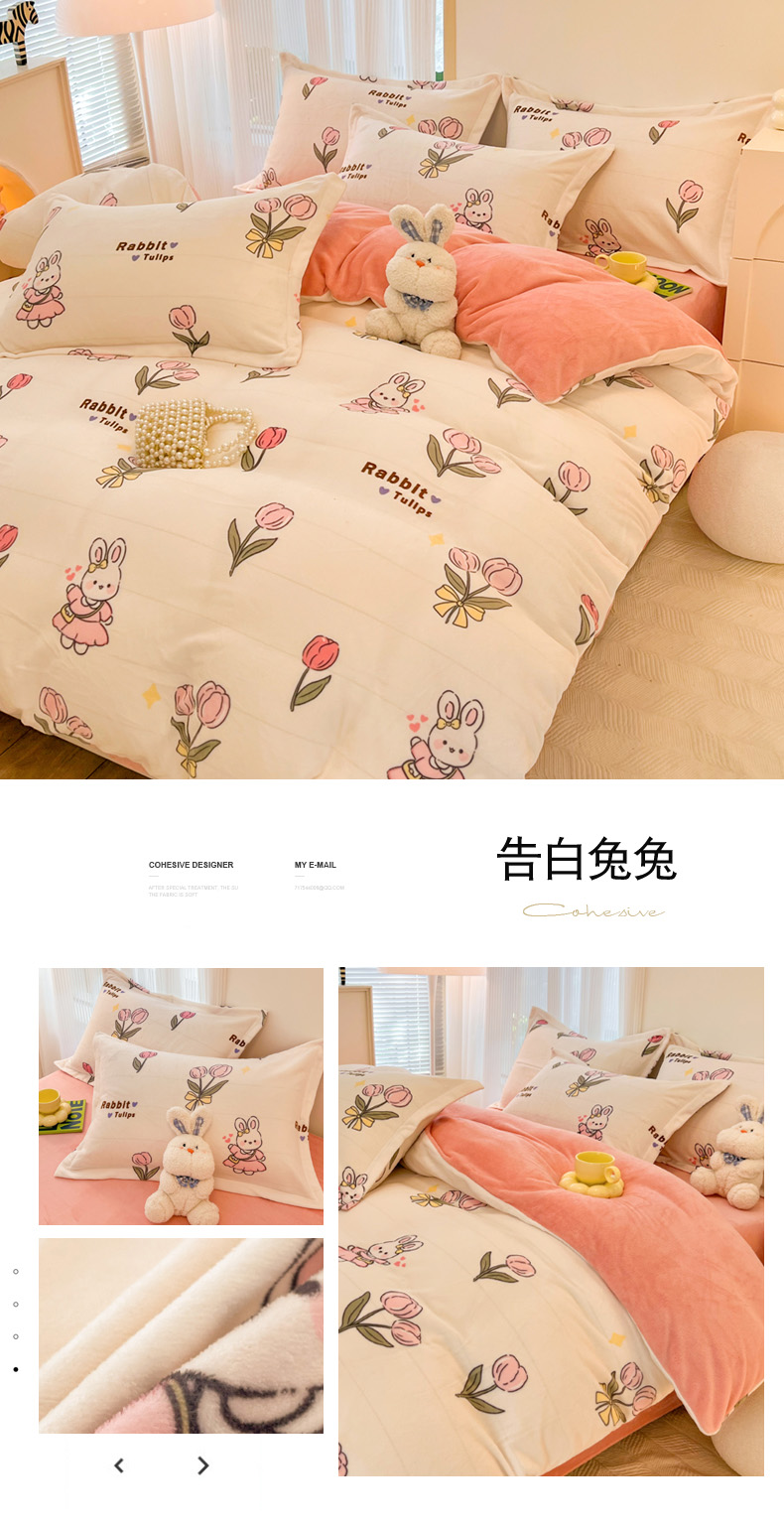 商品名称:寐居家纺 2023新款小清新牛奶绒印花被套 告白兔兔