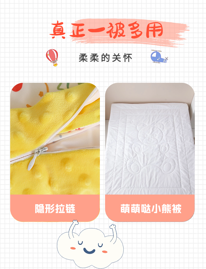 • 91家纺网 家纺一手货源 找家纺 (总)十九色 2025新款亲肤舒适活套可拆全棉豆豆绒儿童睡袋防踢被,组合图仅供参考不可下单,度假狗,飞马,好运满满,美味,挖掘机,玩具车,望远镜,幸运兔,内芯,明细图