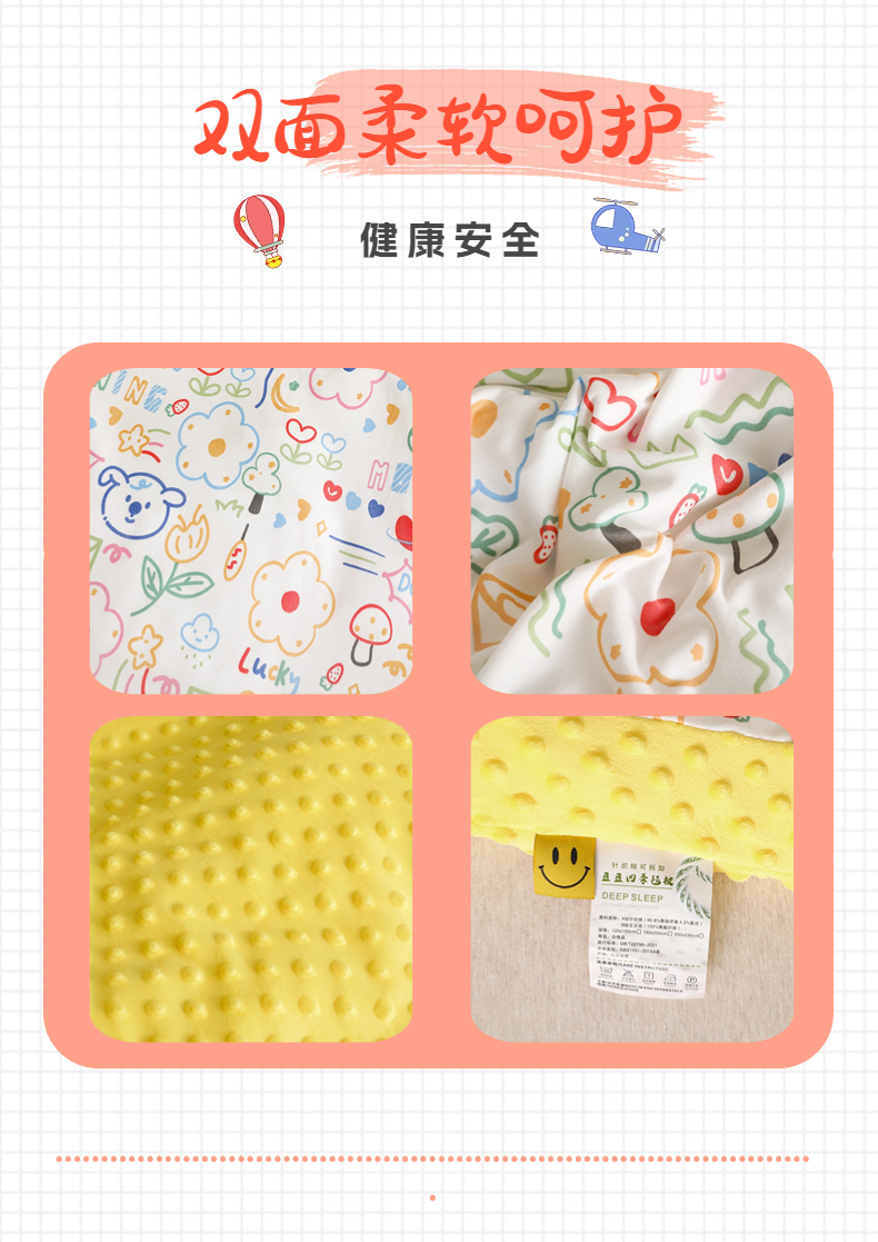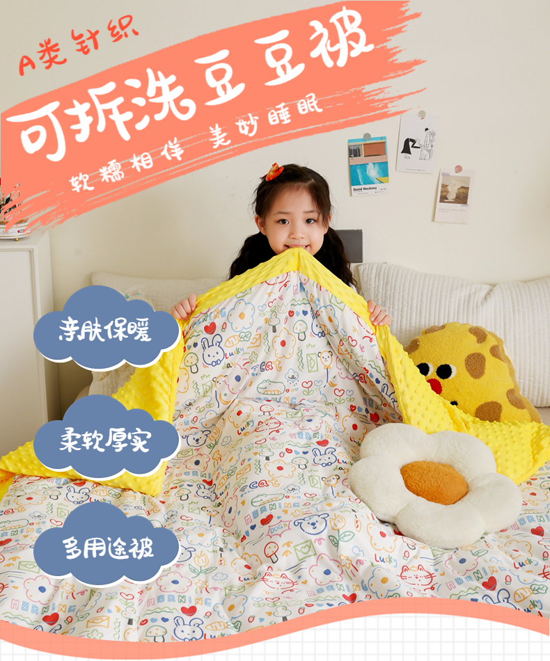 当前位置: 91家纺网 > 商品网购 > 被子 > 冬被 > 十九色 2024新款针织棉婴幼儿安抚可拆卸豆豆被 涂鸦