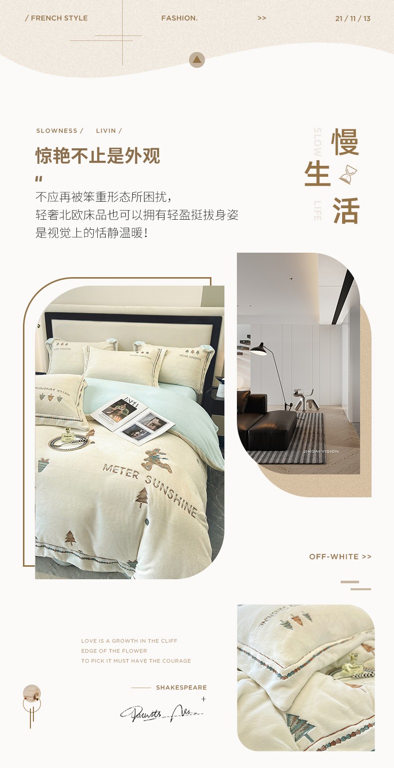 当前位置: 91家纺网 > 商品网购 > 床品套件 > 四件套 > 牛奶绒四件套 > 家居1号 230克牛奶绒全消光冬季爆款唯美意境 唯美意境-奶昔白+湖蓝