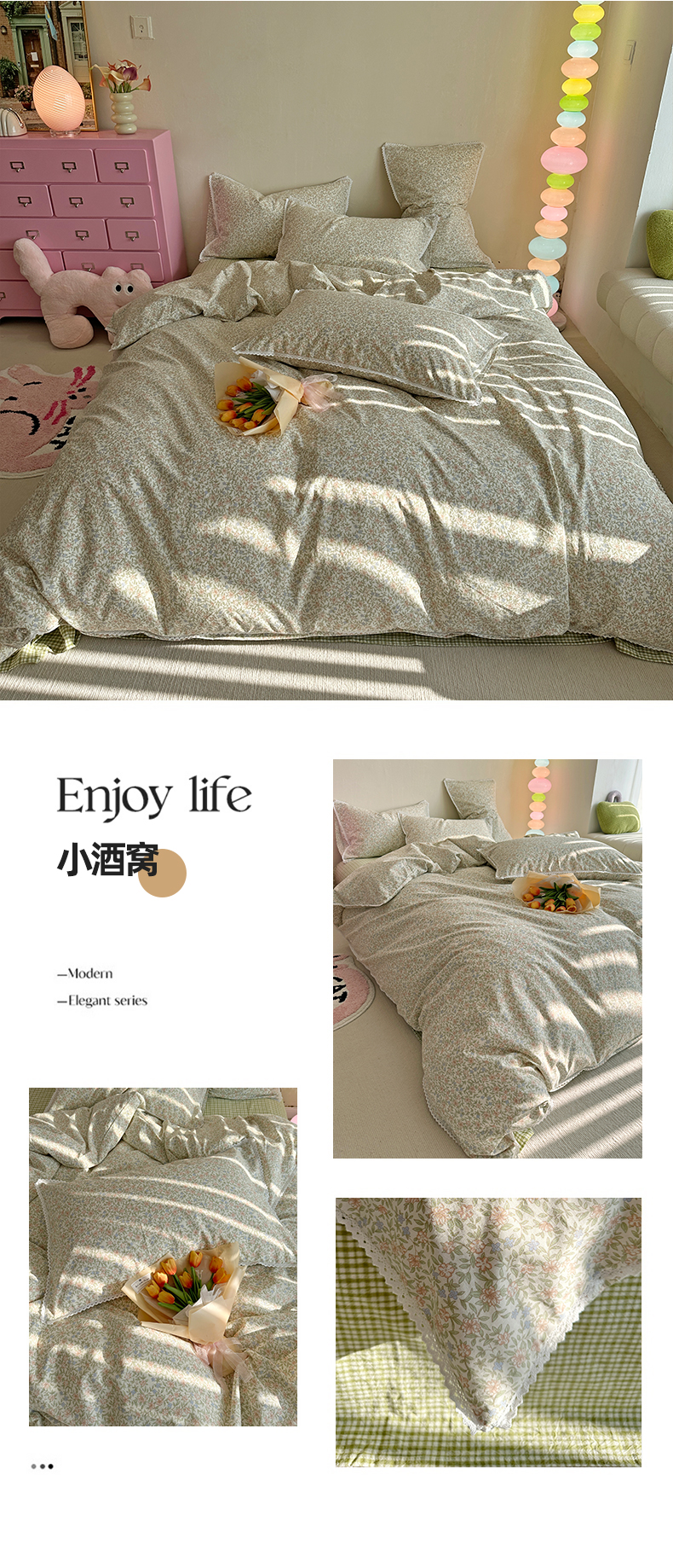 (总)千朵 2025新款全棉磨毛四件套,浪漫人生粉,浪漫人生米,香漫豆沙,茵然豆沙,茵然咖,珍妮咖,珍妮绿