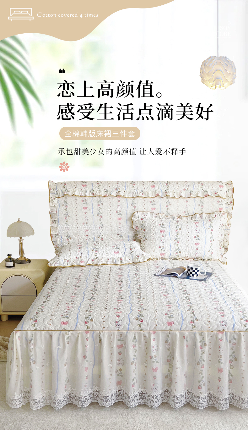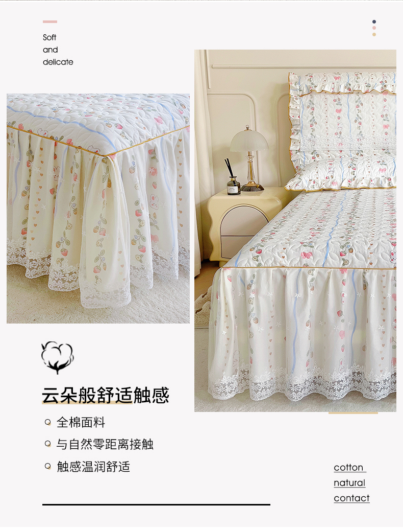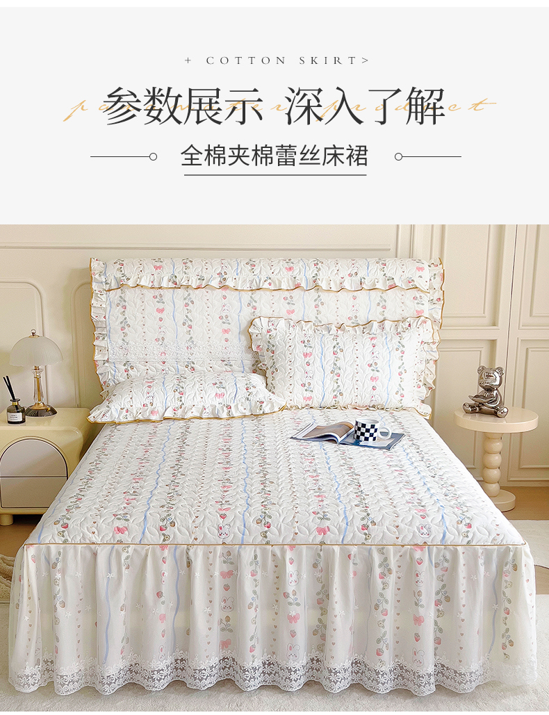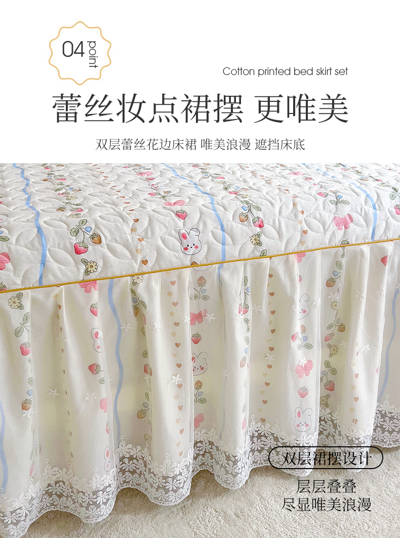 十个点 2024新款印花夹棉蕾丝单床裙-玲珑 花野兔