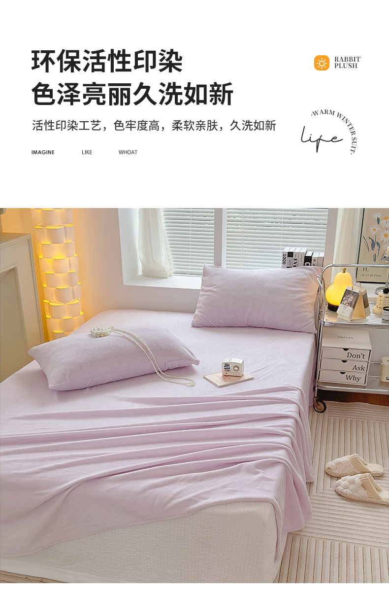 • 91家纺网 家纺一手货源 找家纺 (总)曼町家居 2025新款高克重牛奶绒床单单床单床单单件,组合图仅供展示,雏菊黄,梦幻紫,蜜桃粉,抹茶绿,奶茶咖,天空蓝,雾蓝,芝士黄
